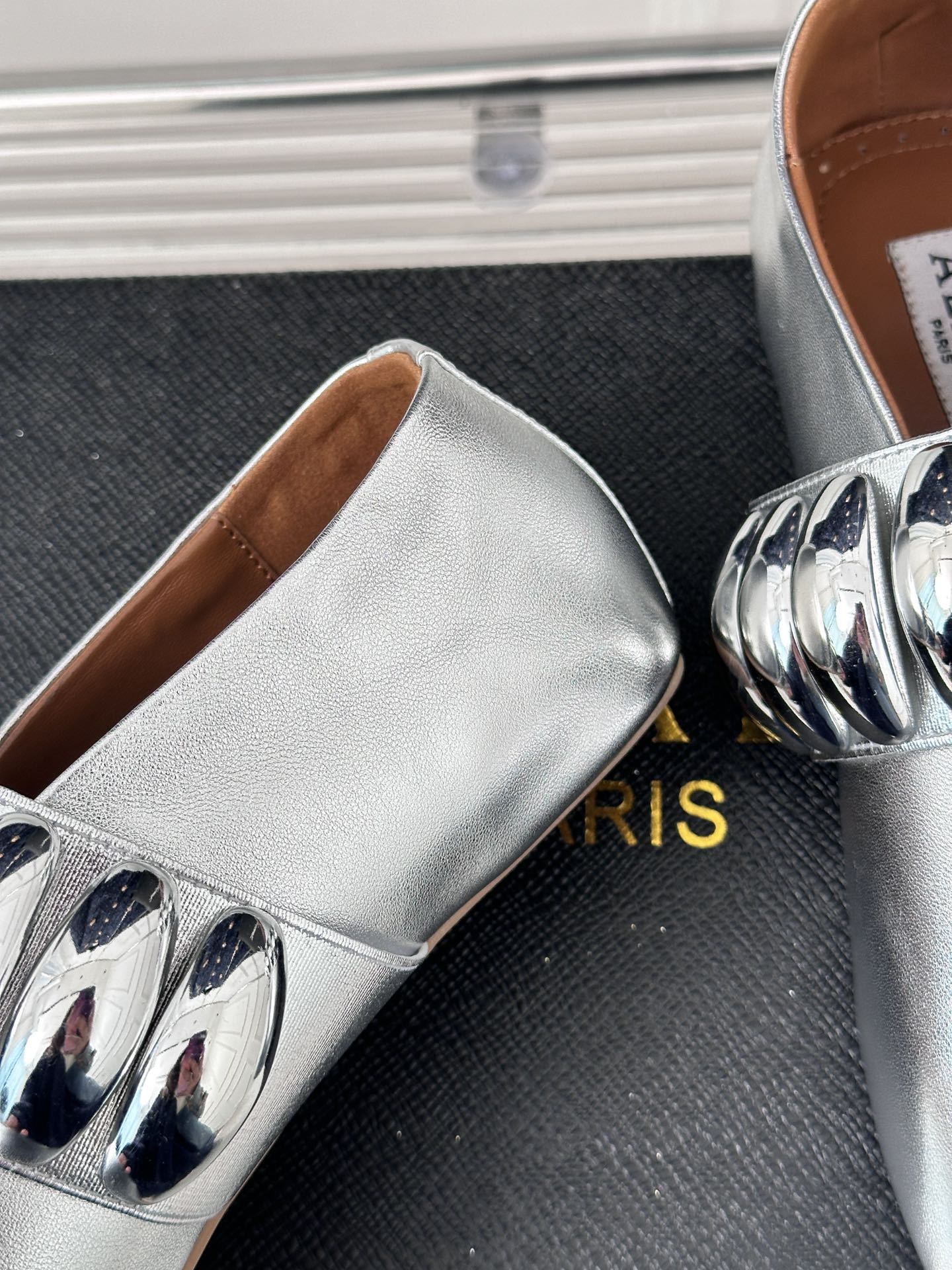 Alaia 25 Mary Jane Jewel Ballet Flats Silver Calfskin 293243