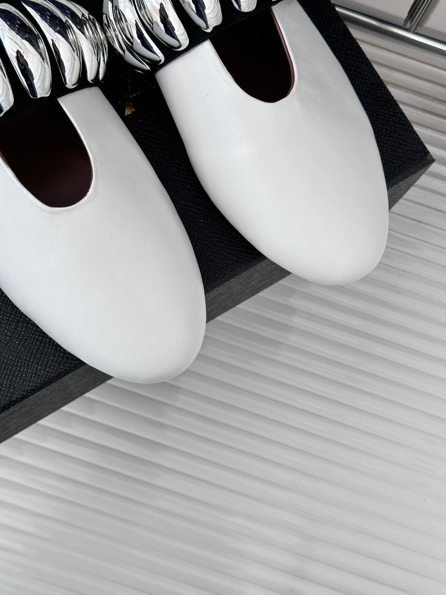 Alaia 25 Mary Jane Jewel Ballet Flats White Calfskin 293246