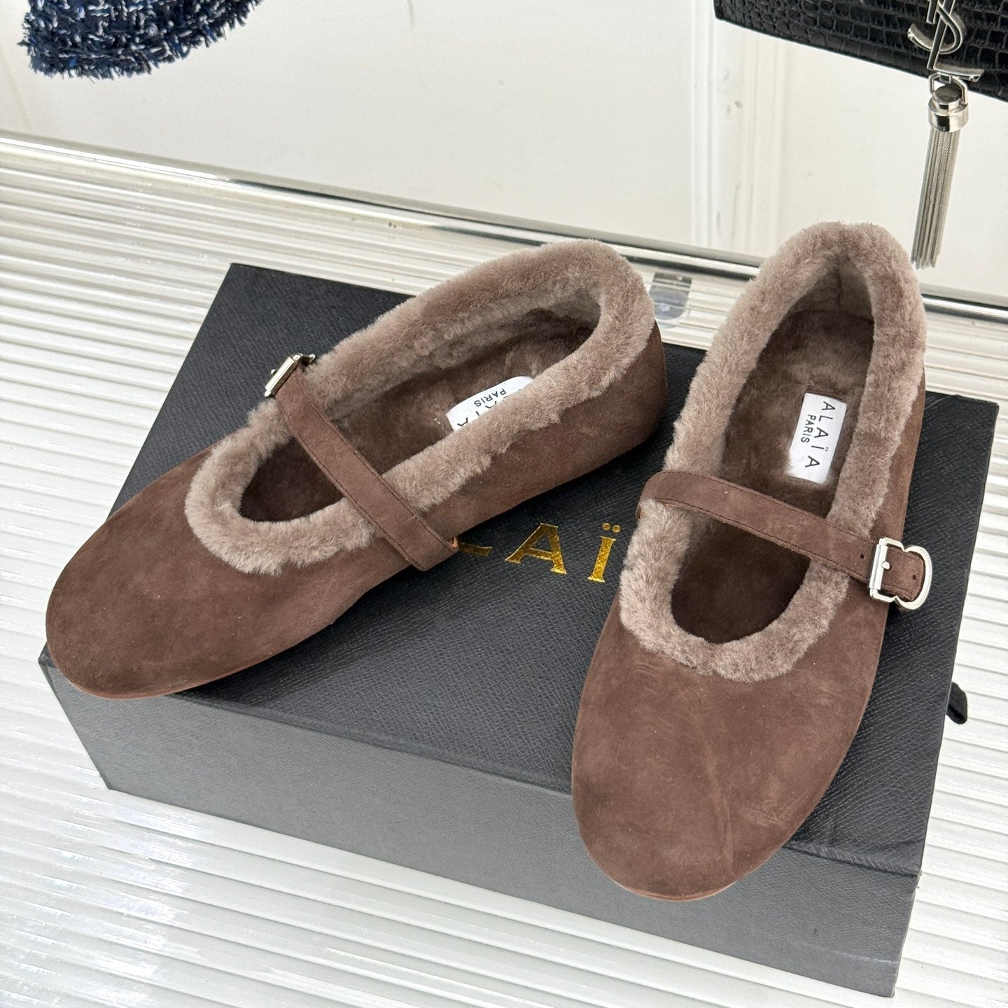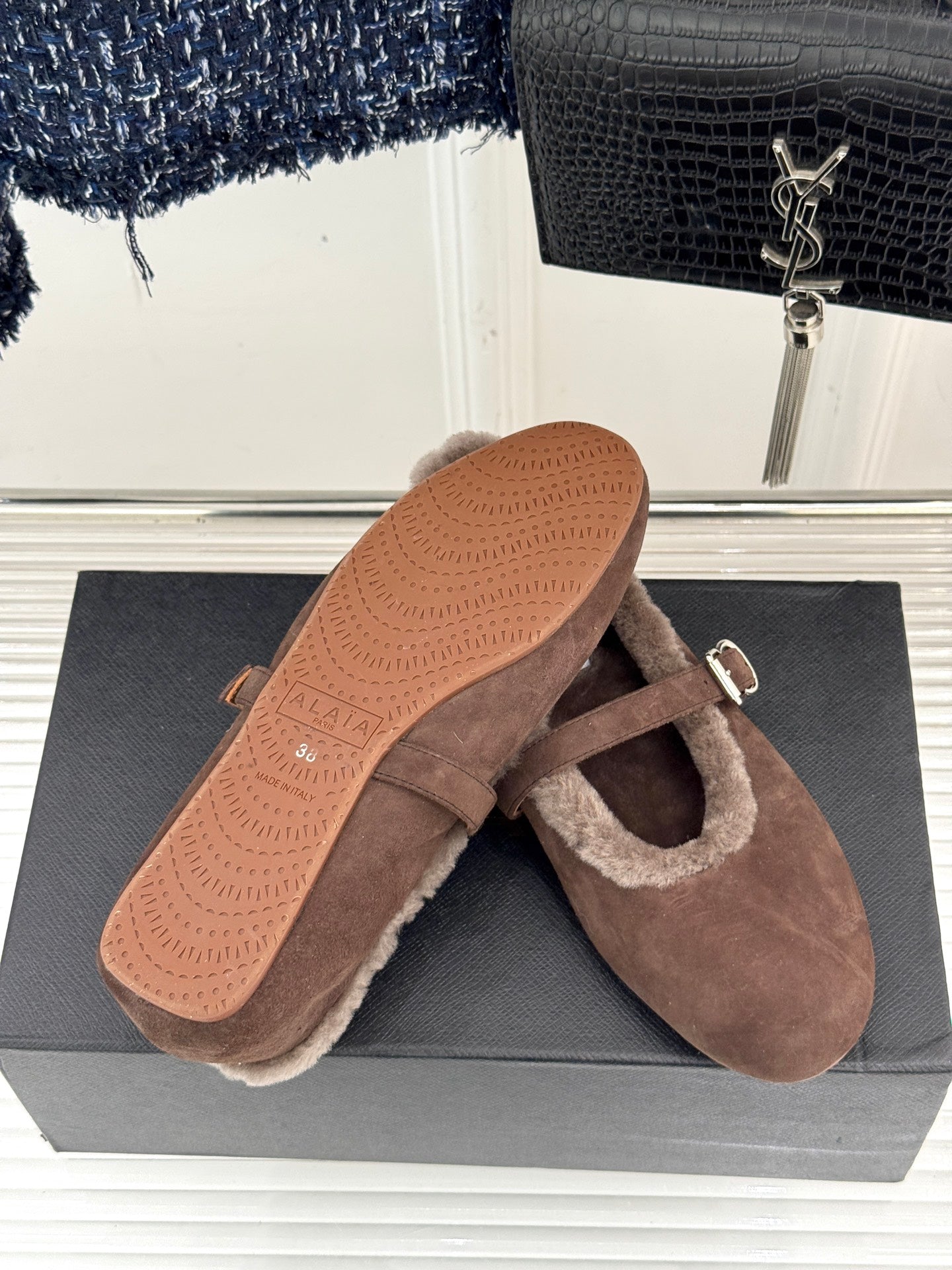 Alaia 25WF Mary Jane chocolate brown suede wool 472224