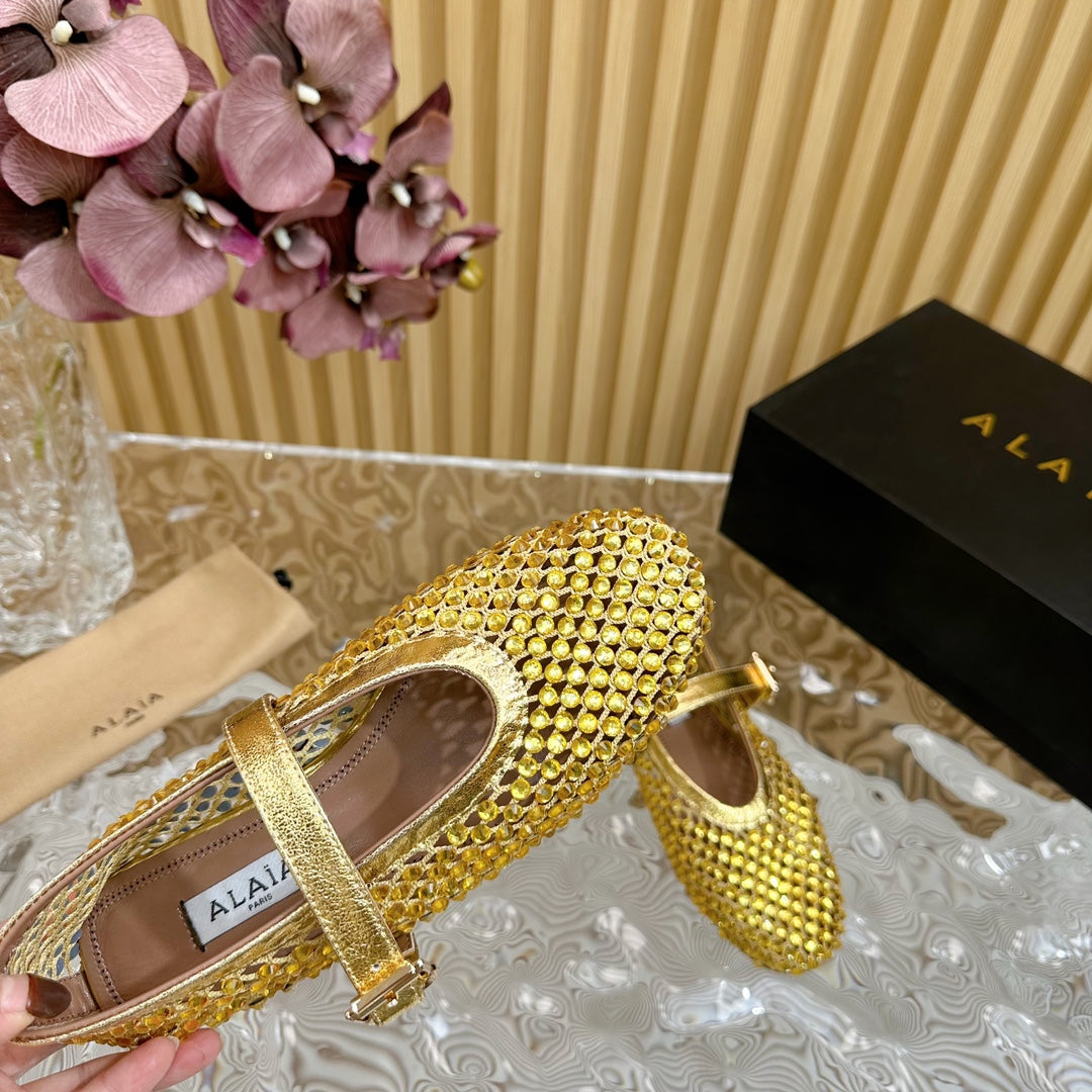 alaia ballet flat stud in fishnet gold metalic lambskin