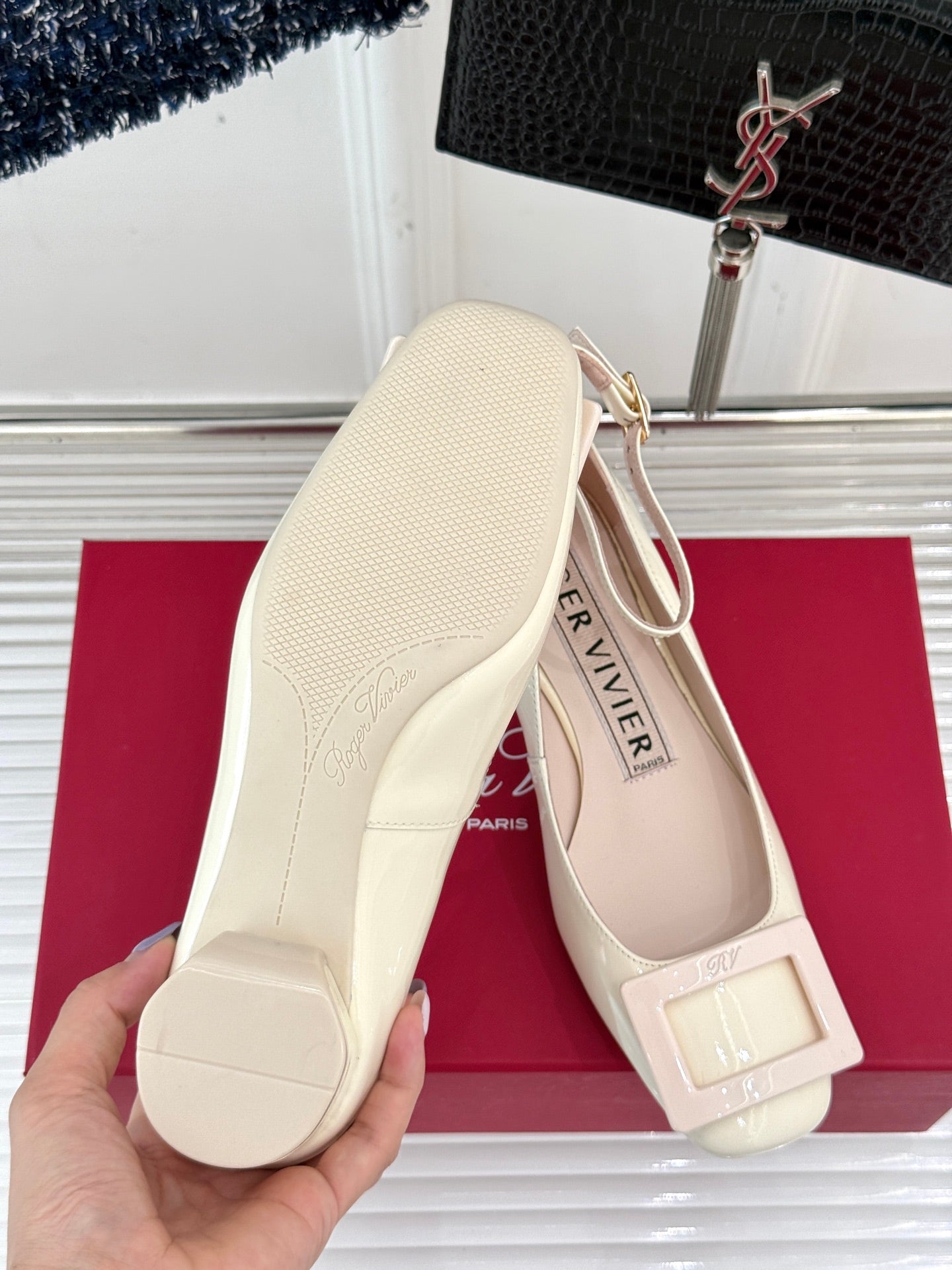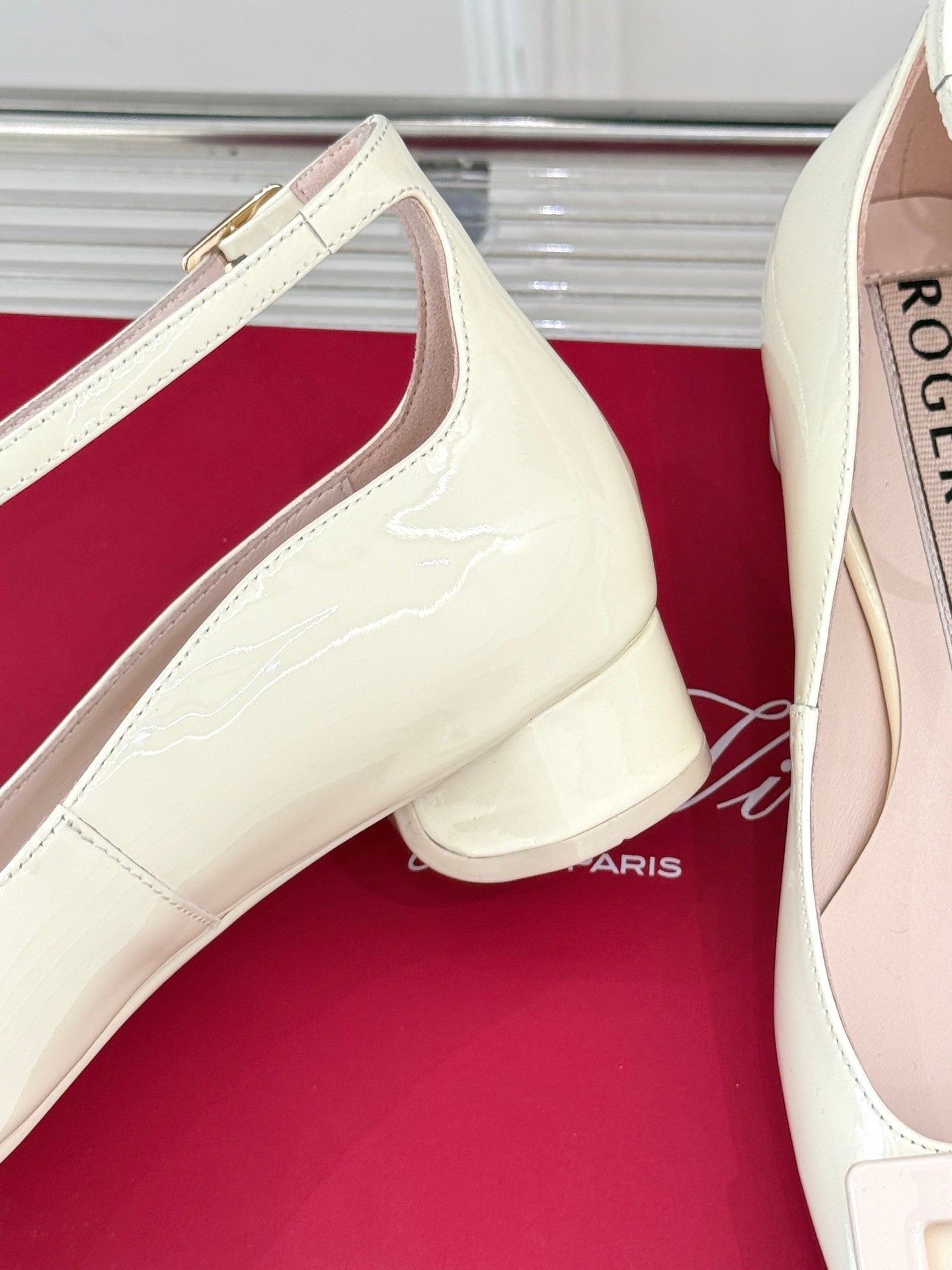 Viv Square Buckle Mary Jane Milky White Fetal Cowhide 286707