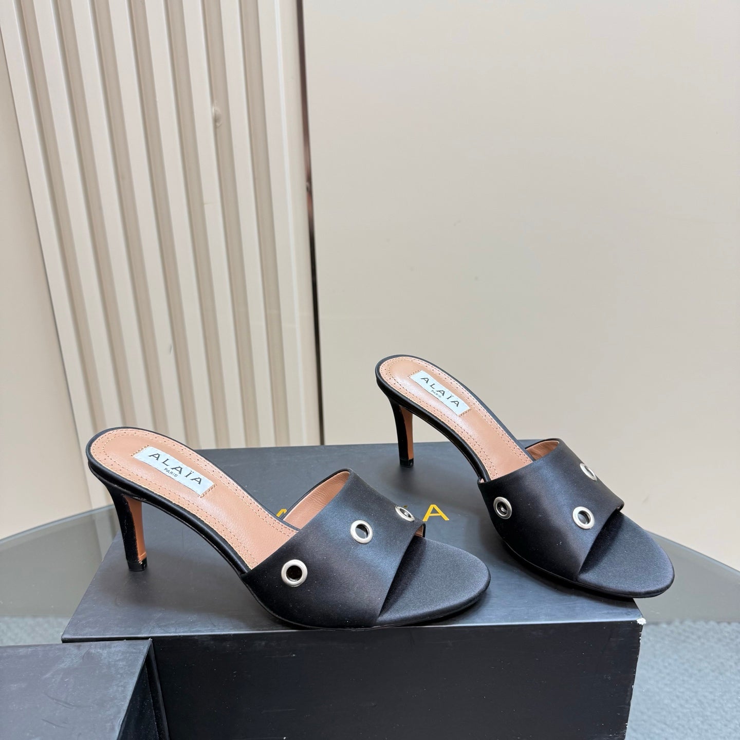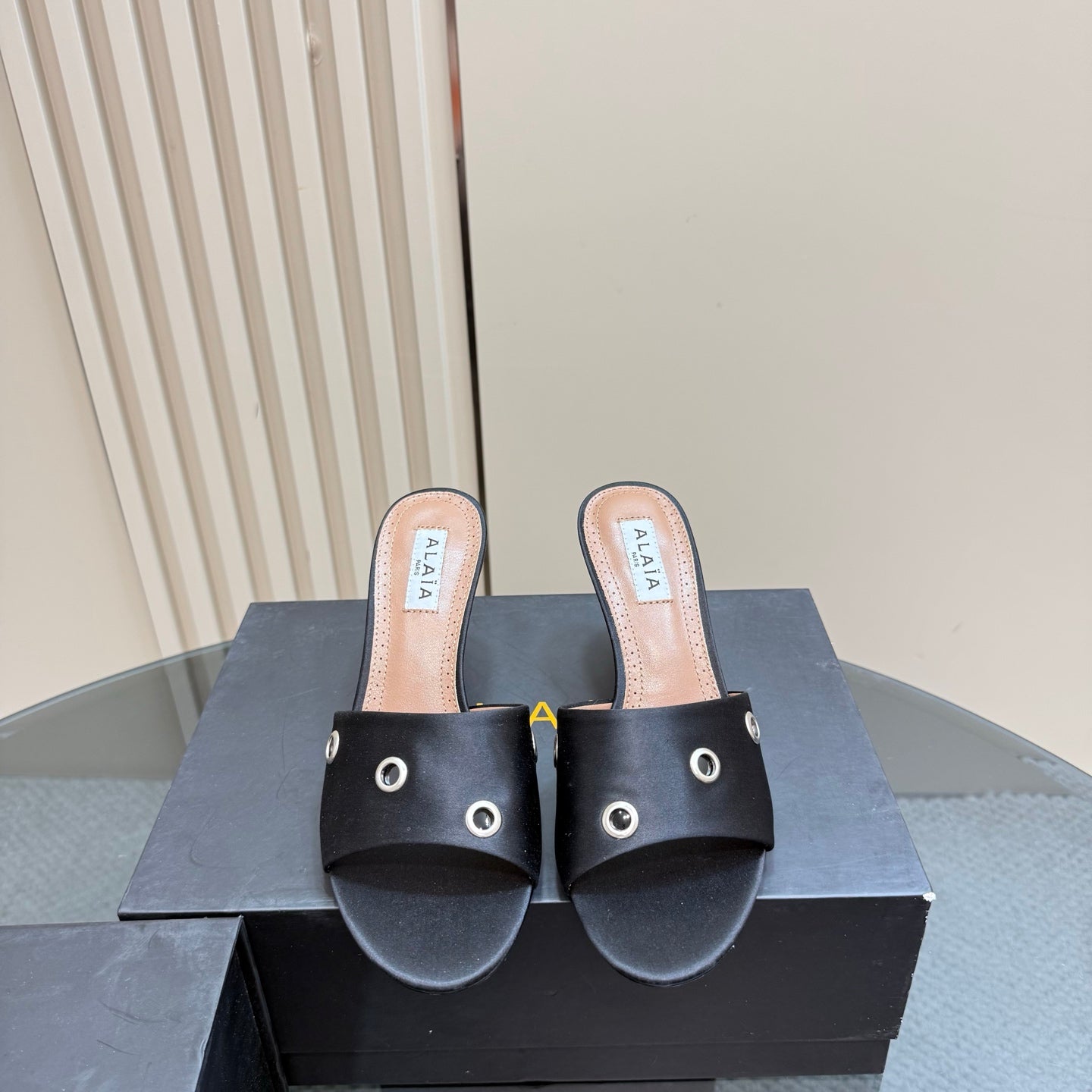 Alaia 2025 Oeillets Embellished Leather Sandals Black Lambskin 299669