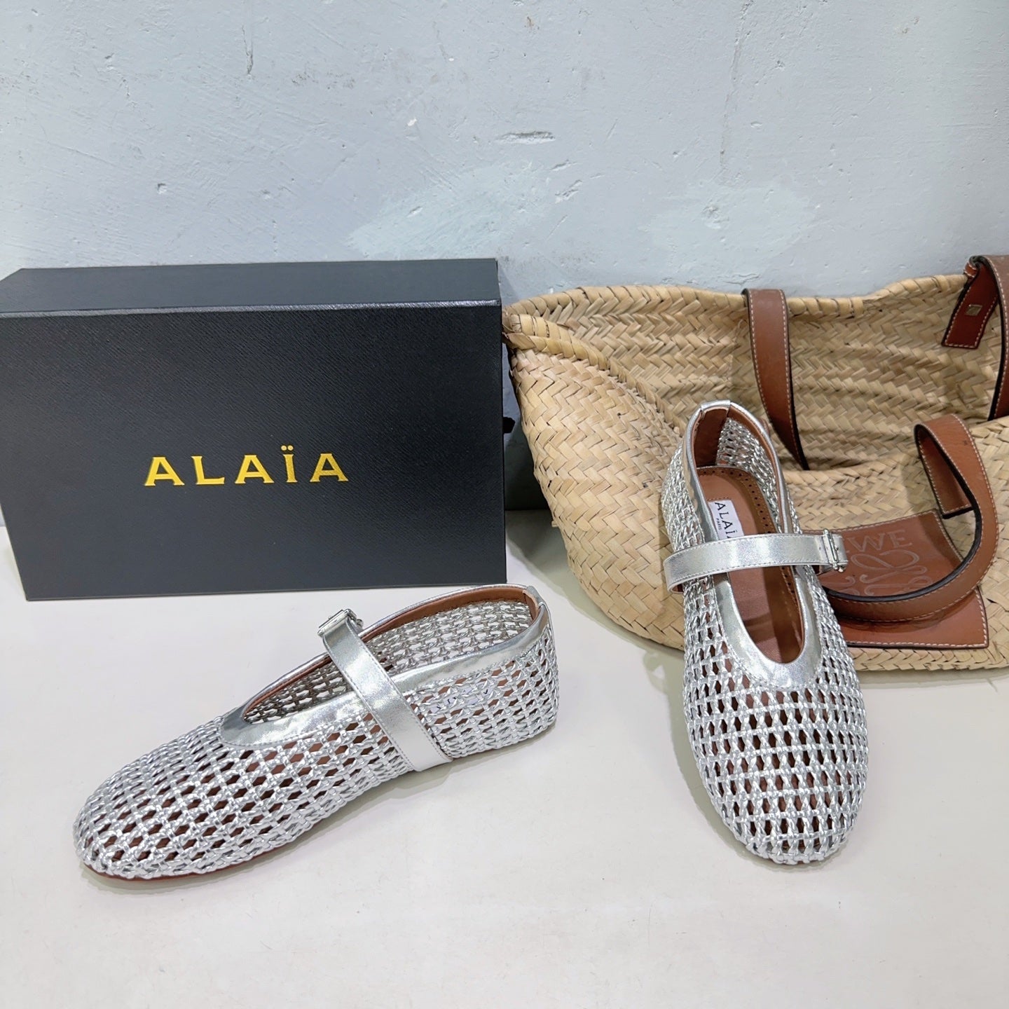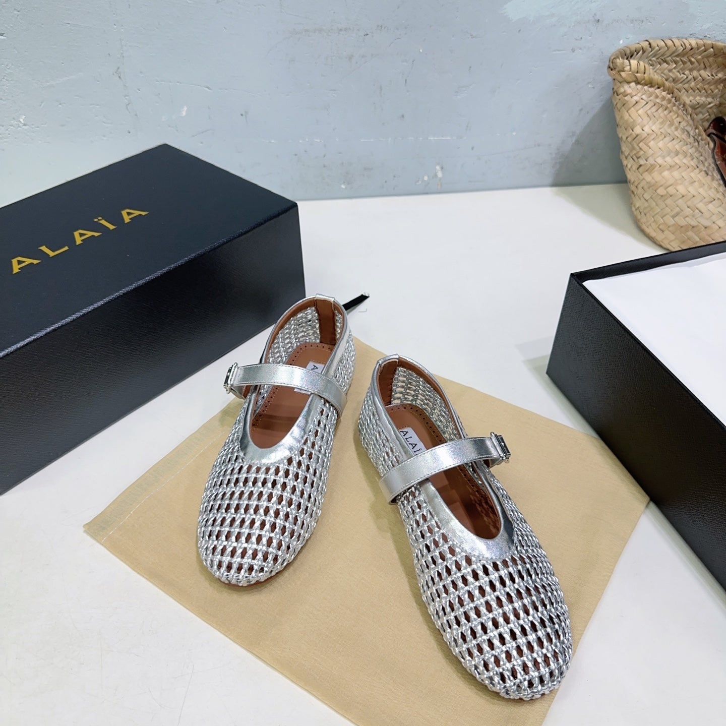 Alaia 25 Marry Janes Ballet Flats Silver Wool Sheepskin 300457