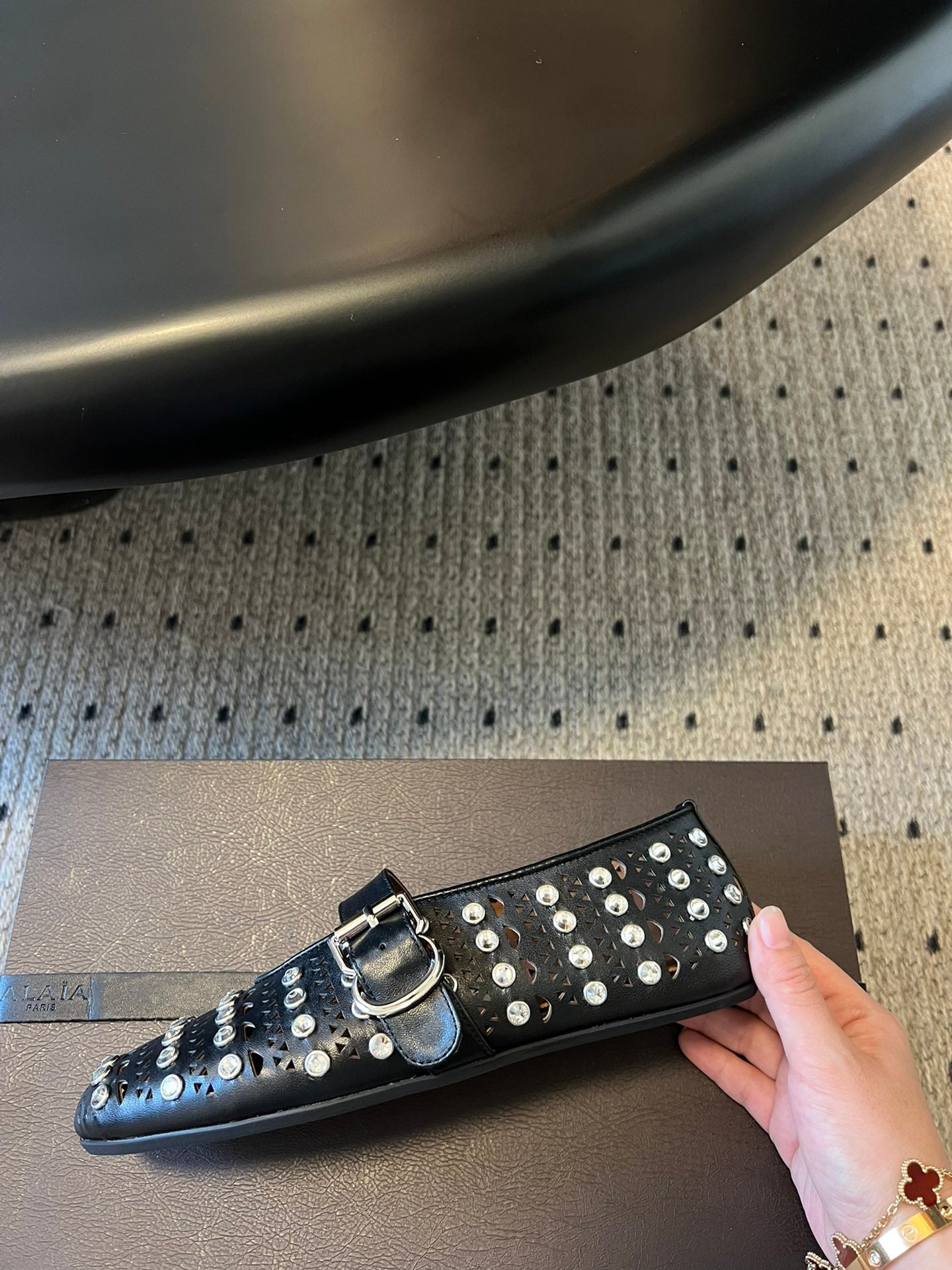 Alaia 25 Vienne With Strass Ballet Flats Black Lambskin 303722
