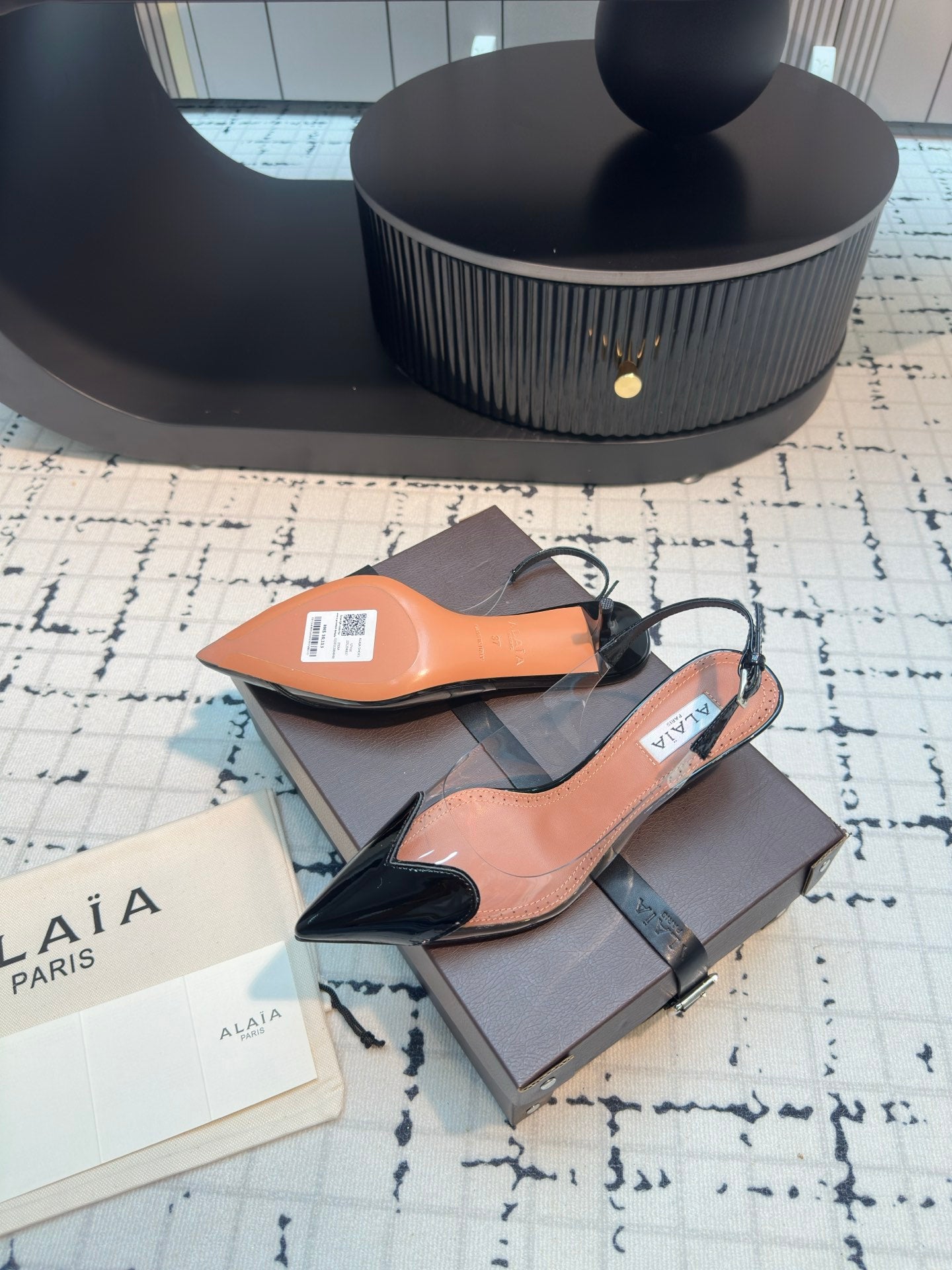 Alaia Heart 50mm Heels Slingbacks Black Sheepskin 810209