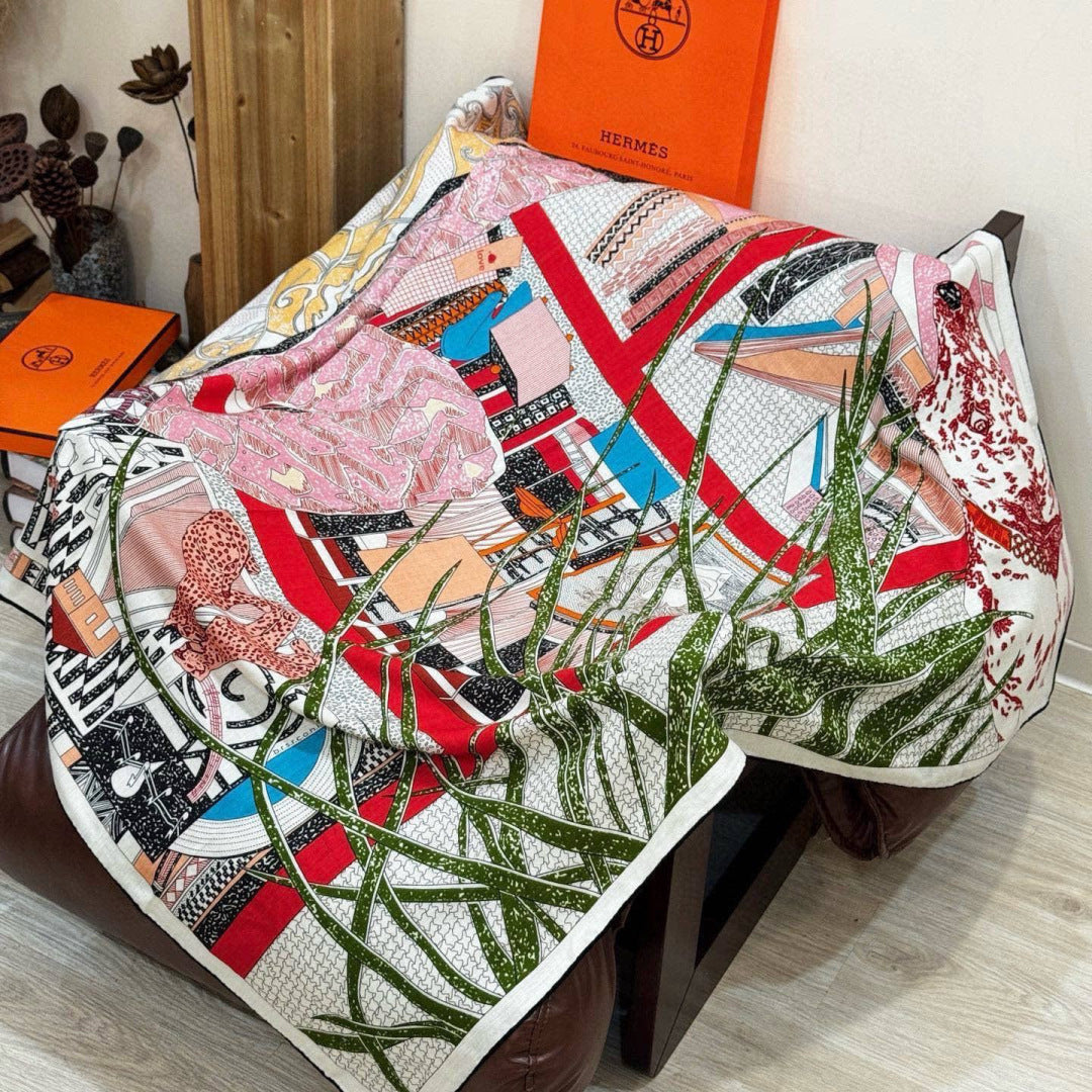 HM 25s Essential Scarf 140cm Pink Colorful Cashmere Silk 967424