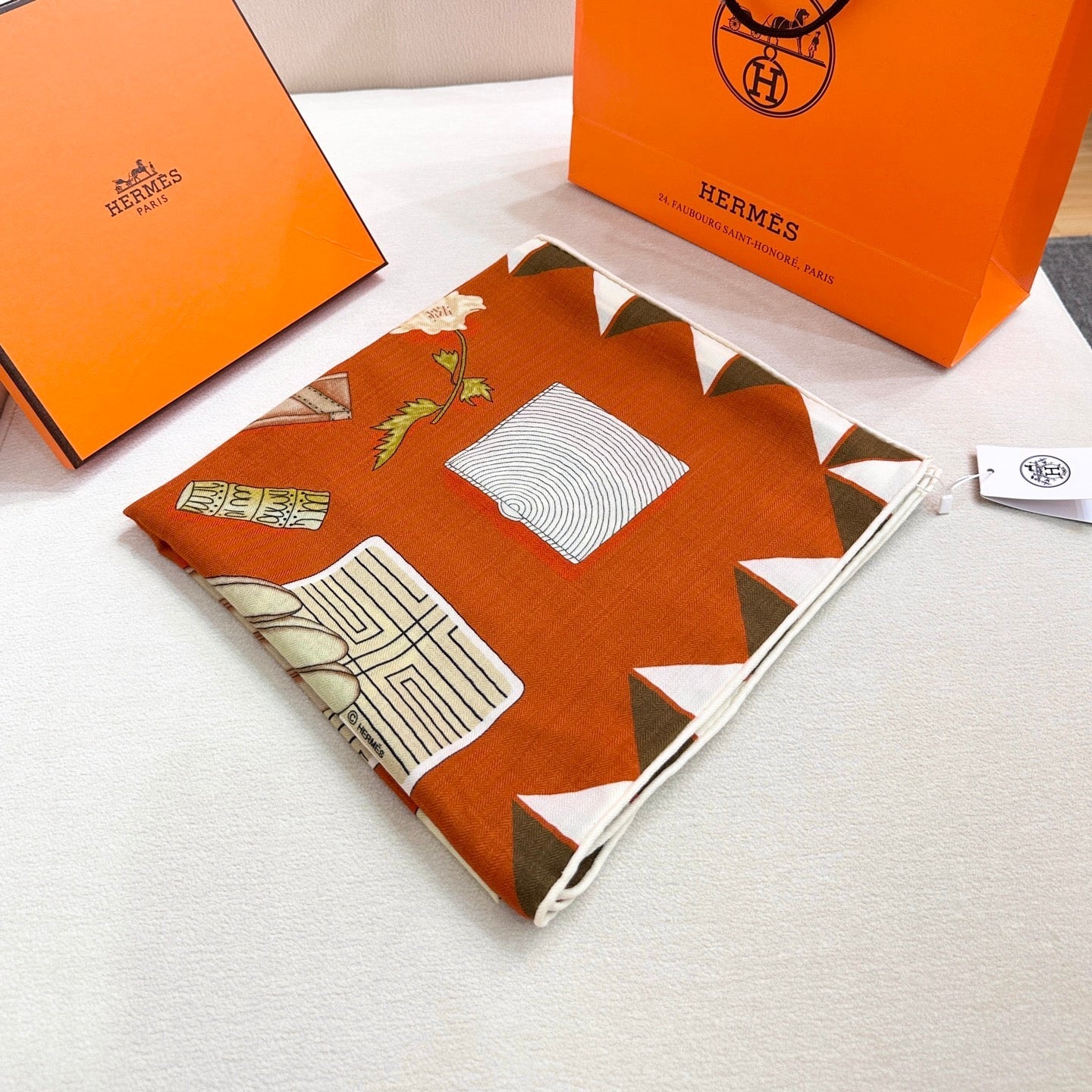 HM 25s Glove Time Scarf 135cm Orange Wool Mulberry Silk 971107