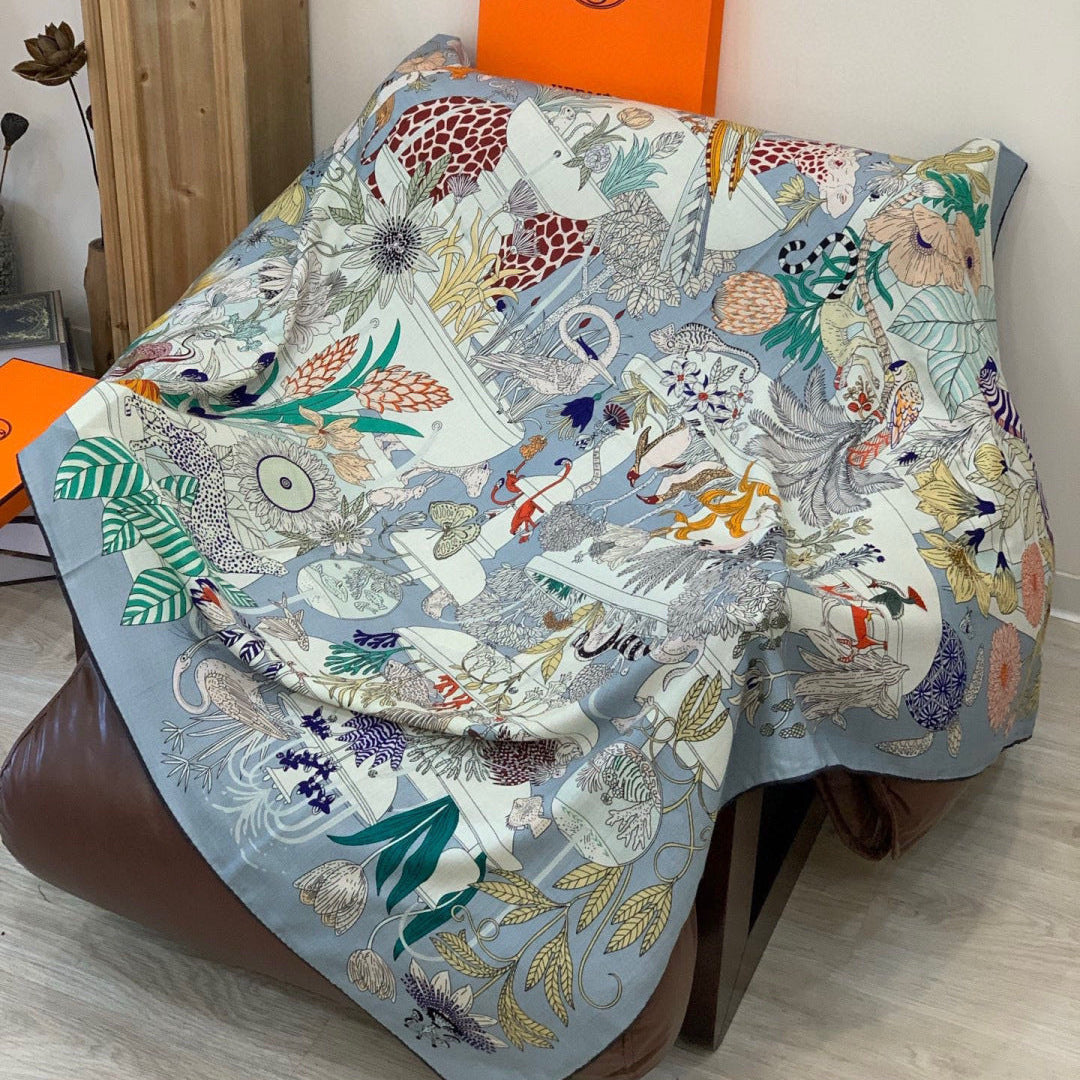 HM 25s Rainbow Scarf 140cm Blue Colorful Cashmere Silk 970928