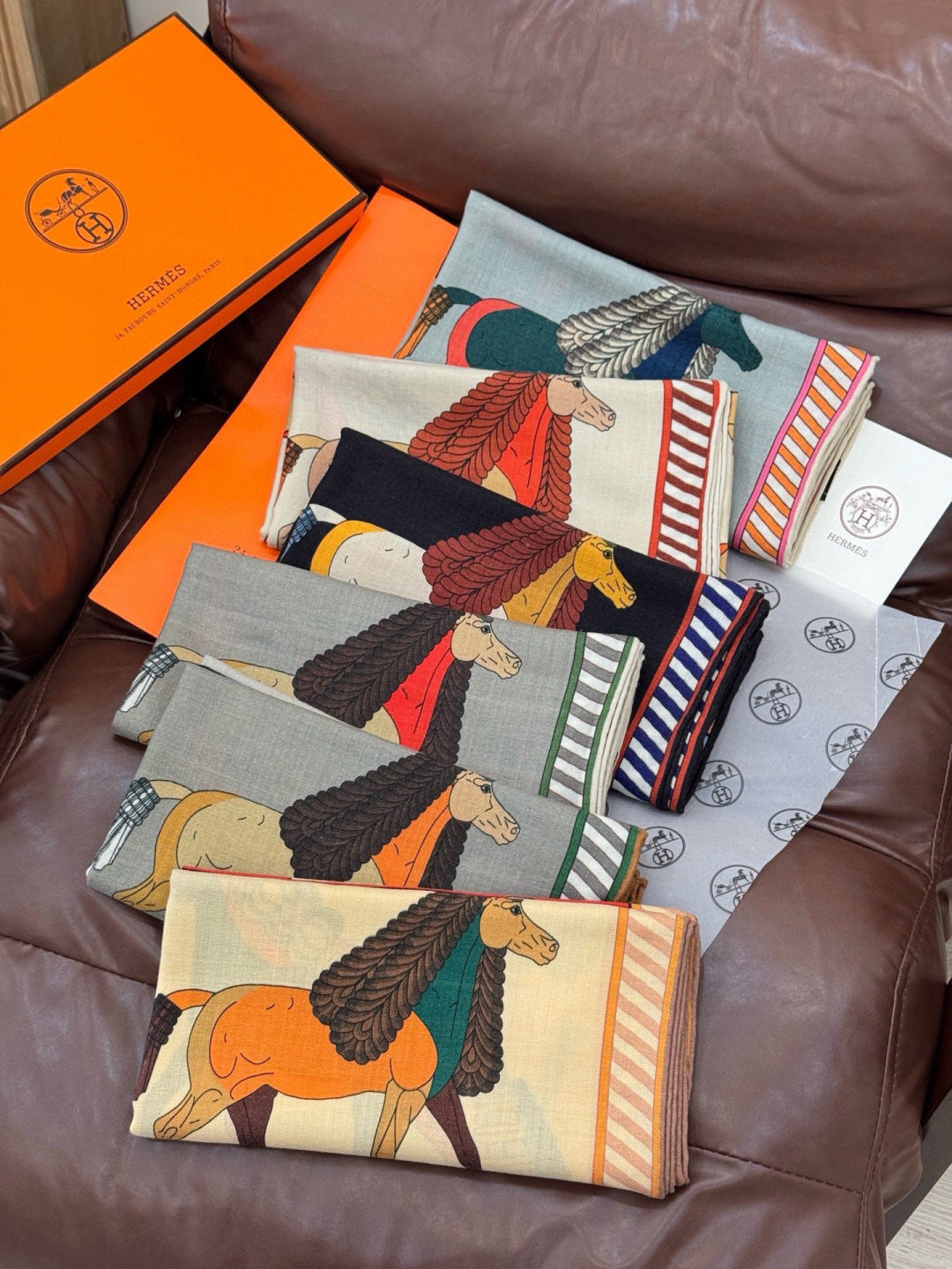 HM 25s Scarf 140cm Gray Colorful Cashmere 973081