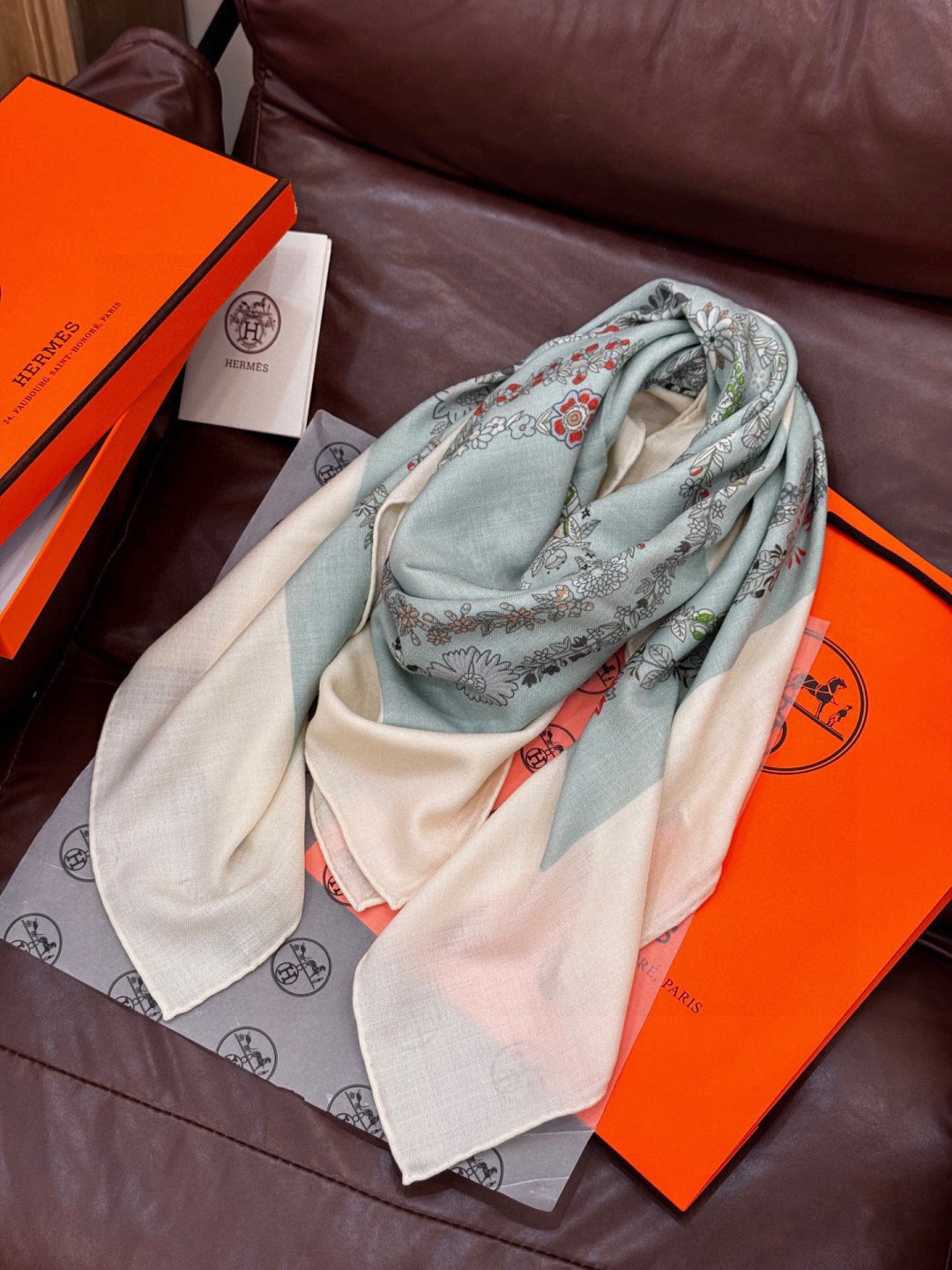 HM 25s Velvet Square Scarf 140cm Light Beige Cashmere 976214