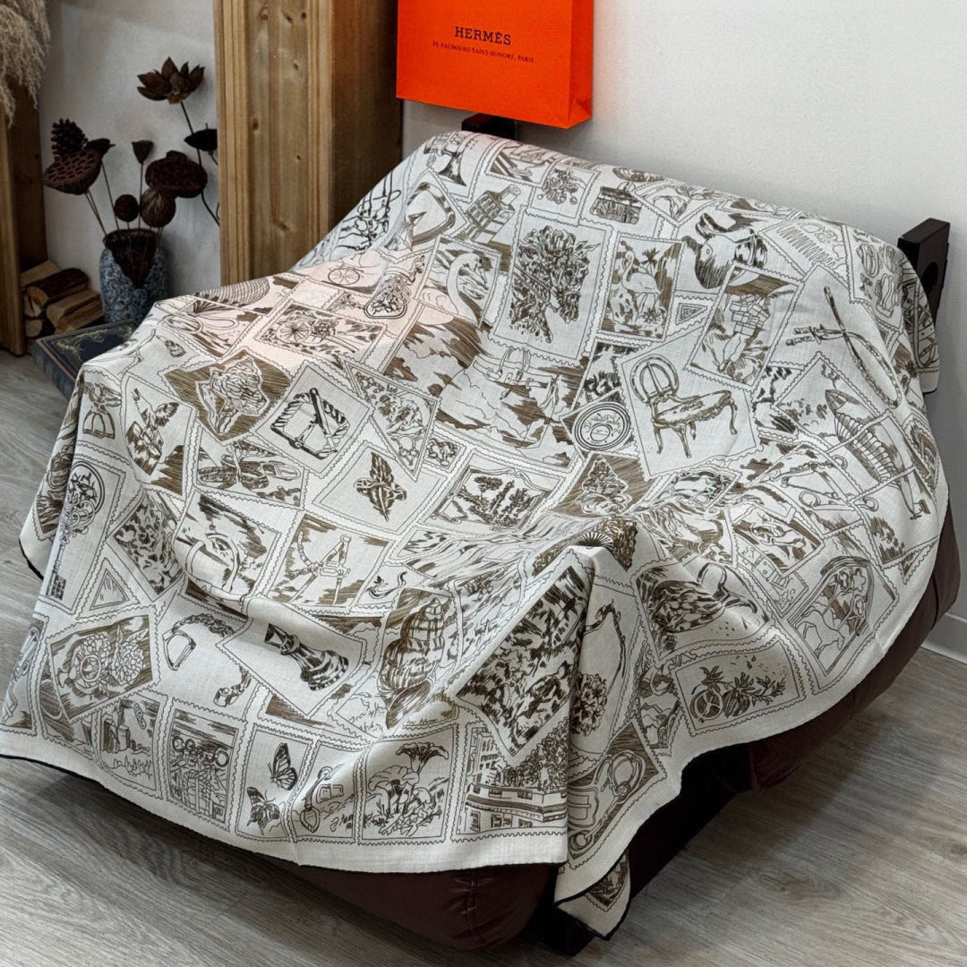 HM 25s Velvet Square Scarf 140cm Light Brown White Cashmere Silk 970936