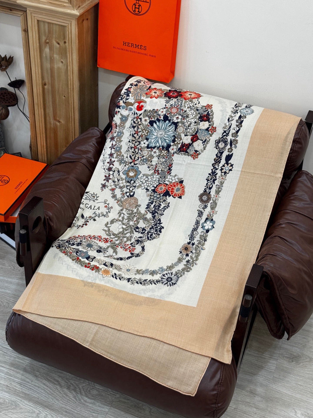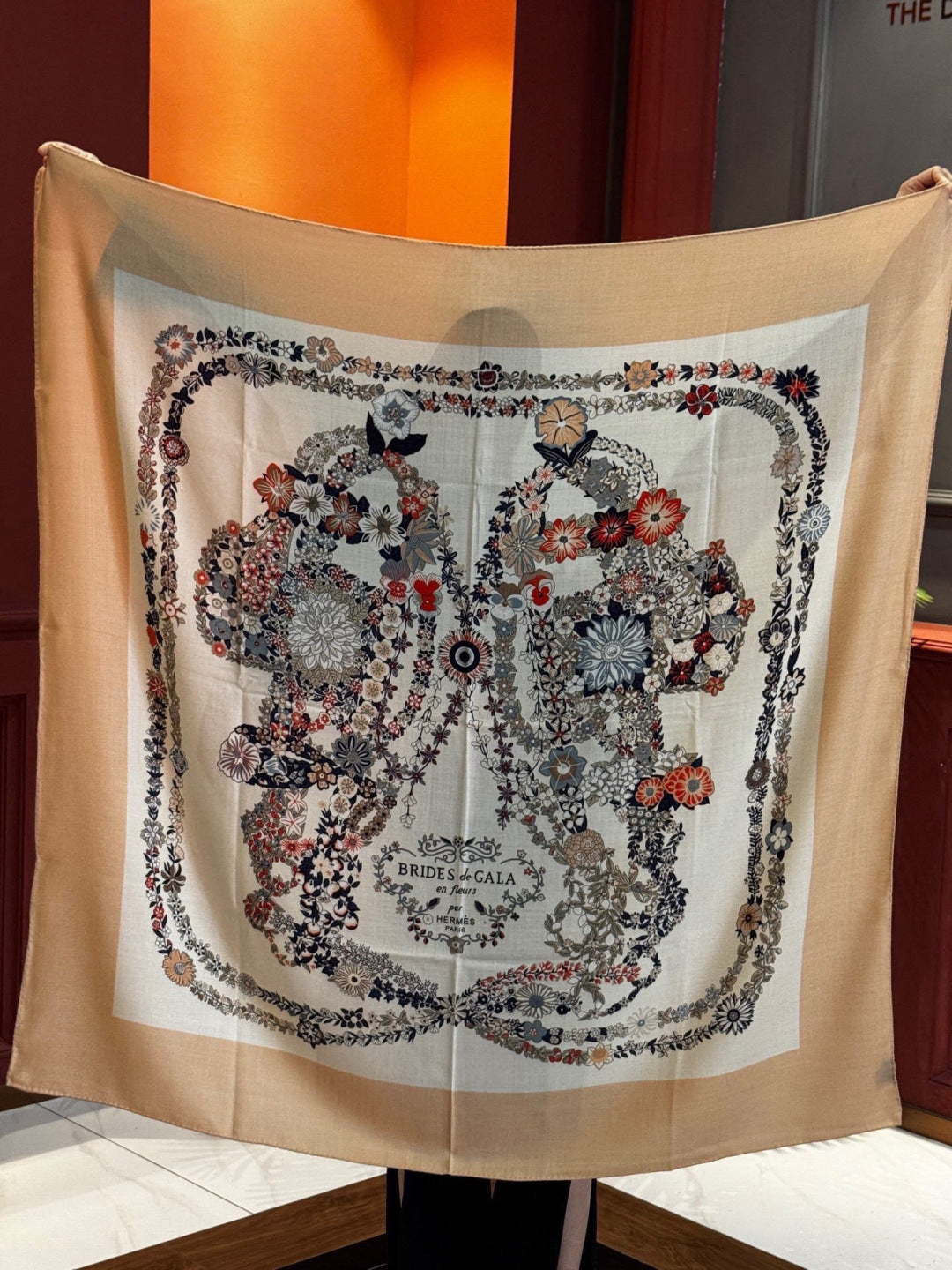 HM 25s Velvet Square Scarf 140cm White Beige Black Cashmere 976216