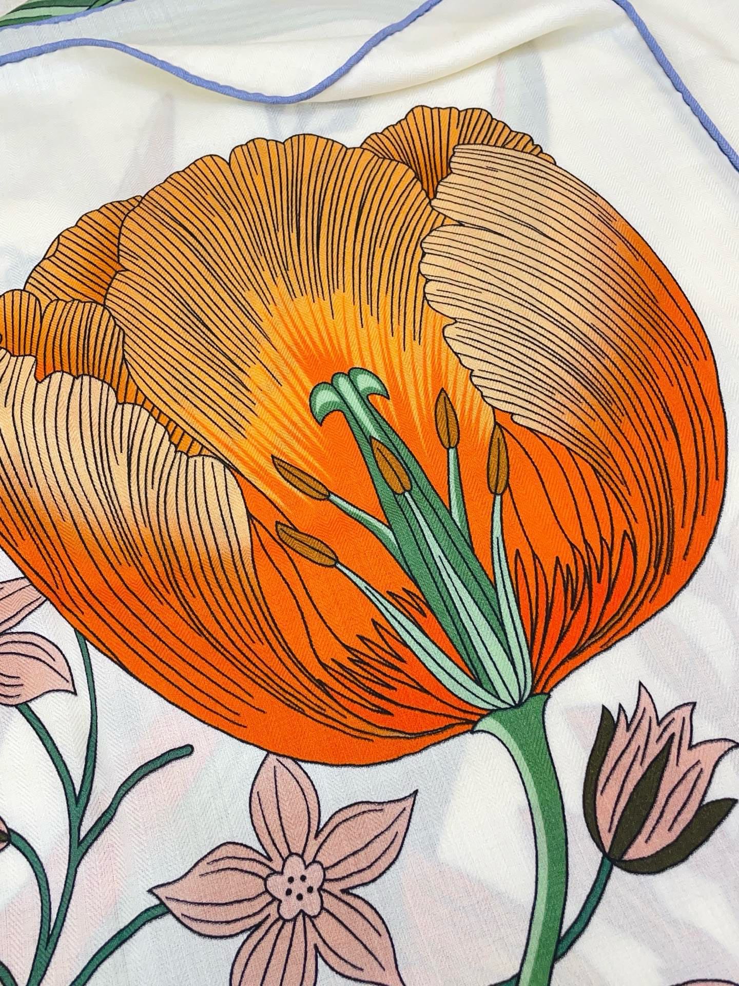 HM Bouquet Final Scarf 90 White Silk Cashmere 139461