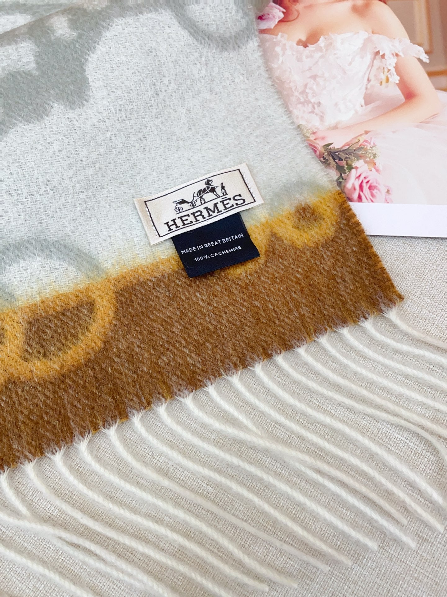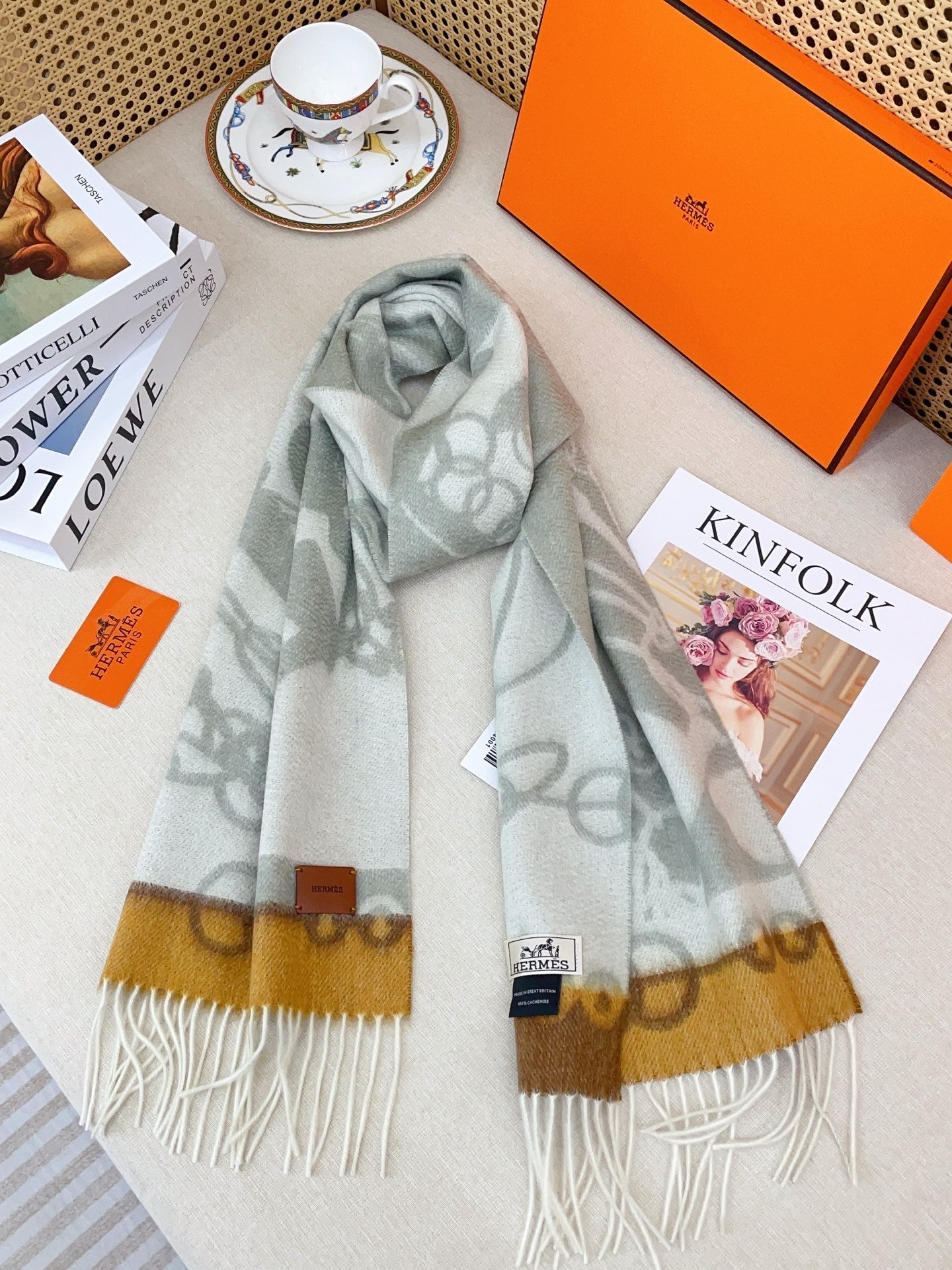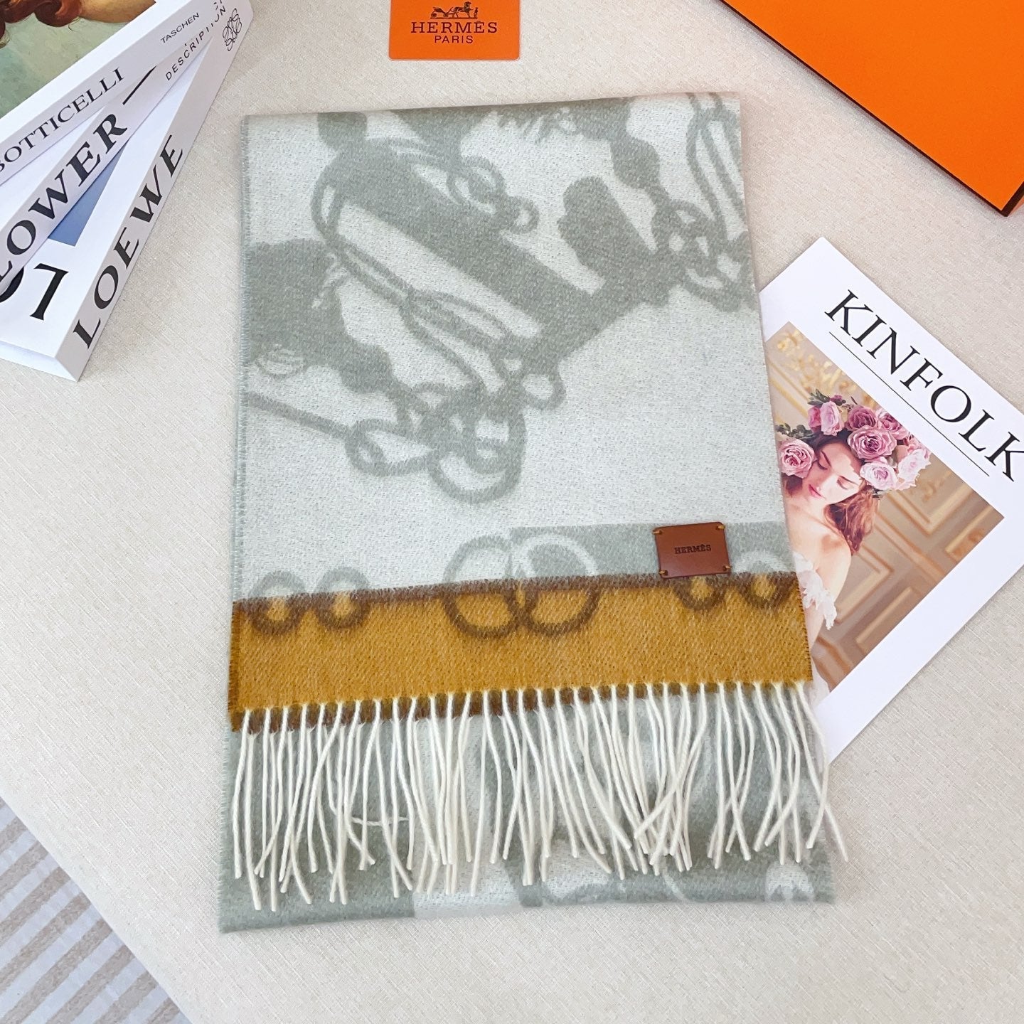 HM Casaque Mors Long Scarf Grey White Brown Cashmere 139454