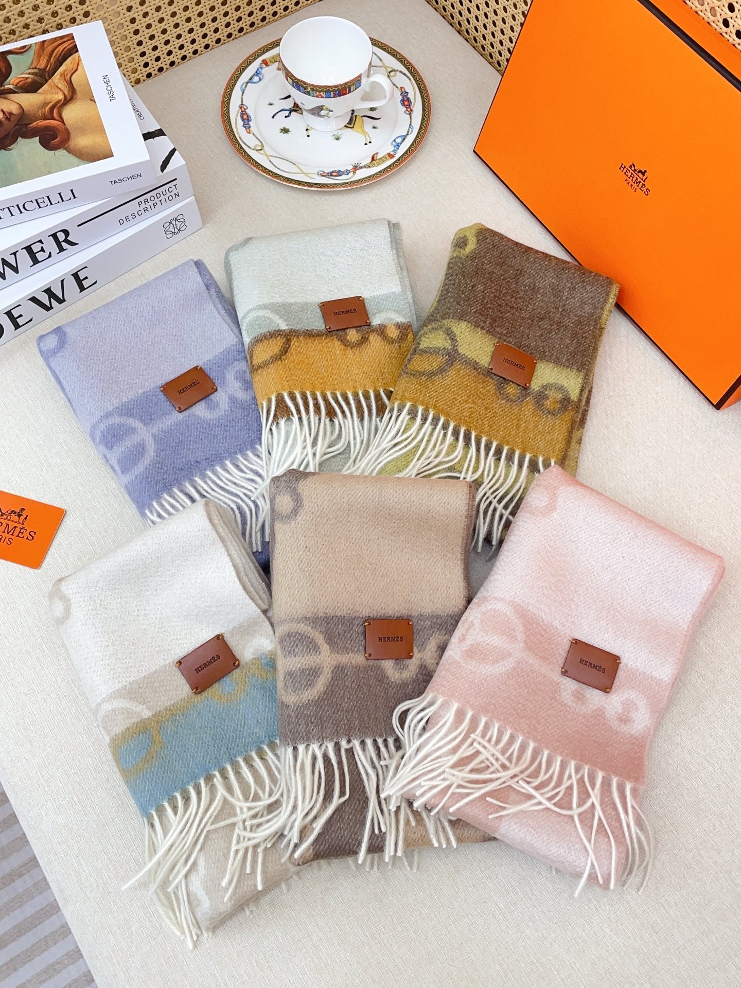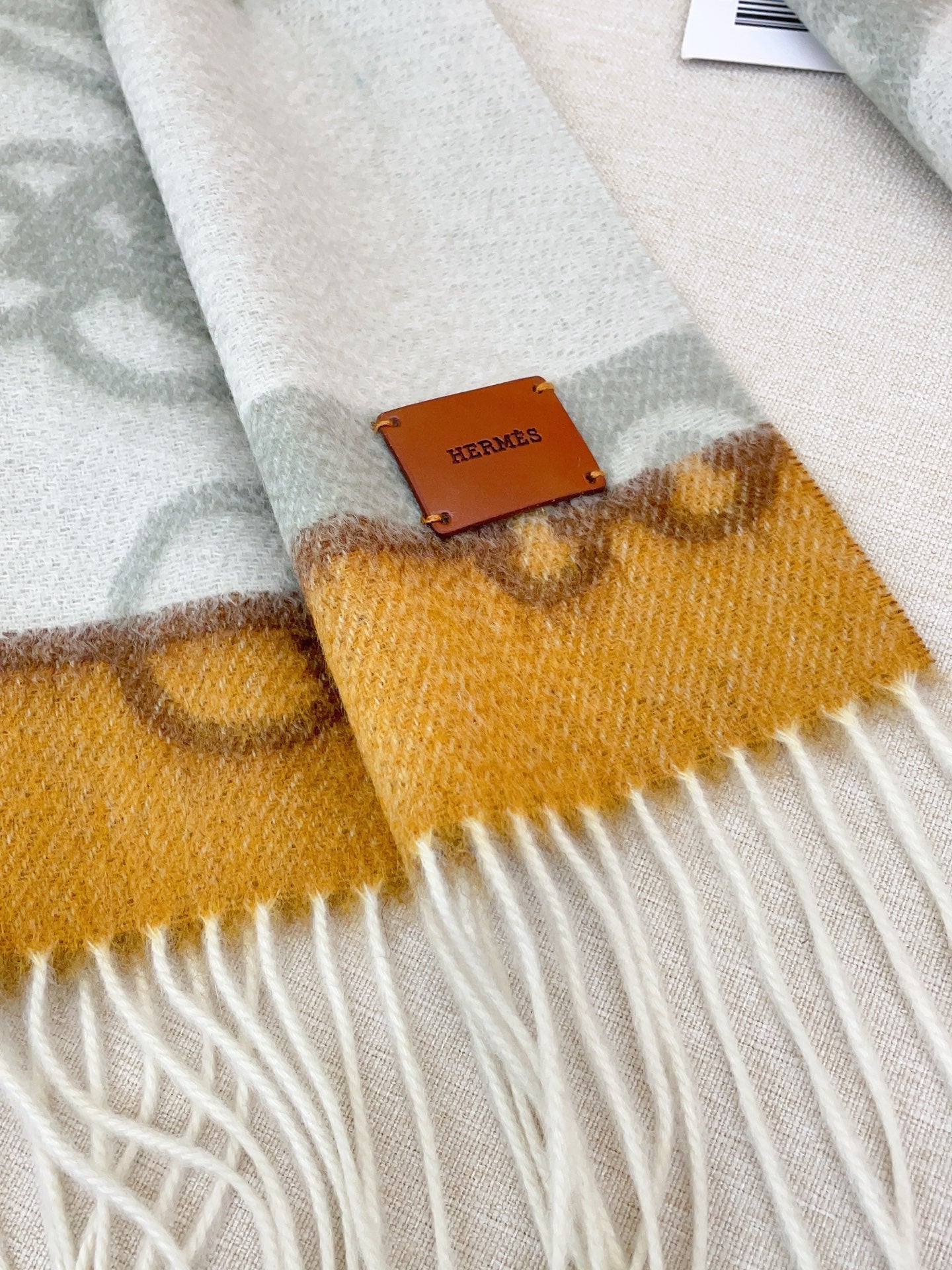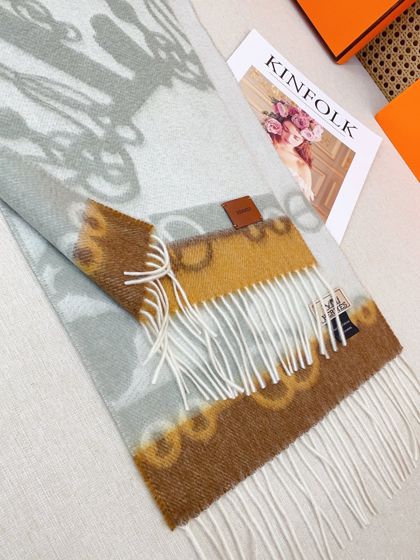 HM Casaque Mors Long Scarf Grey White Brown Cashmere 139454