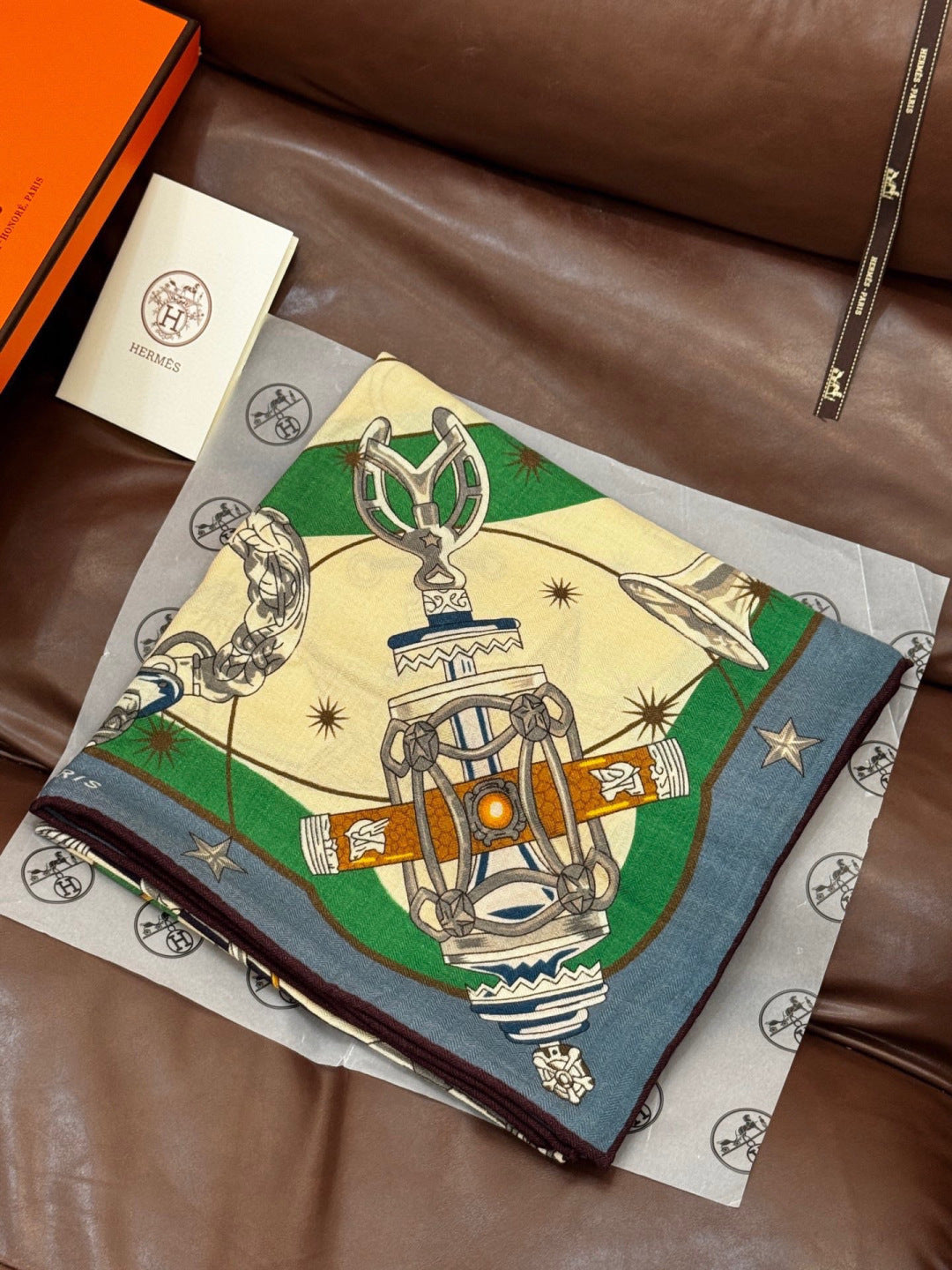 HM Starry Night Chorus Scarf 140cm Green Beige Cashmere 970972
