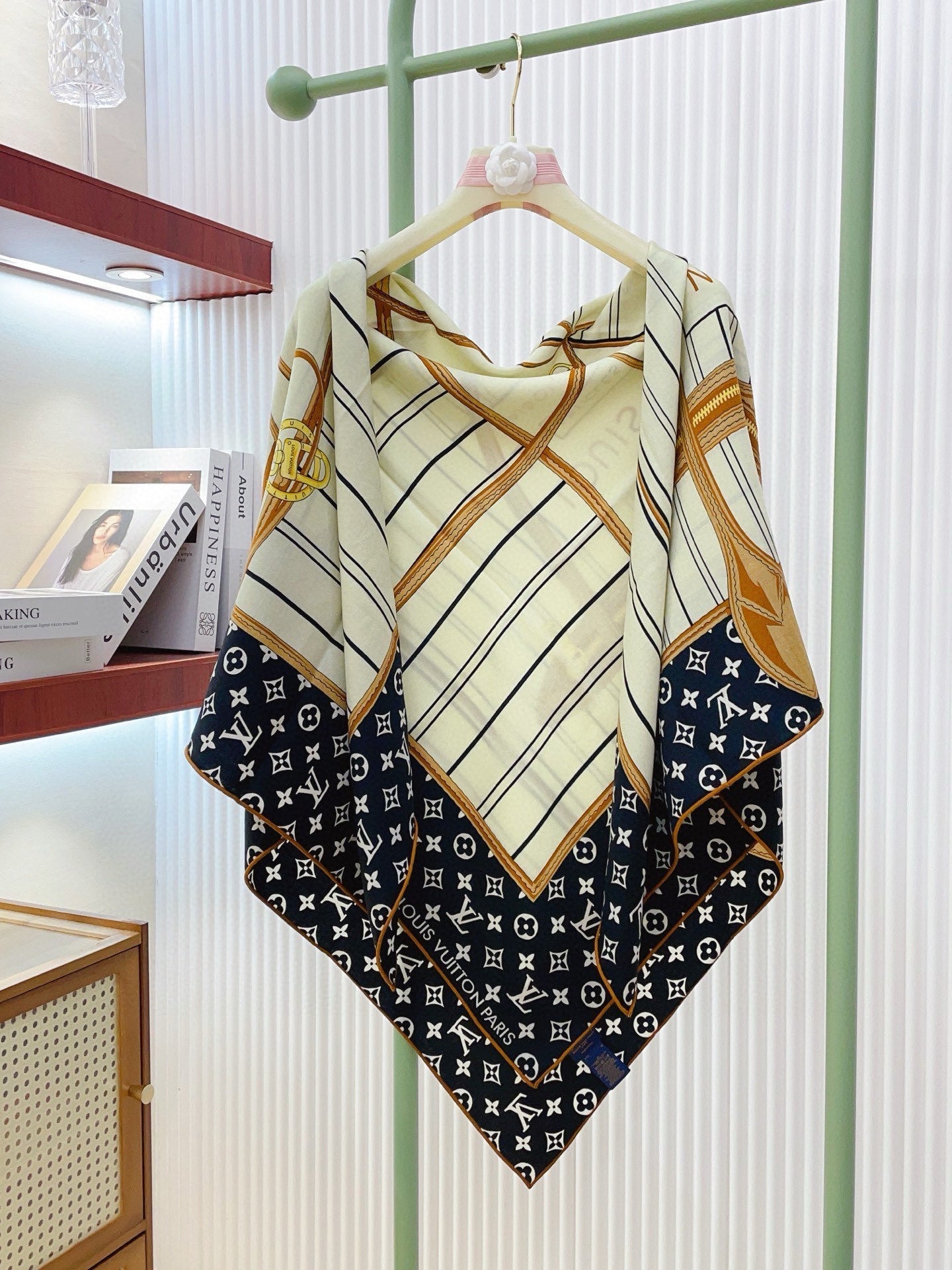 LV Double-sided Scarf 140cm Black White Cashmere 971049