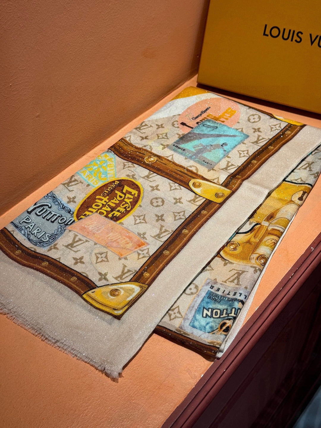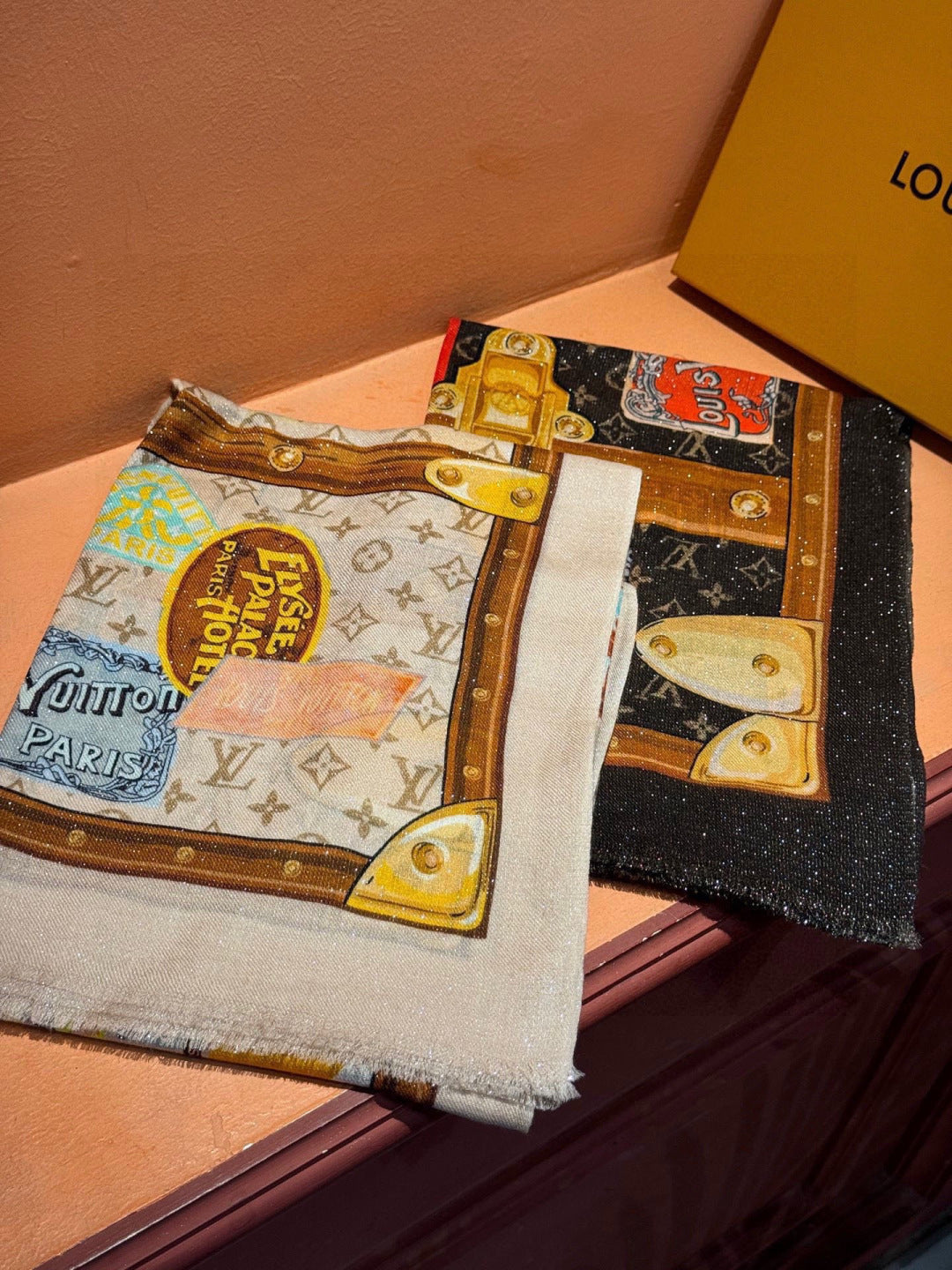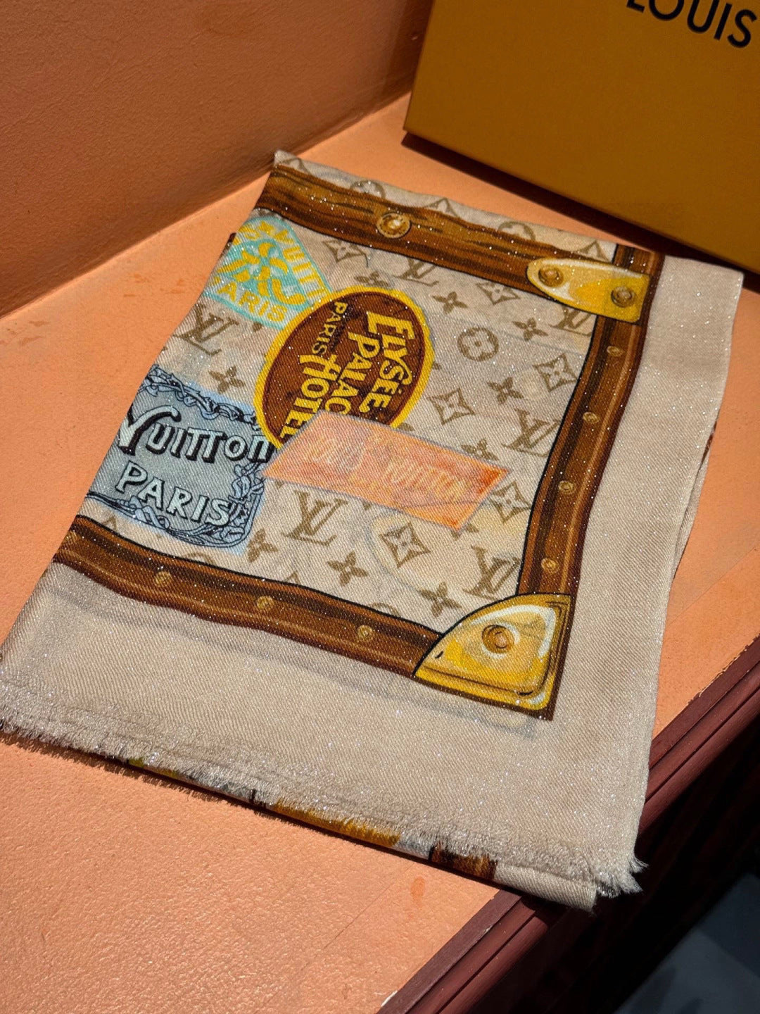 LV Silver Thread Long Scarf 200cm Beige Brown Cashmere 969181