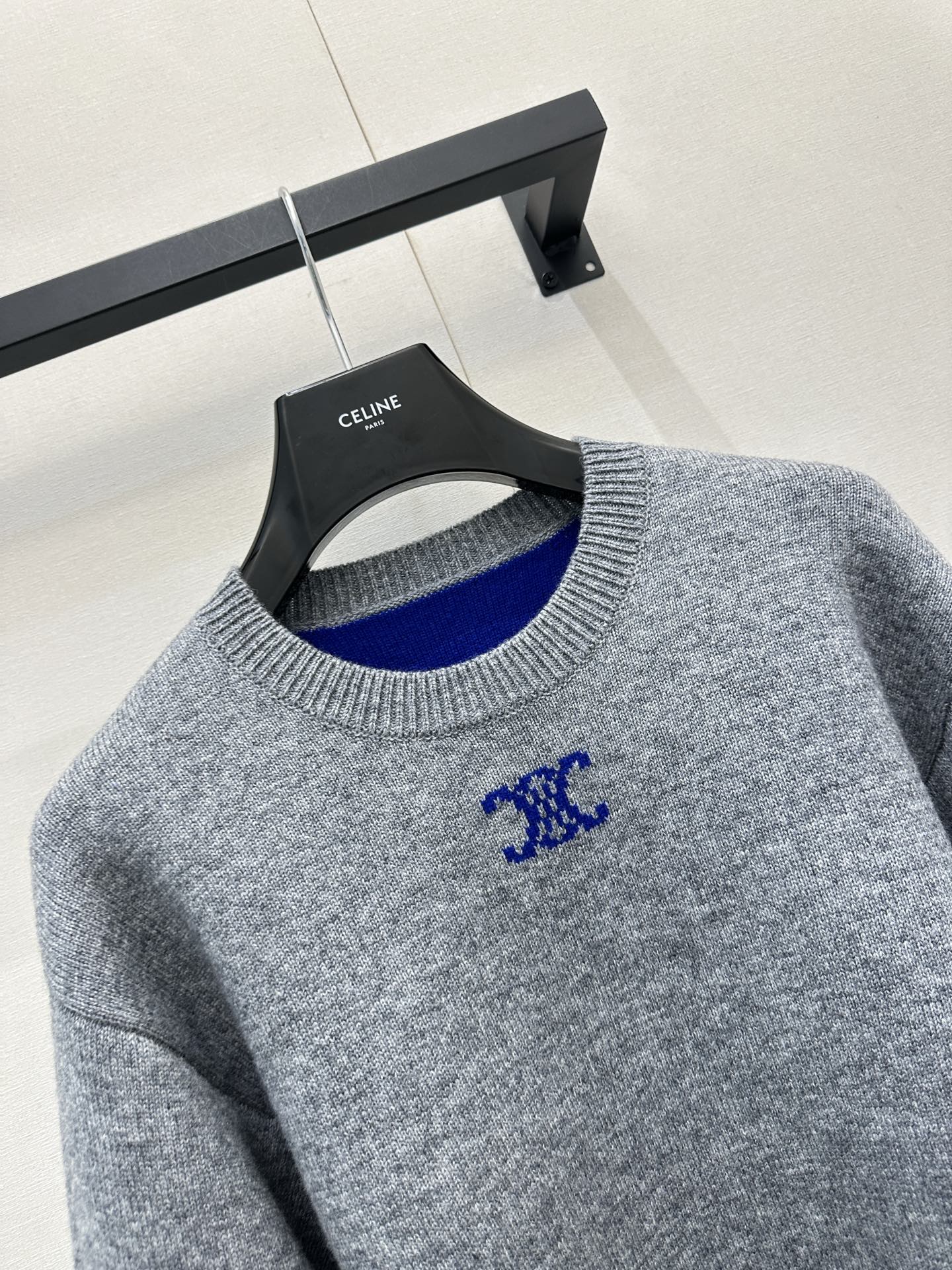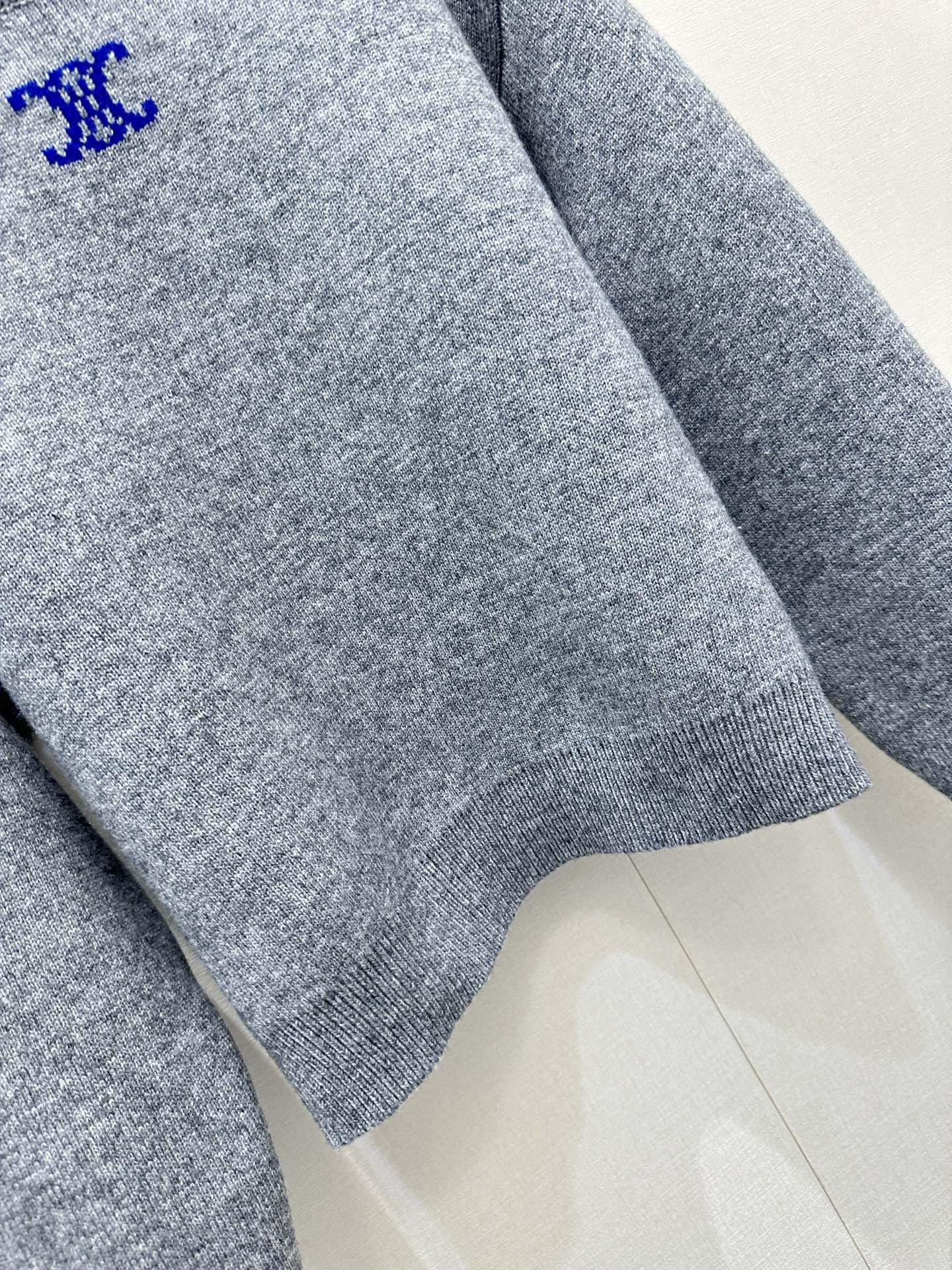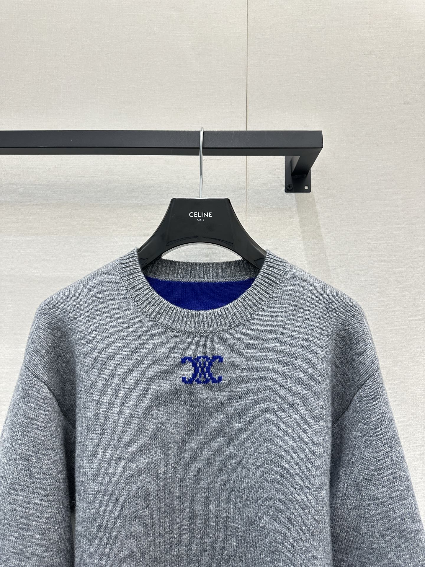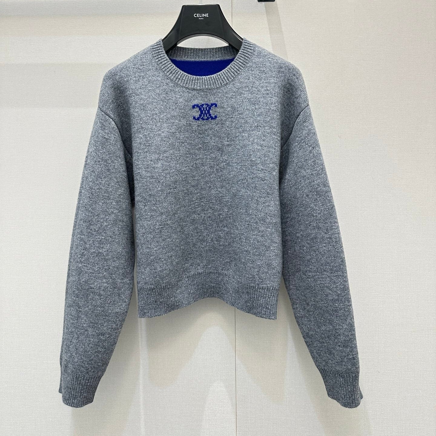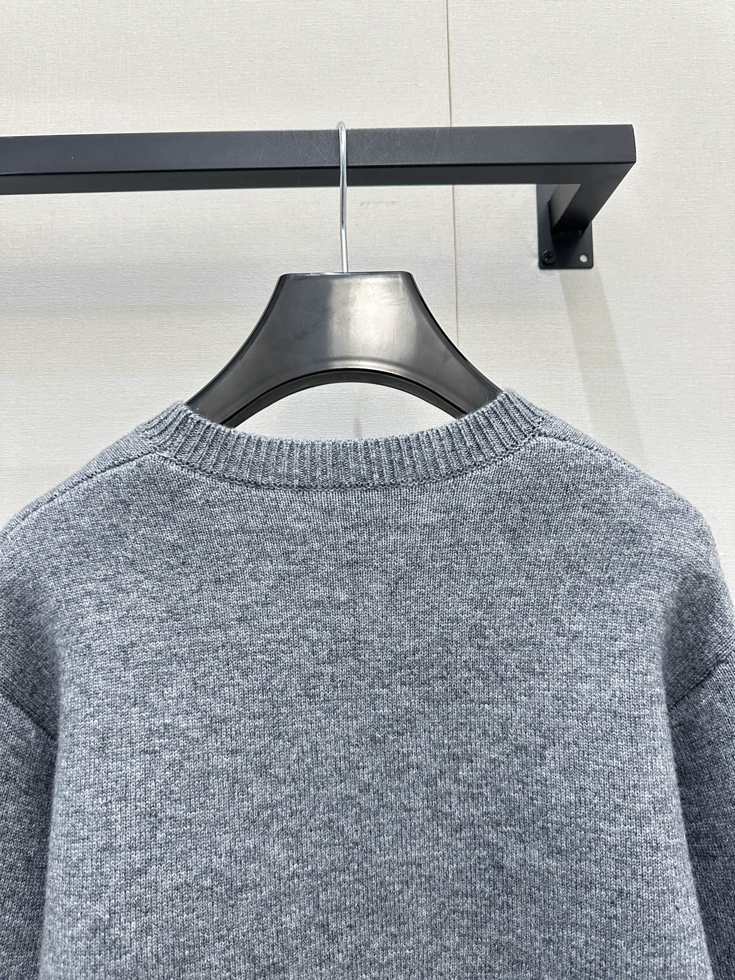 Celin Embroidered Crew Neck Sweater Grey Wool 346098