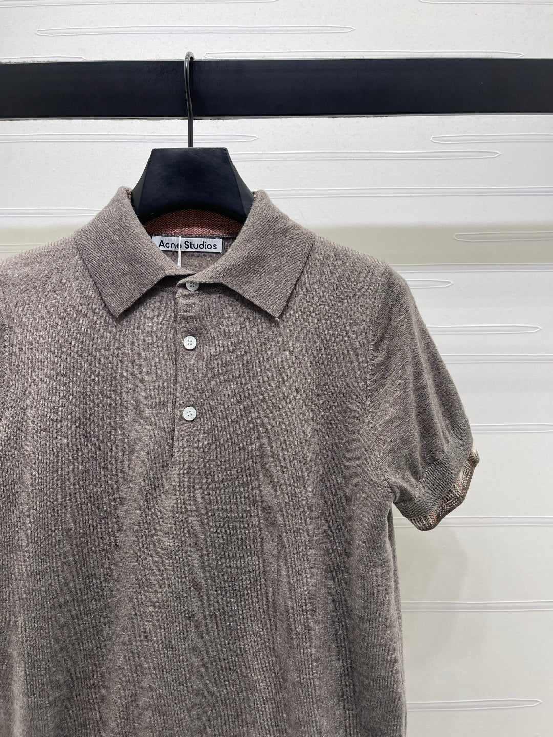 Miu Half-Open Short-Sleeve Shirt Grey Knit 343425