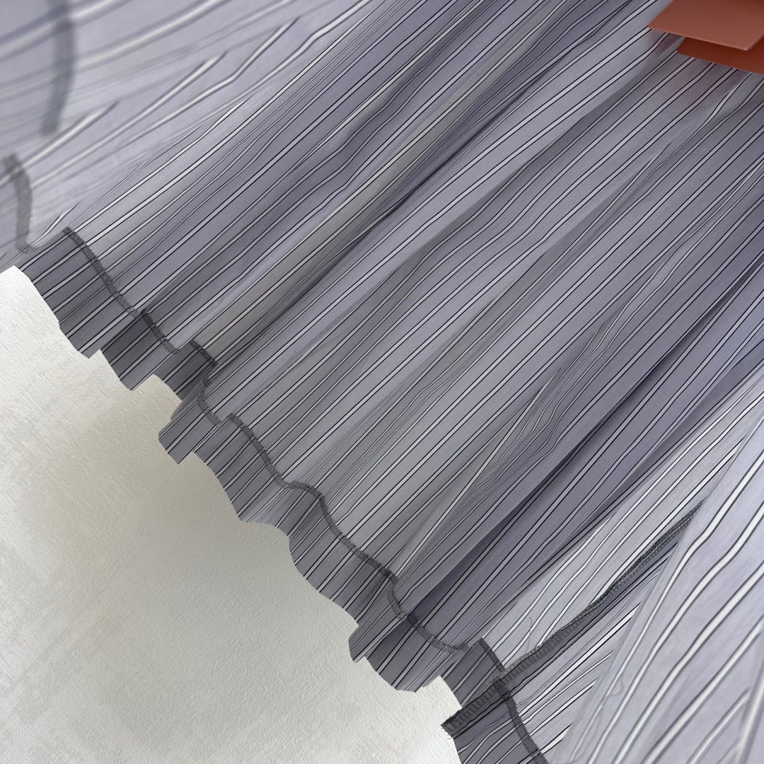Miu Miu Pleated Striped Midi Skirt Grey Cotton 341903