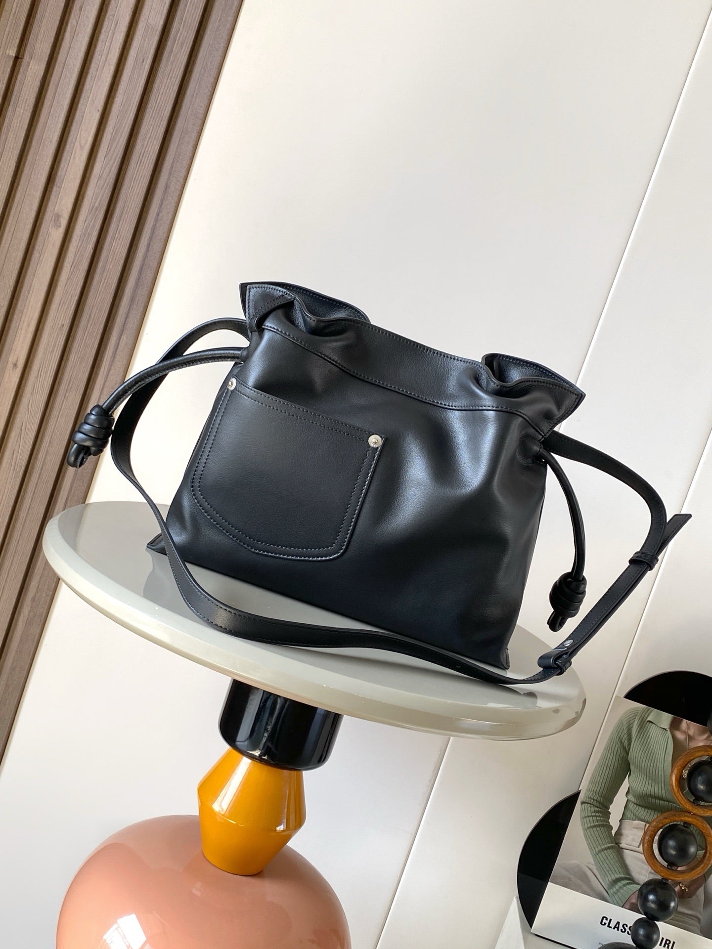 Loewe Panta Medium Flamenco Clutch Bag Black Calfskin