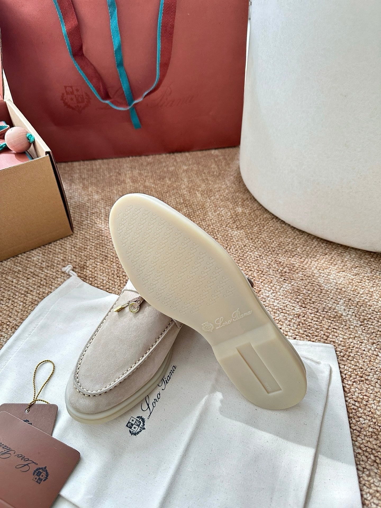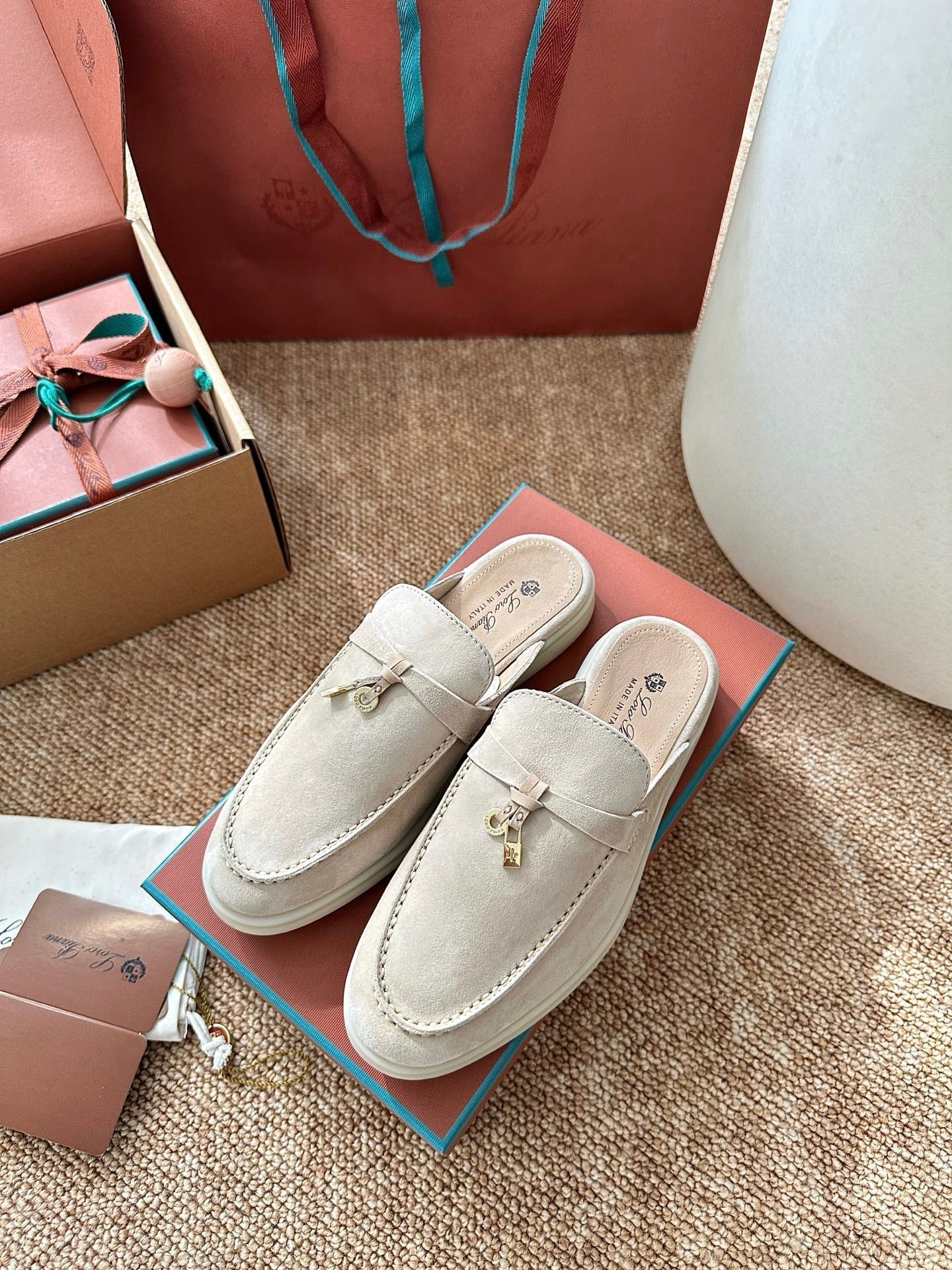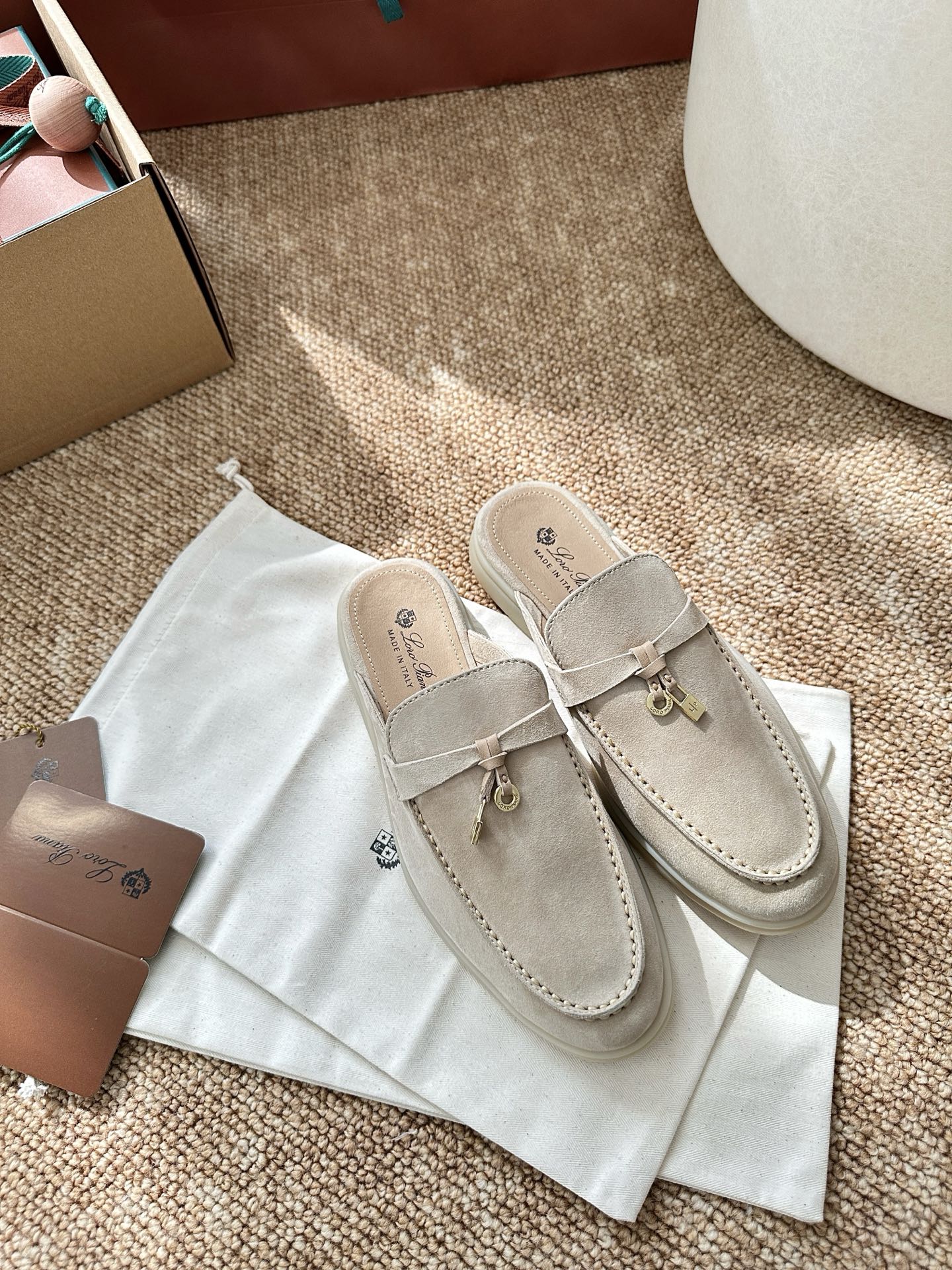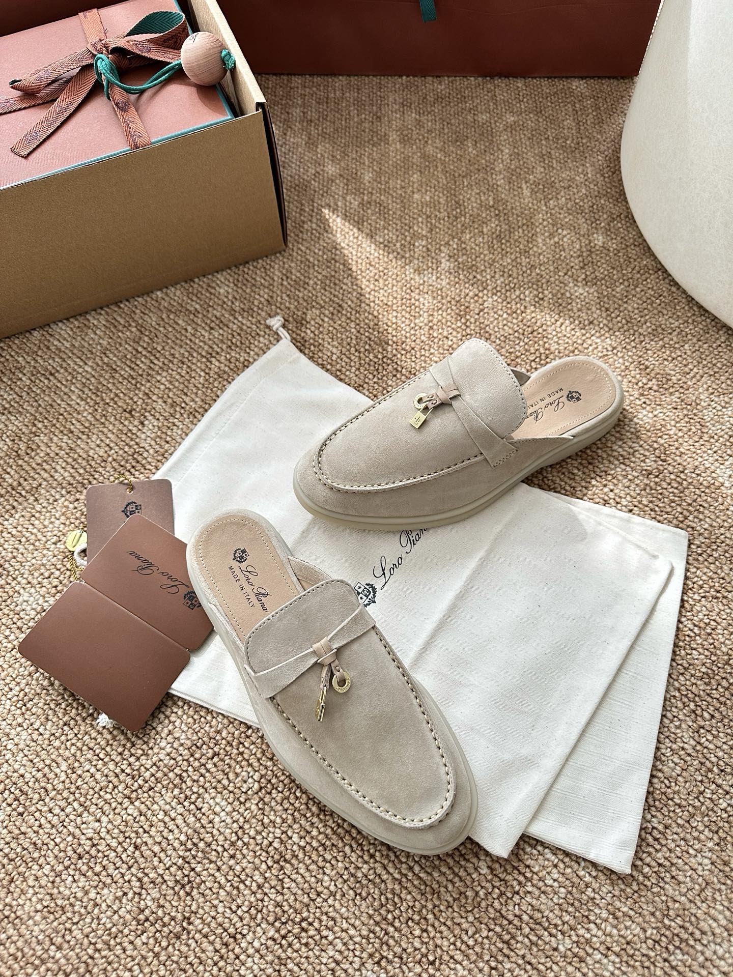 Loro Piana Charms Walk Flat Mules Apricot Suede 623556