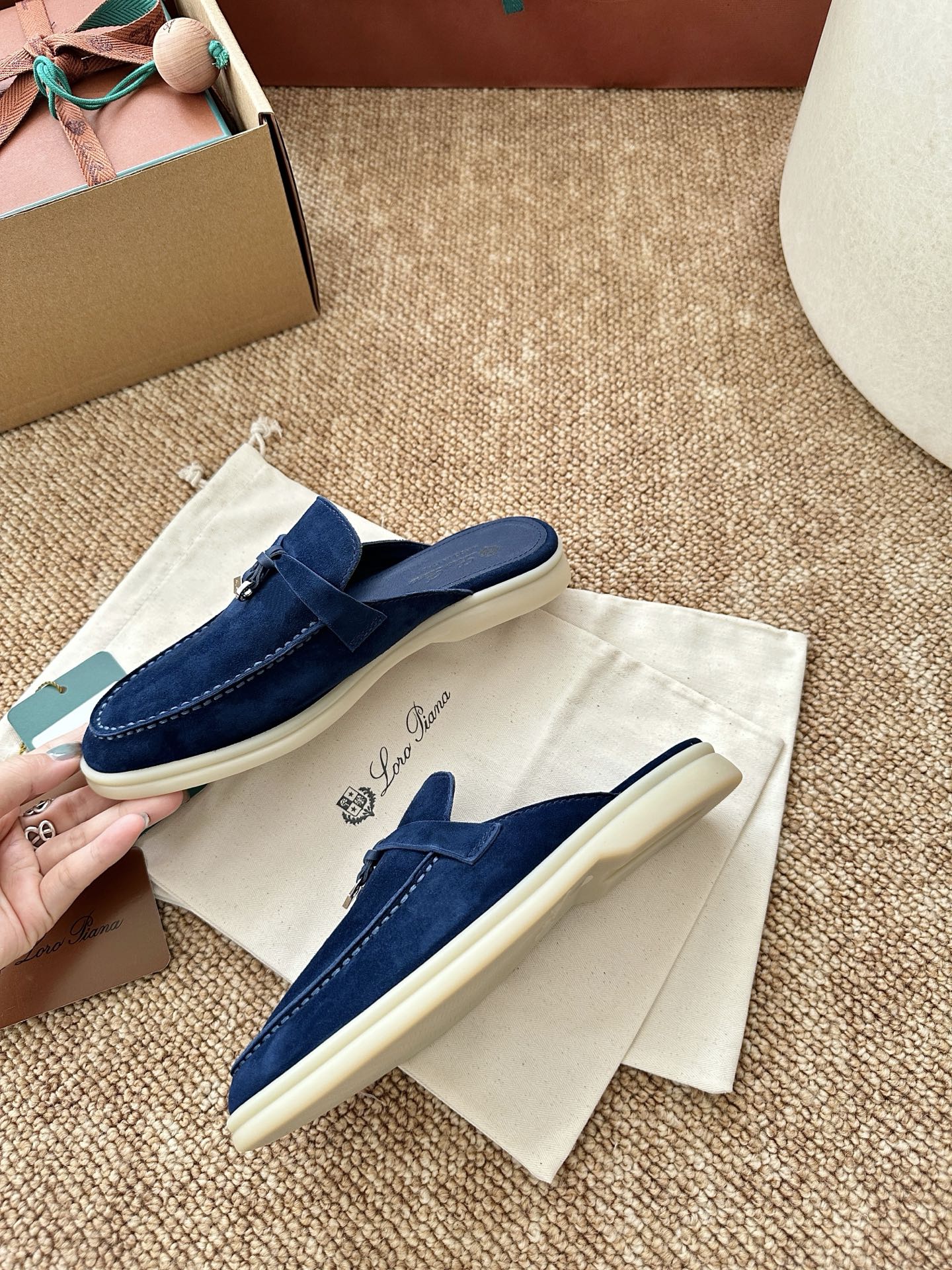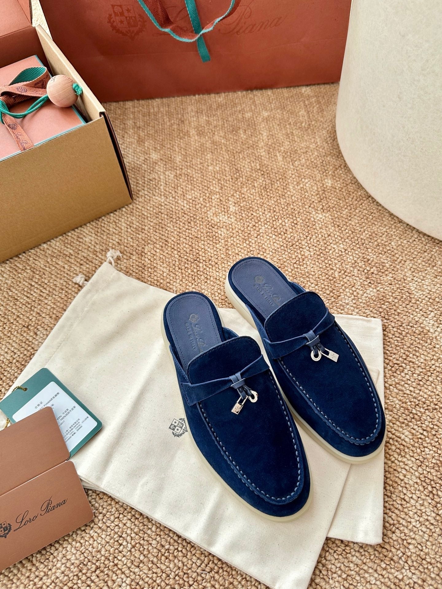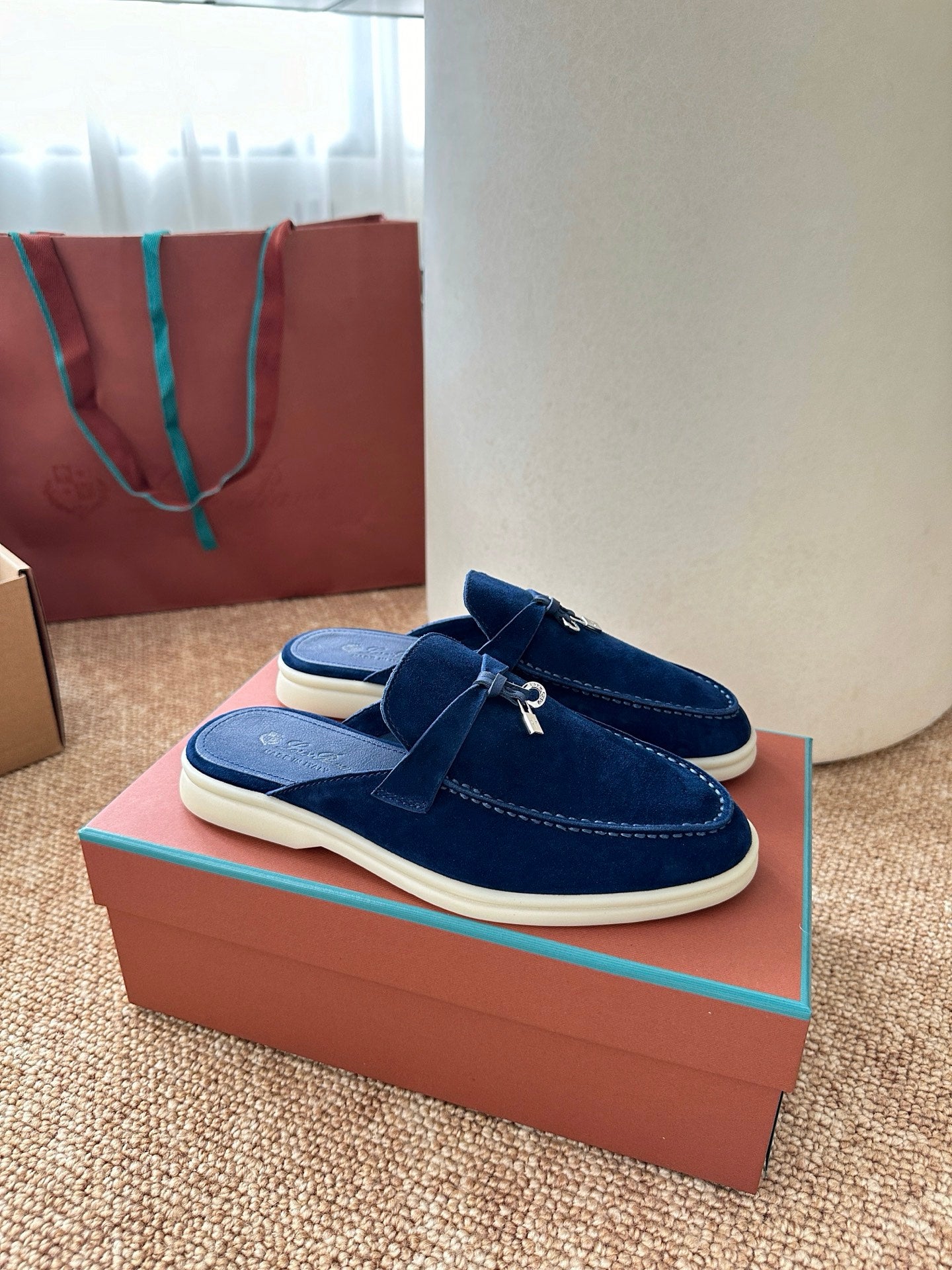 Loro Piana Charms Walk Flat Mules Dark blue Suede 623553