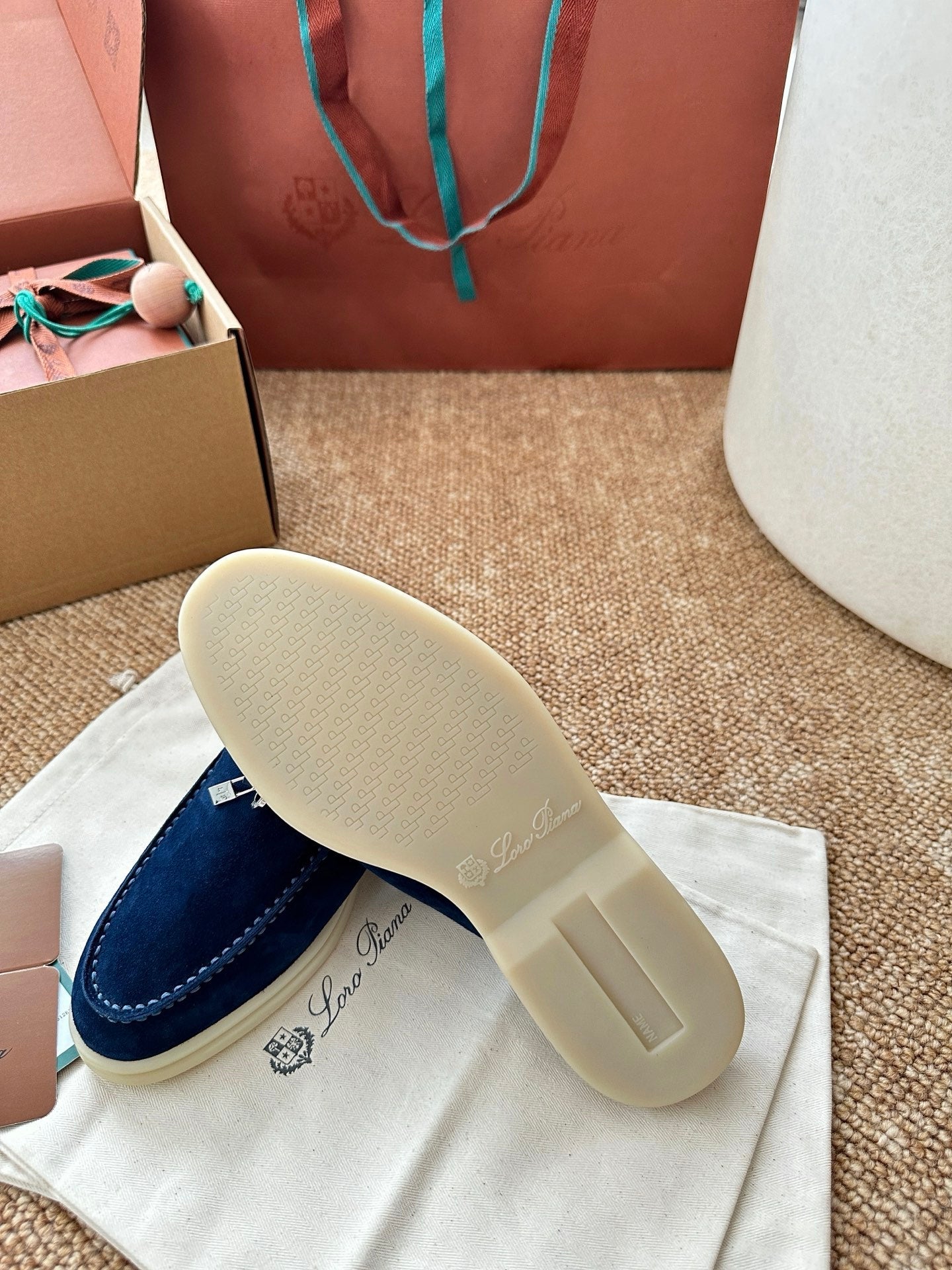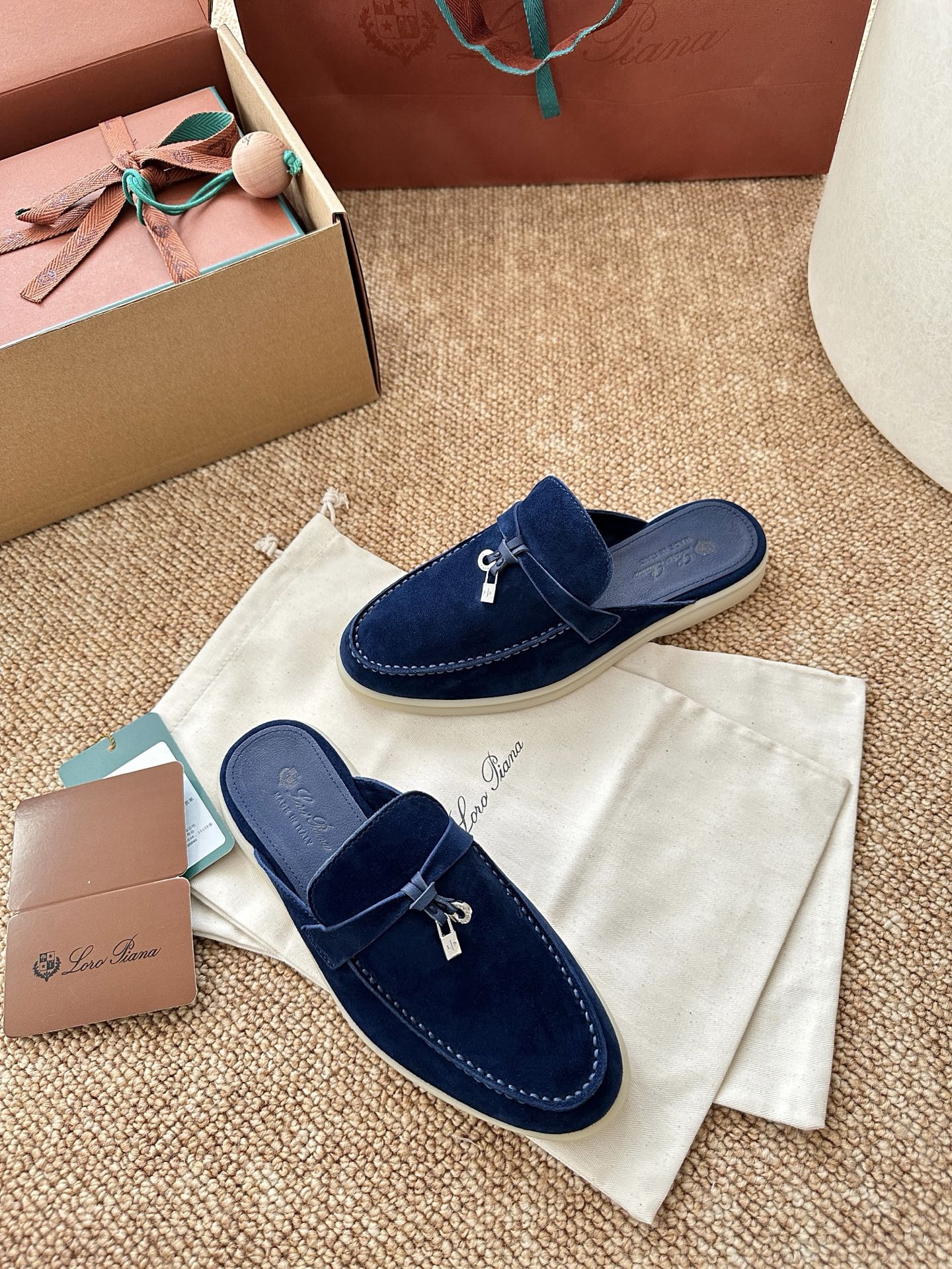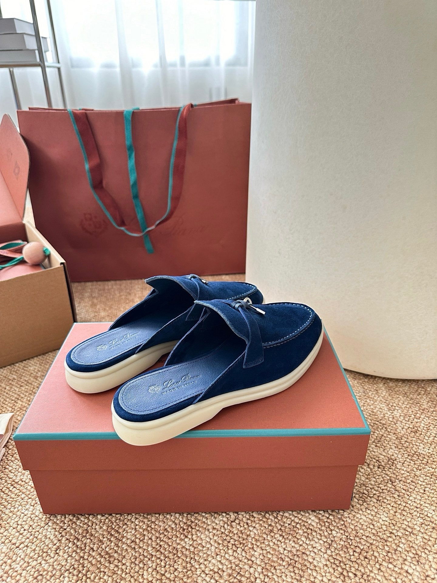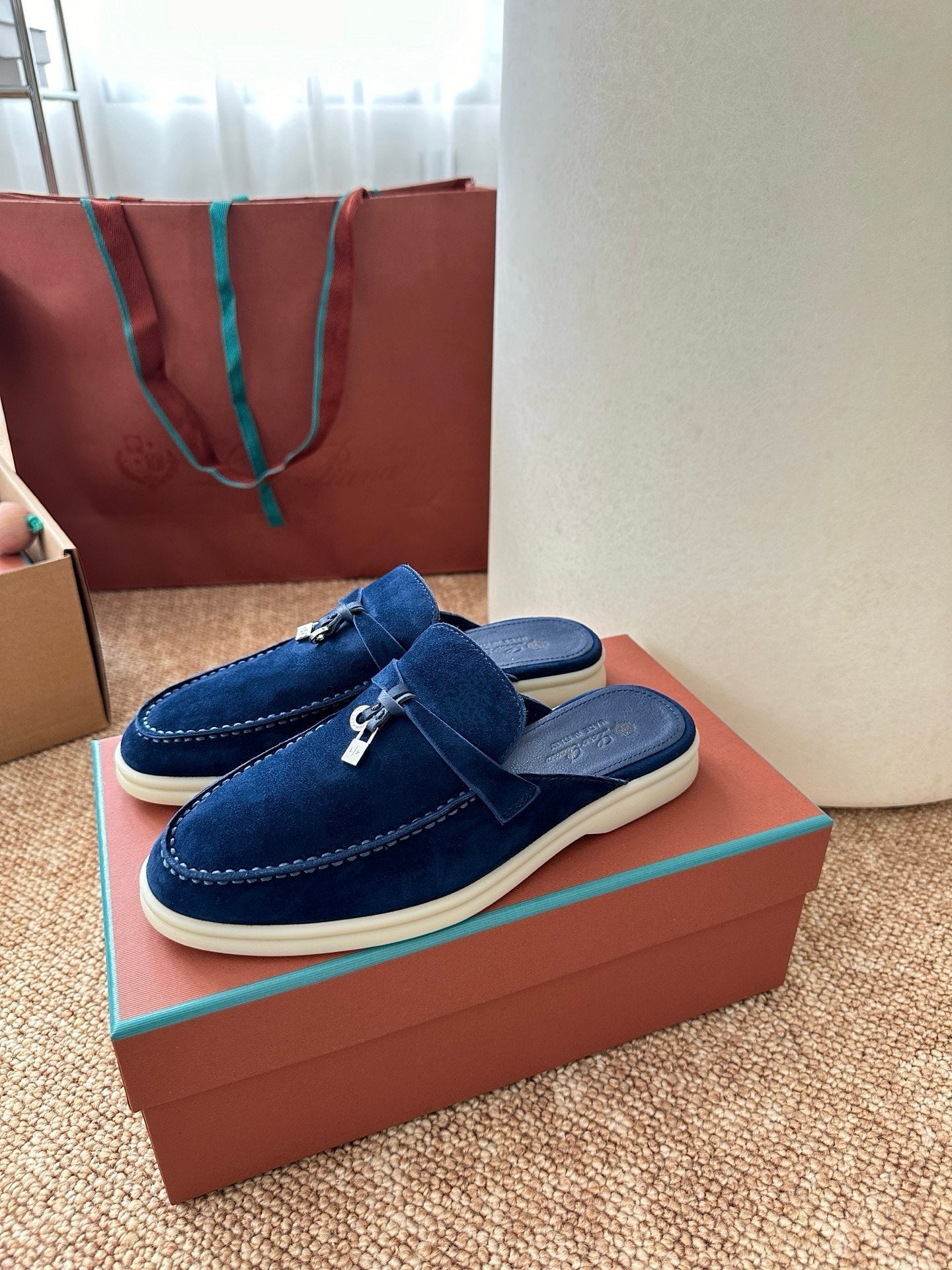 Loro Piana Charms Walk Flat Mules Dark blue Suede 623553