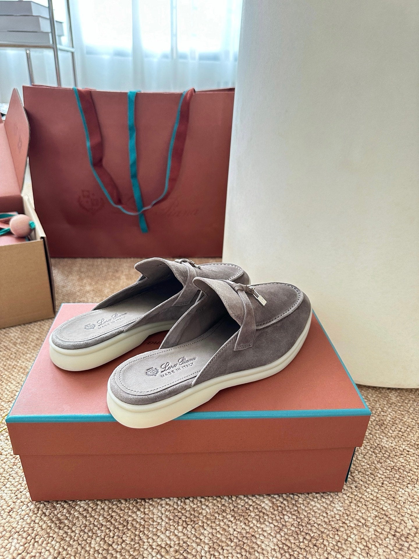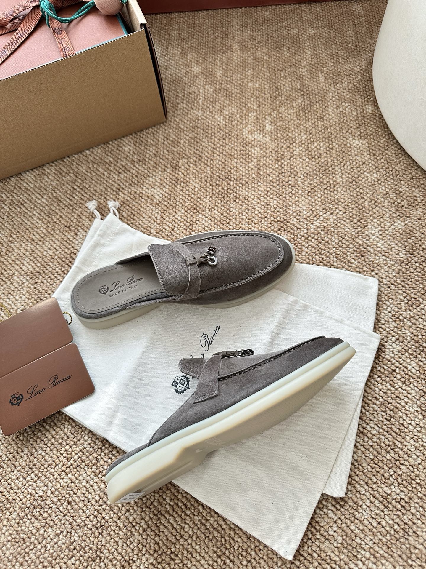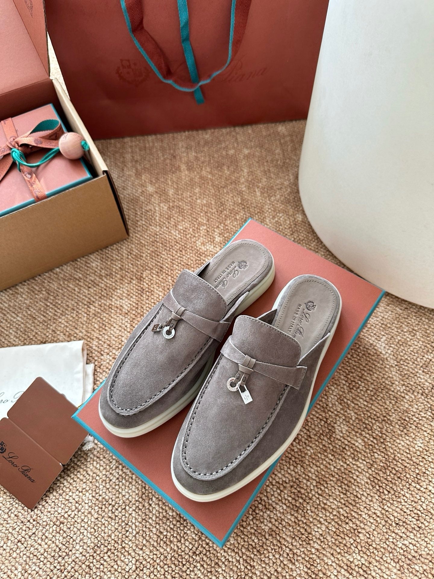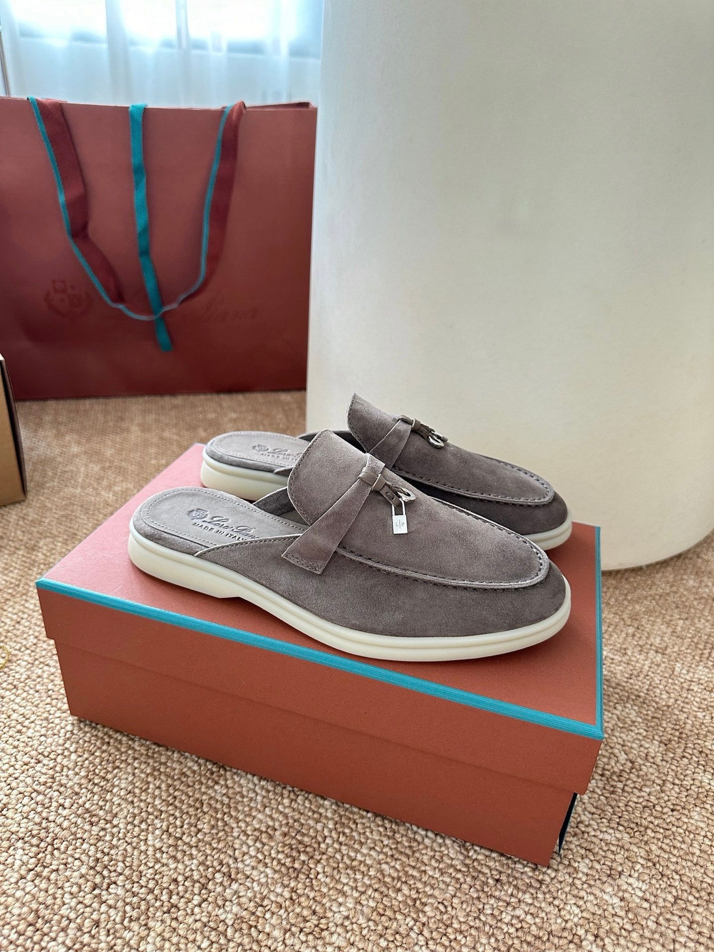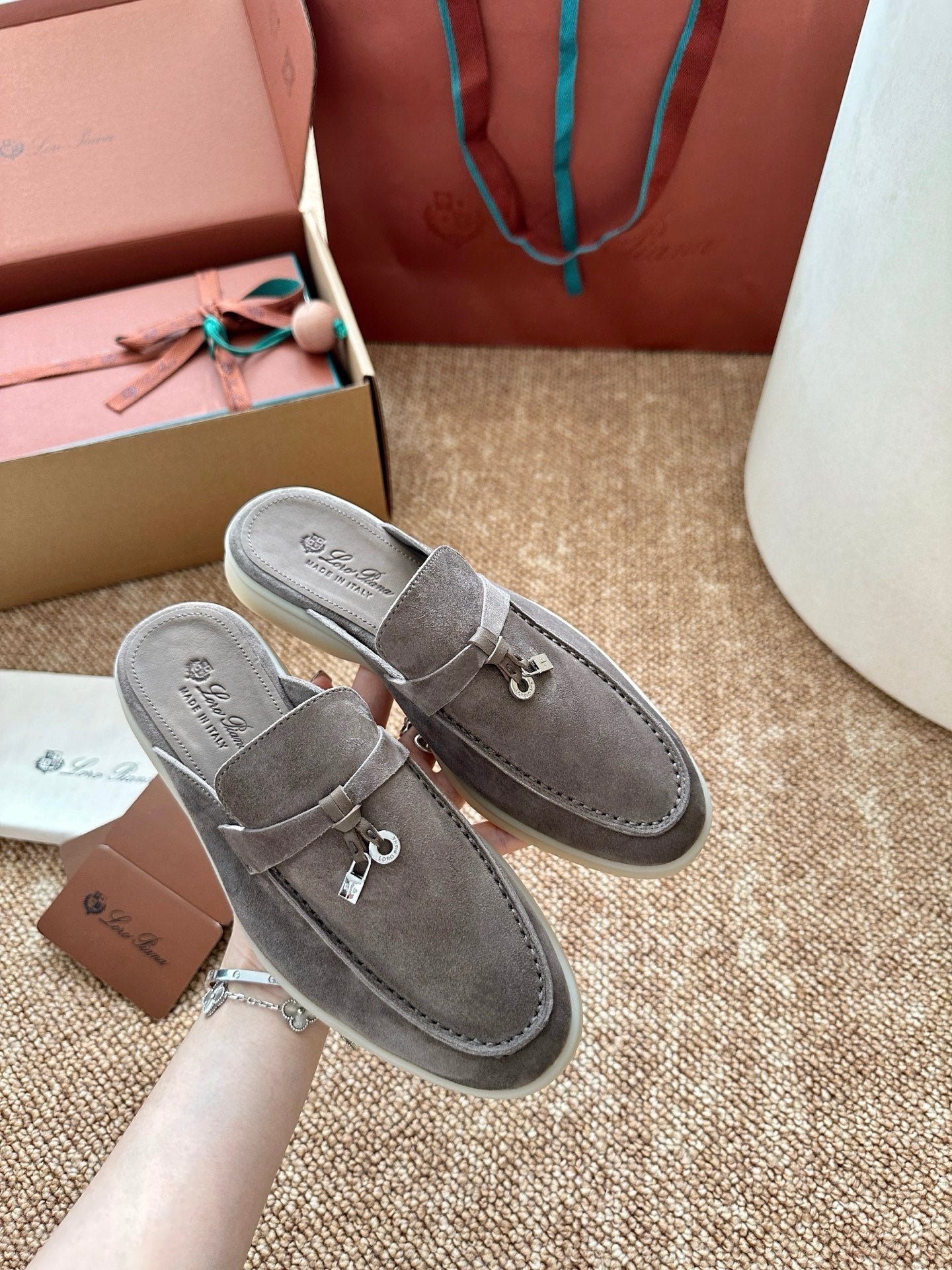 Loro Piana Charms Walk Flat Mules Dark Brown Suede 623555