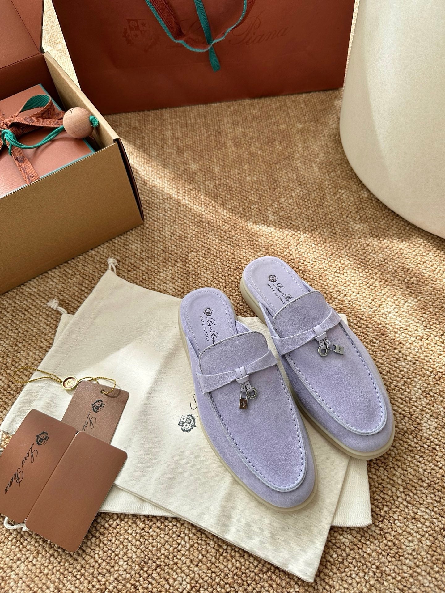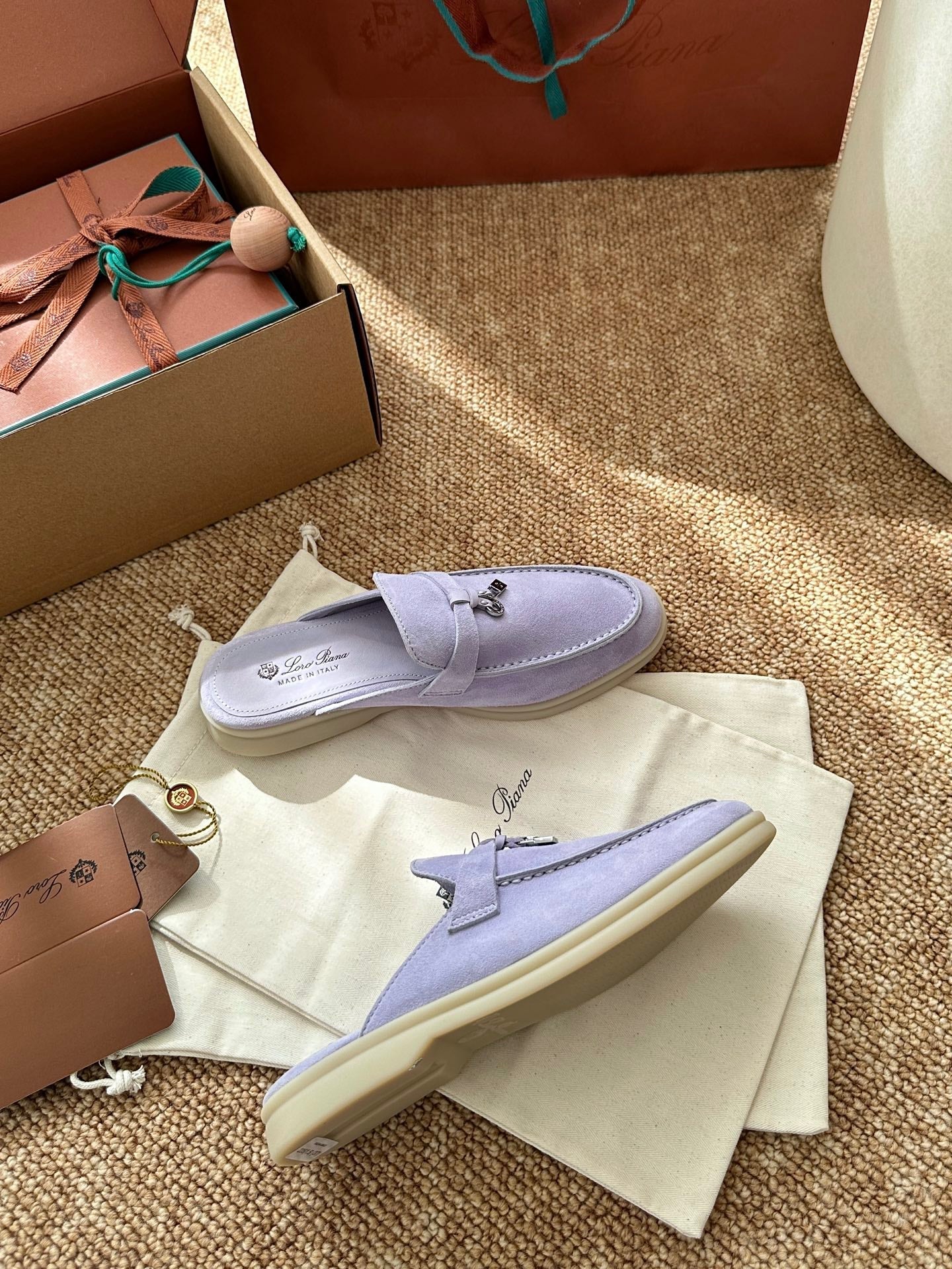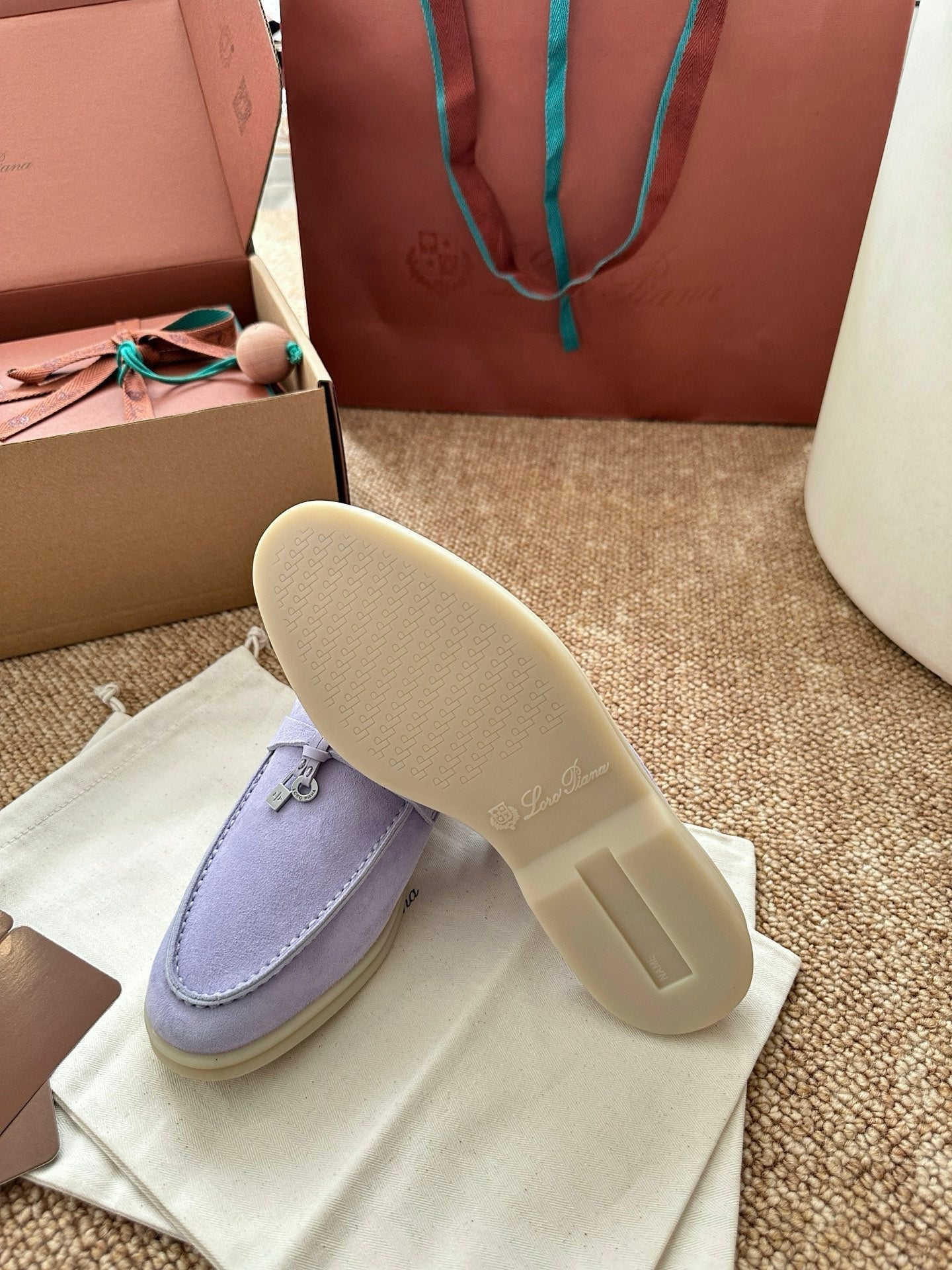 Loro Piana Charms Walk Flat Mules Light Purple Suede 623438