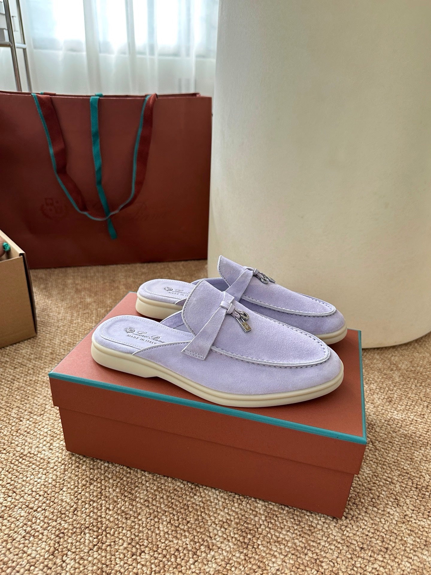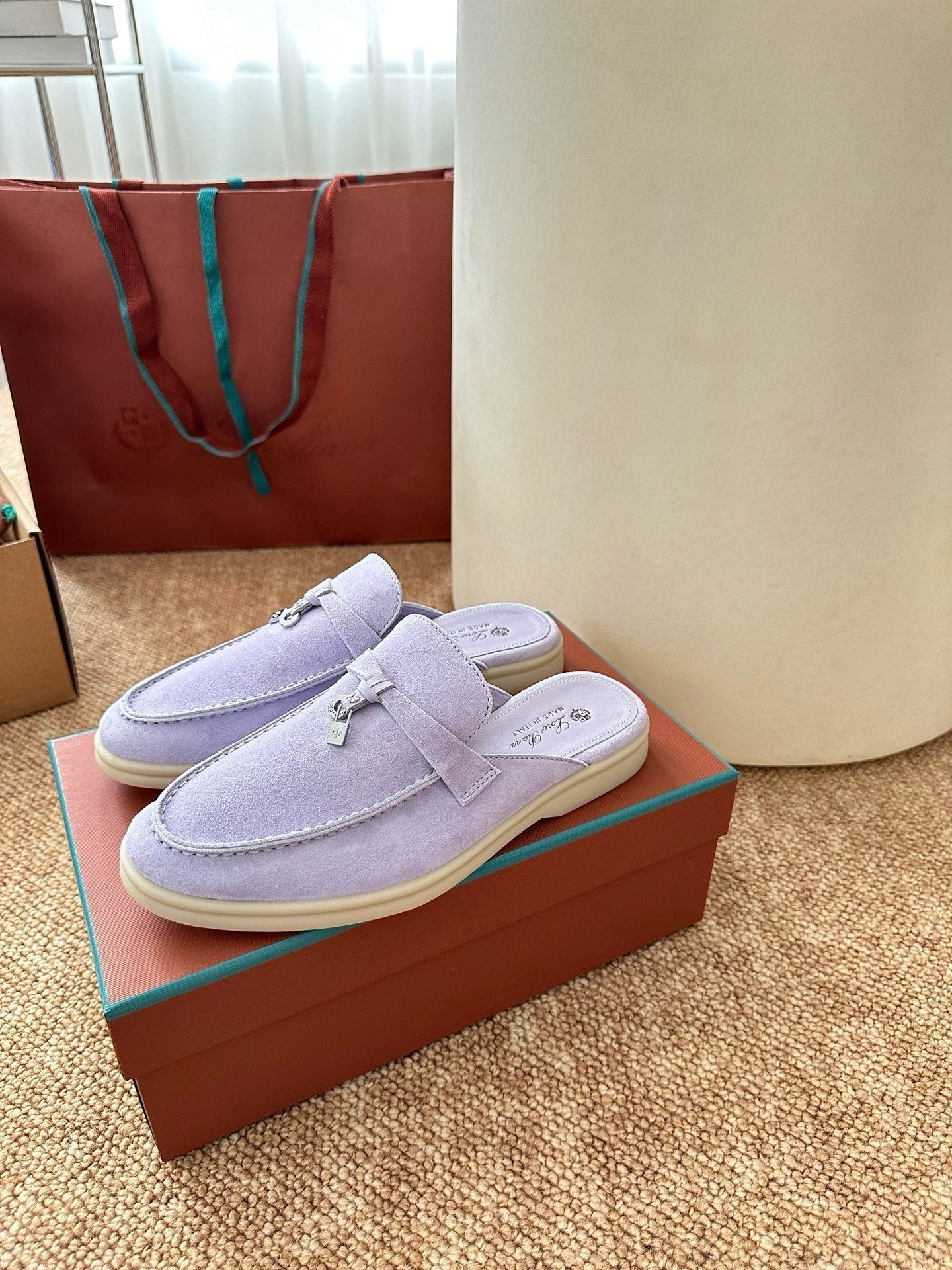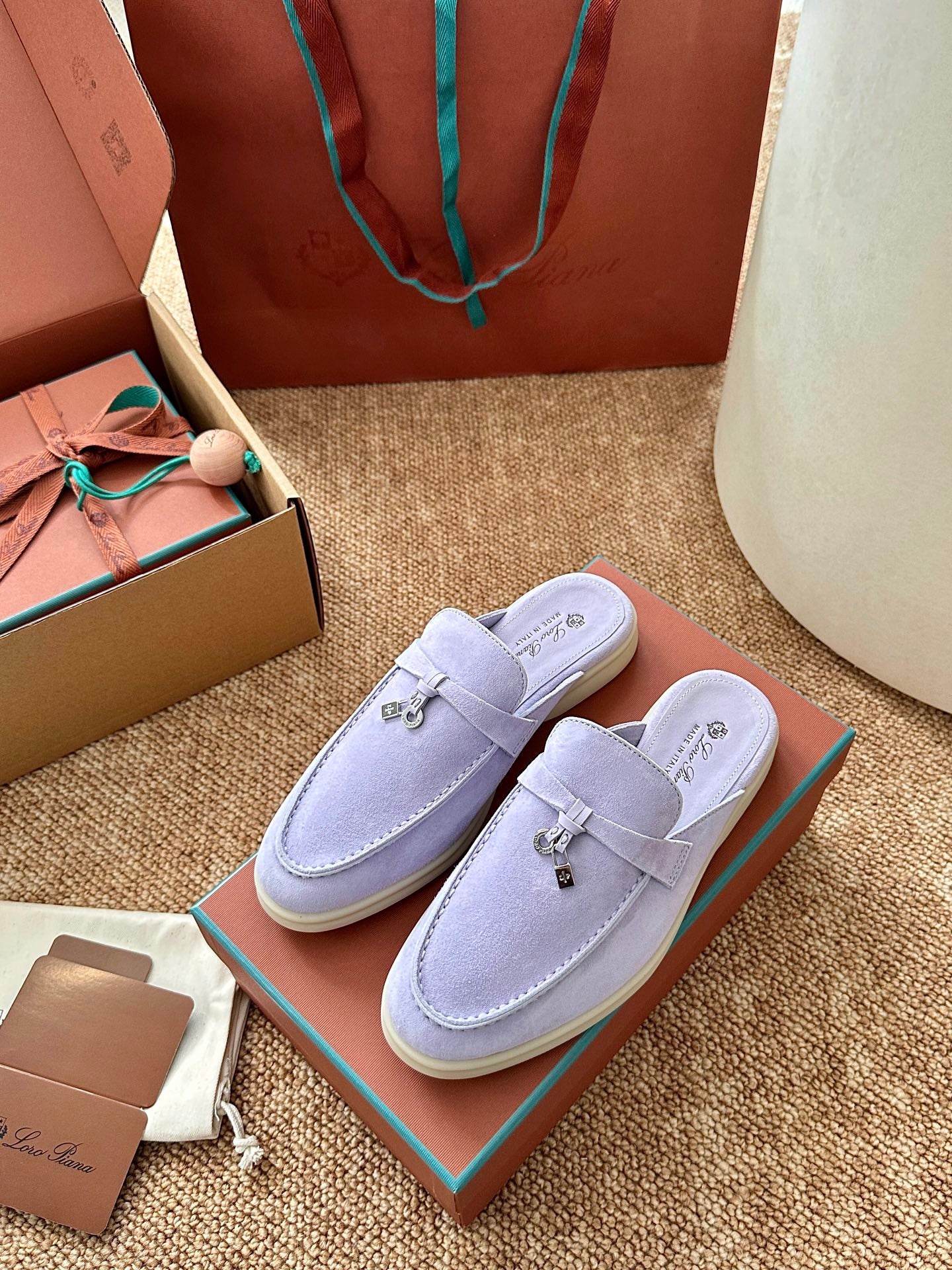 Loro Piana Charms Walk Flat Mules Light Purple Suede 623438