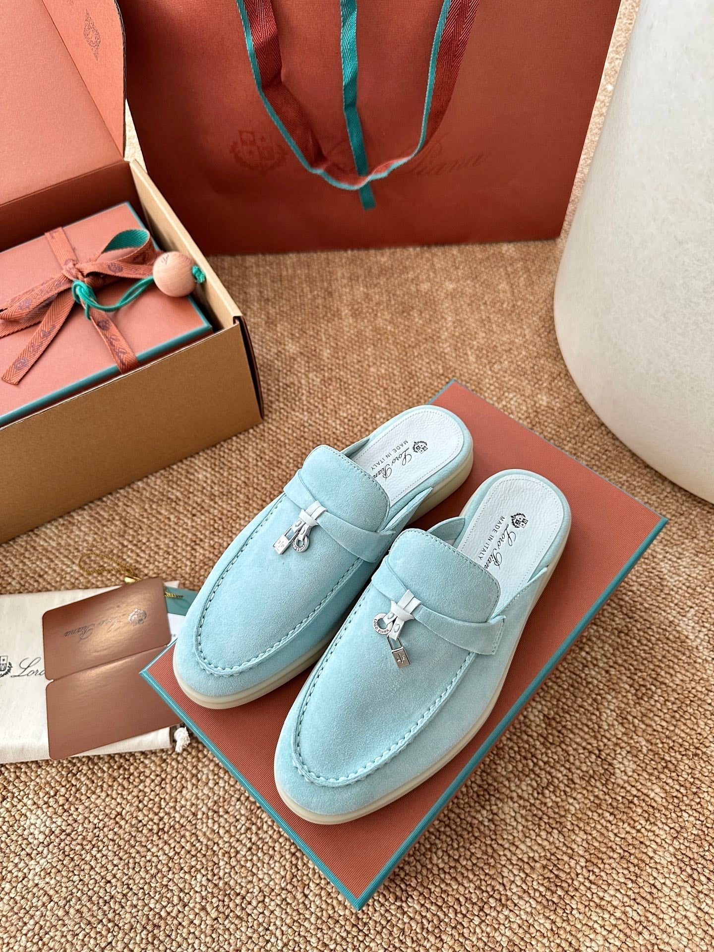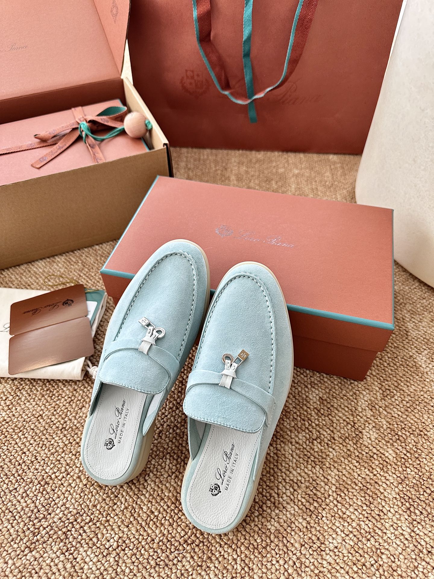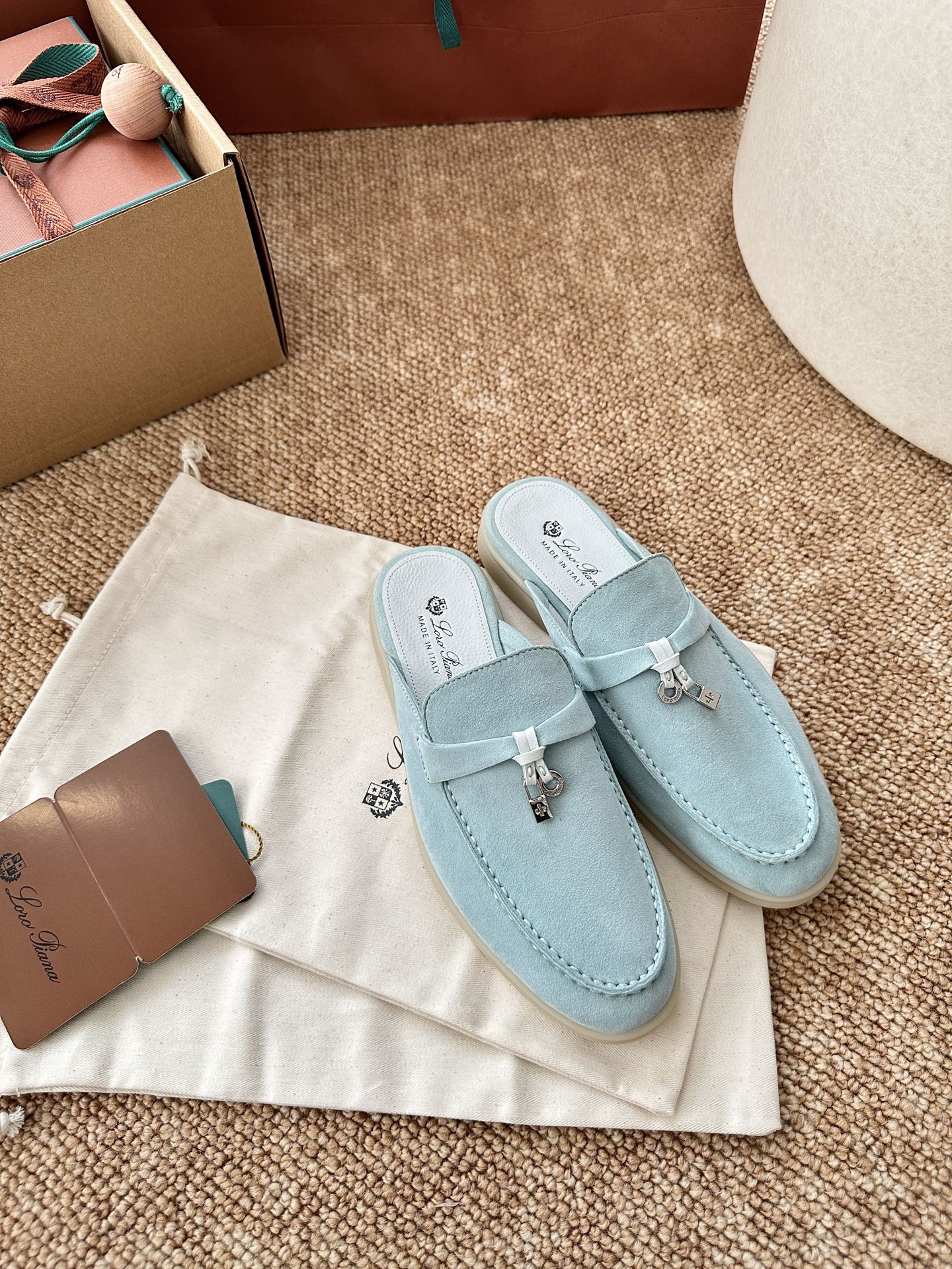 Loro Piana Charms Walk Flat Mules Pale Blue Suede 623551