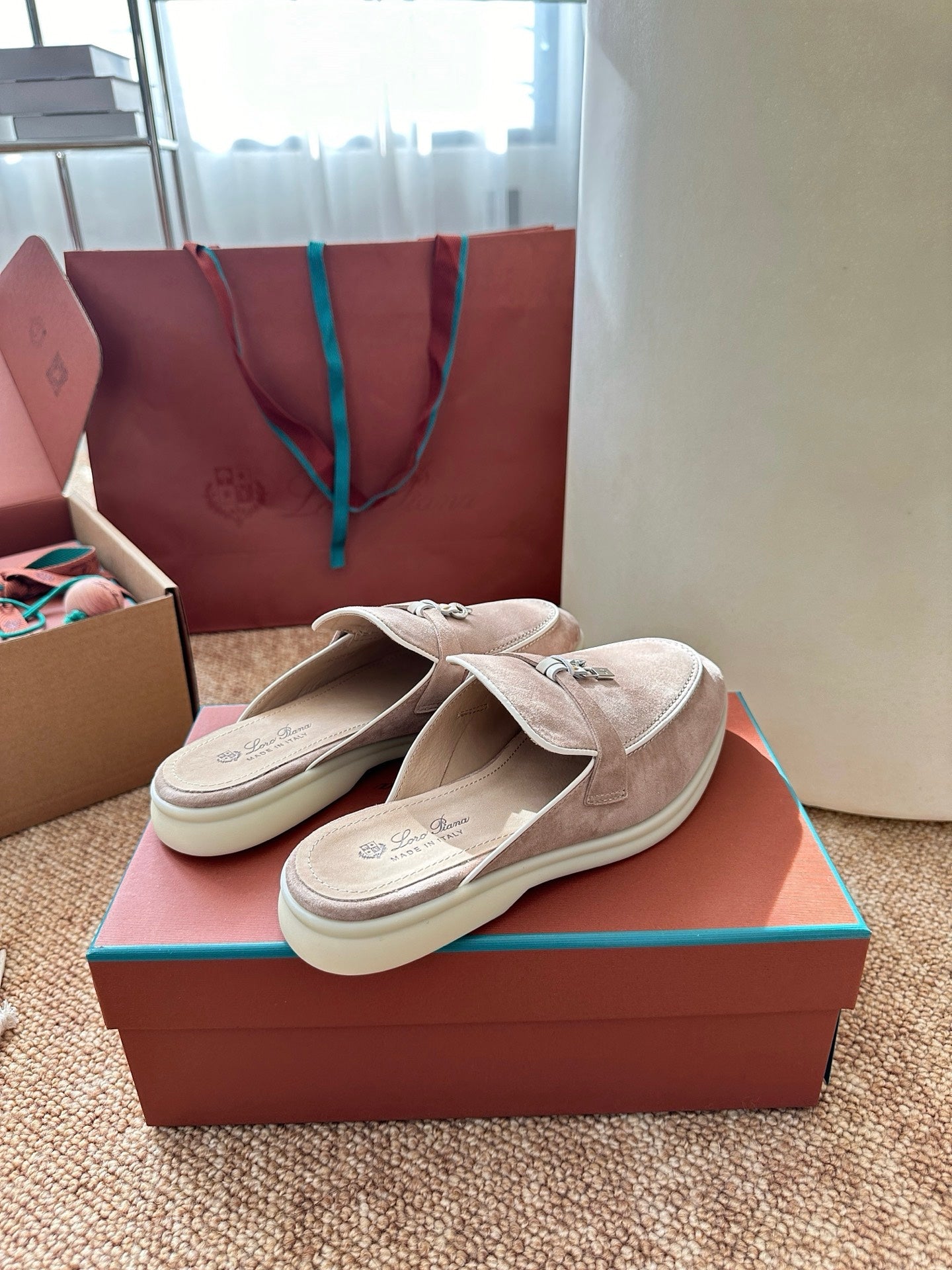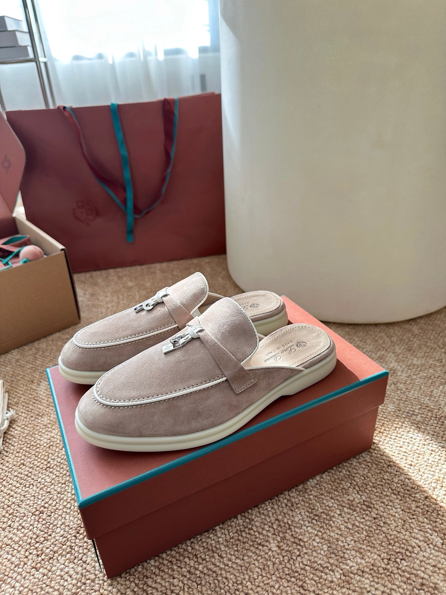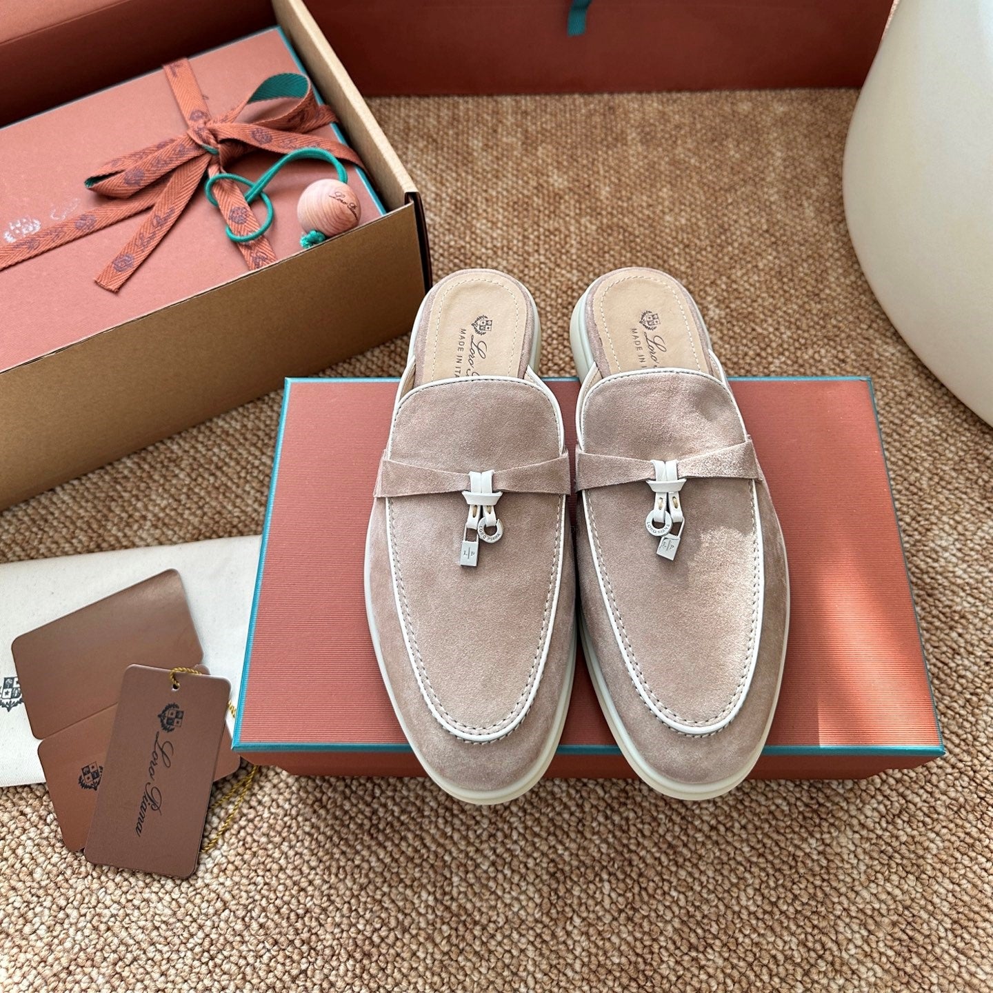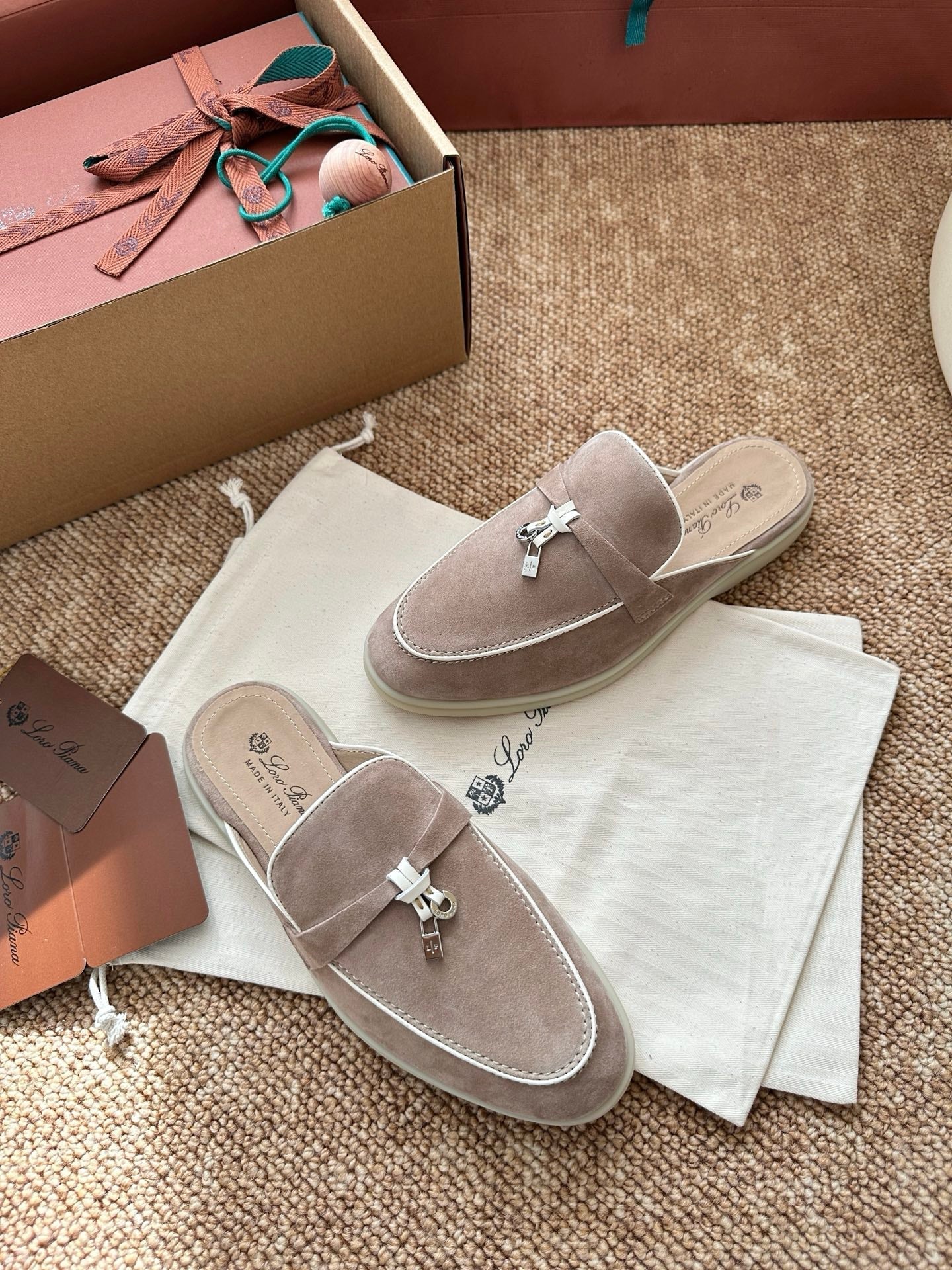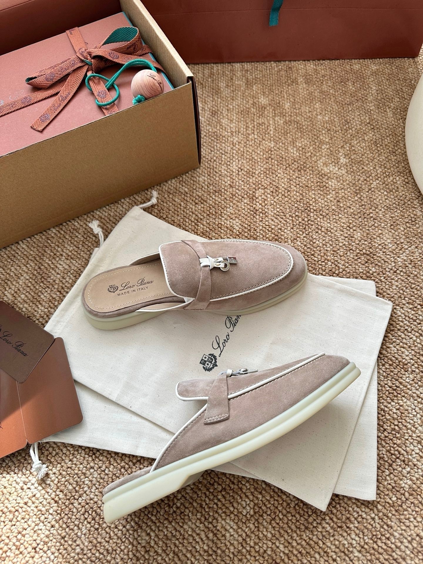 Loro Piana Charms Walk Flat Mules Sand Suede 623546