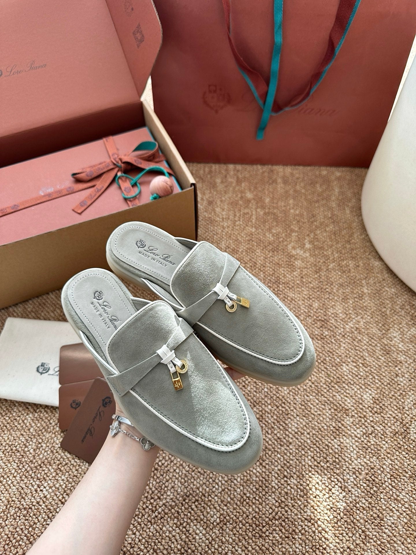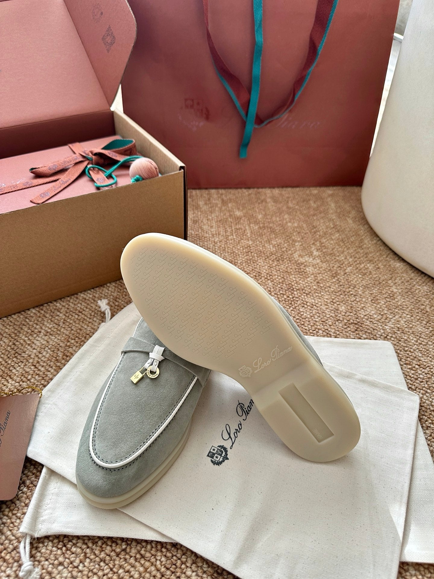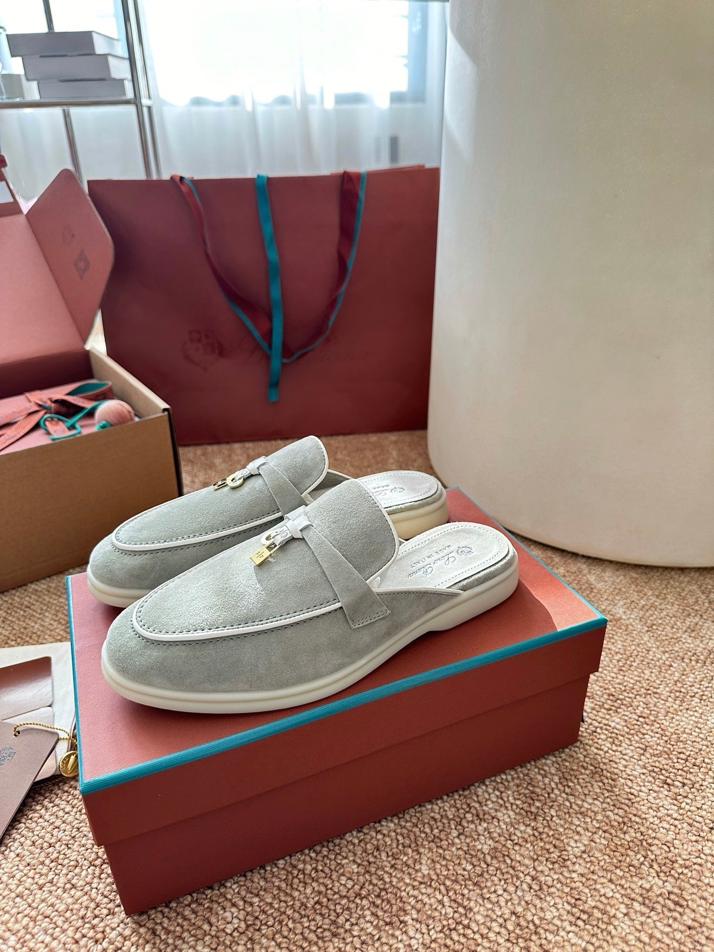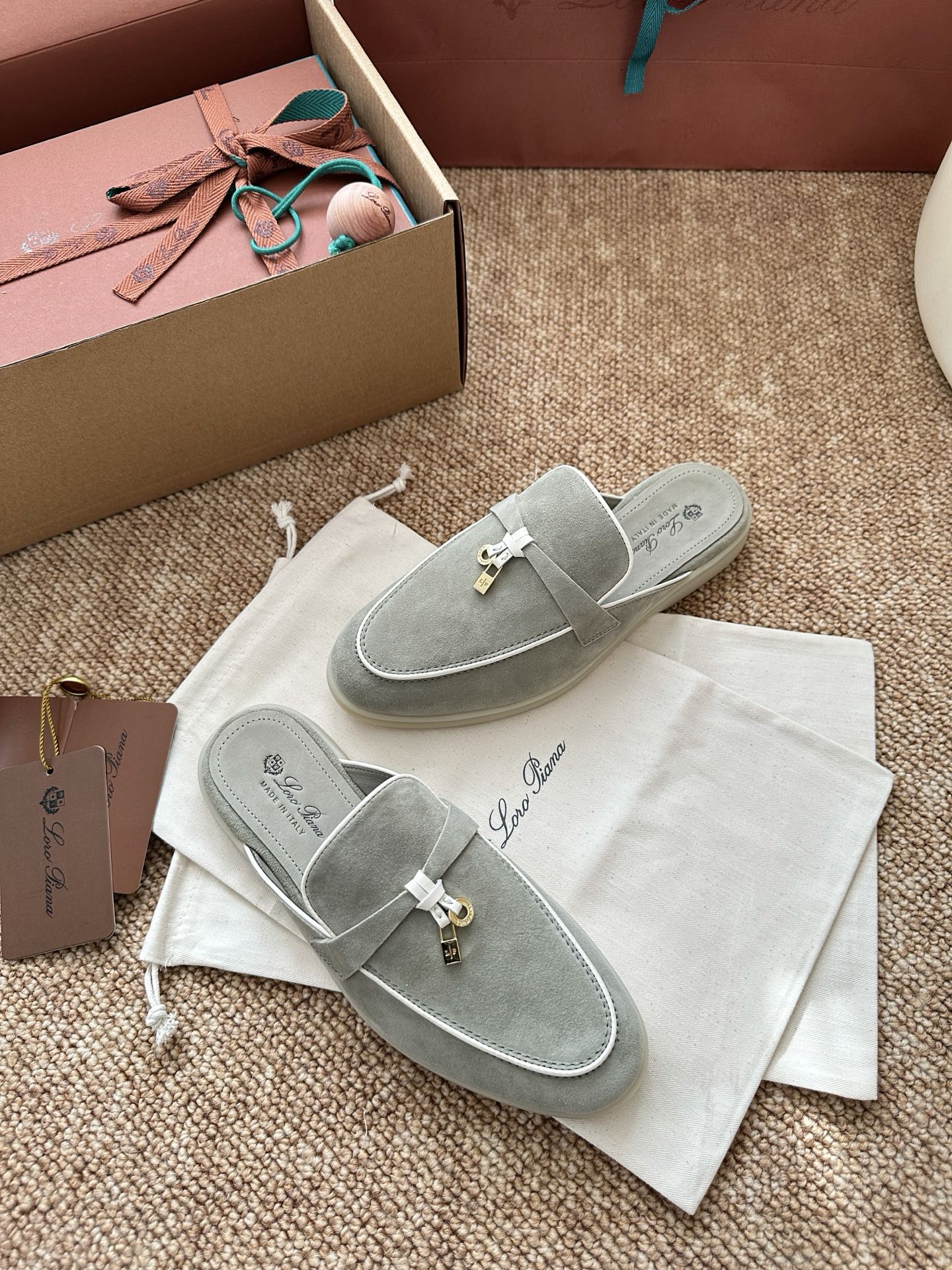 Loro Piana Charms Walk Flat Mules Targan Green Suede 623545