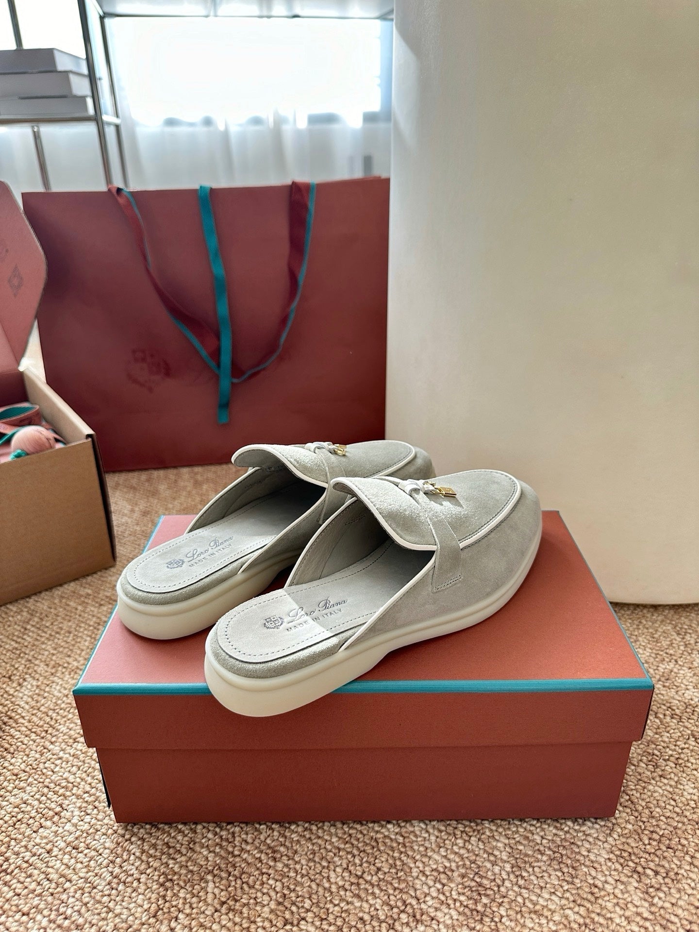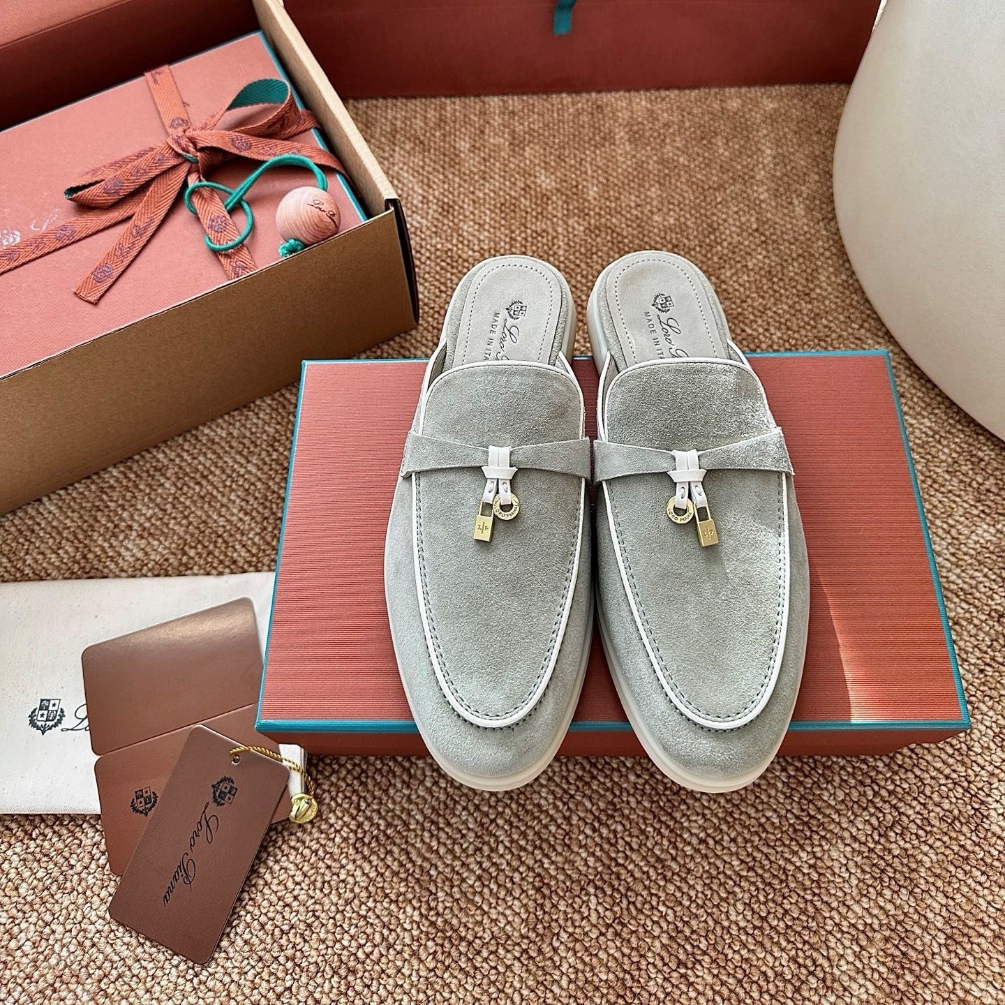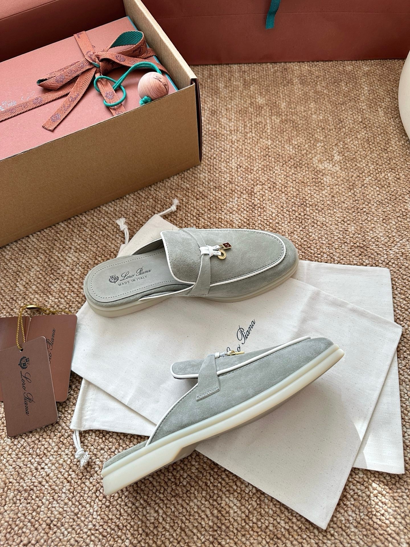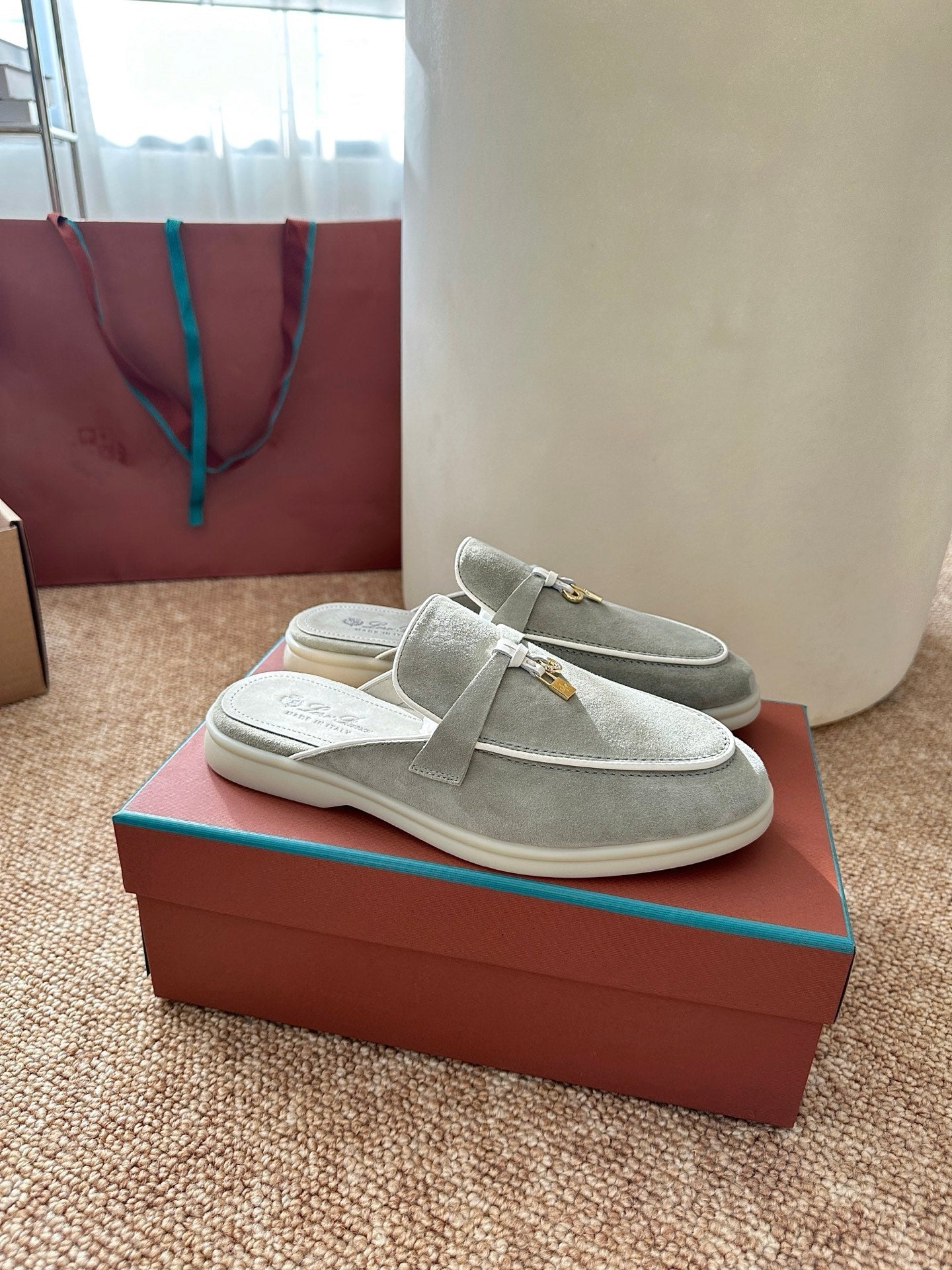 Loro Piana Charms Walk Flat Mules Targan Green Suede 623545