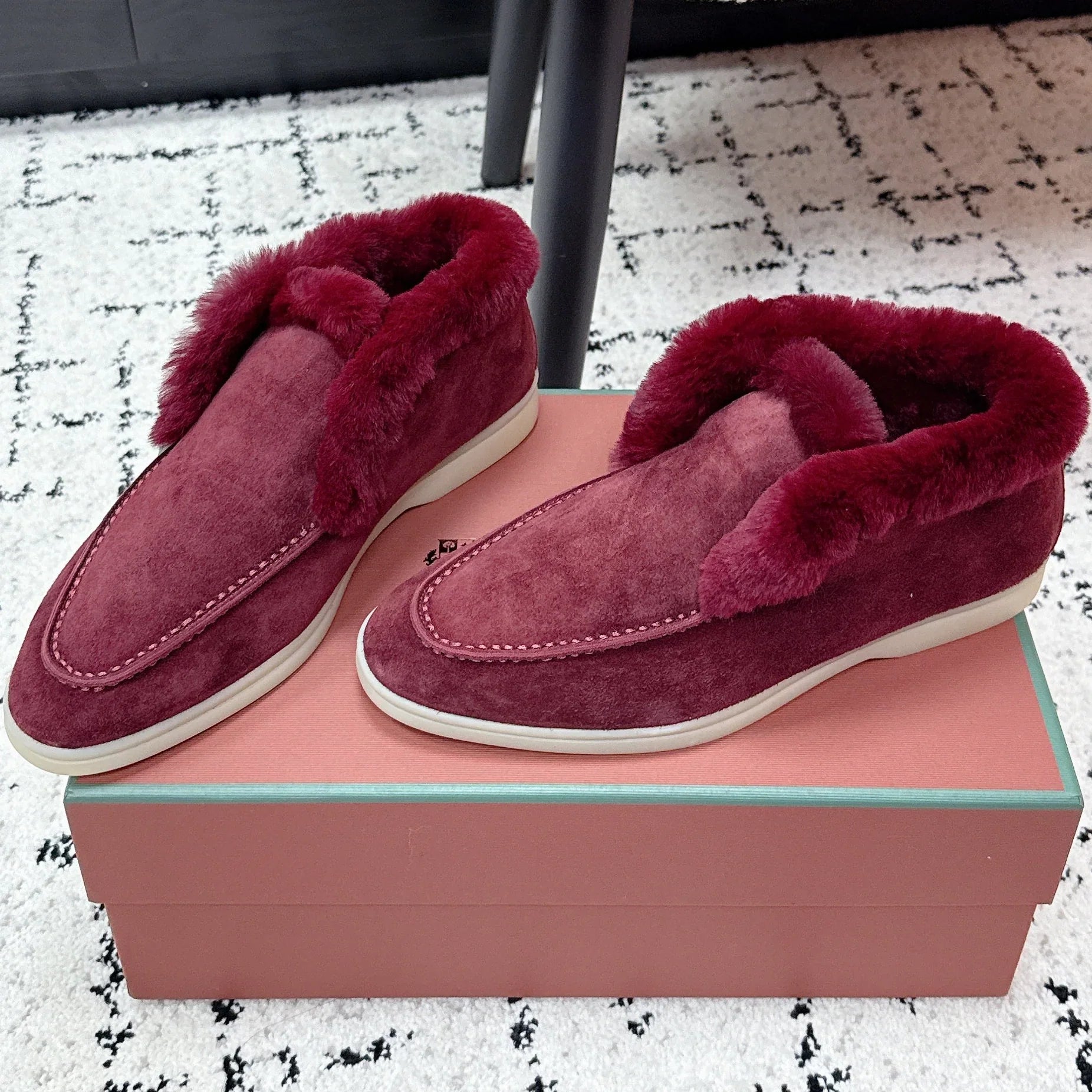 LP 26SS Open Walk Ankle Boot Burgundy Suede Fur 617383
