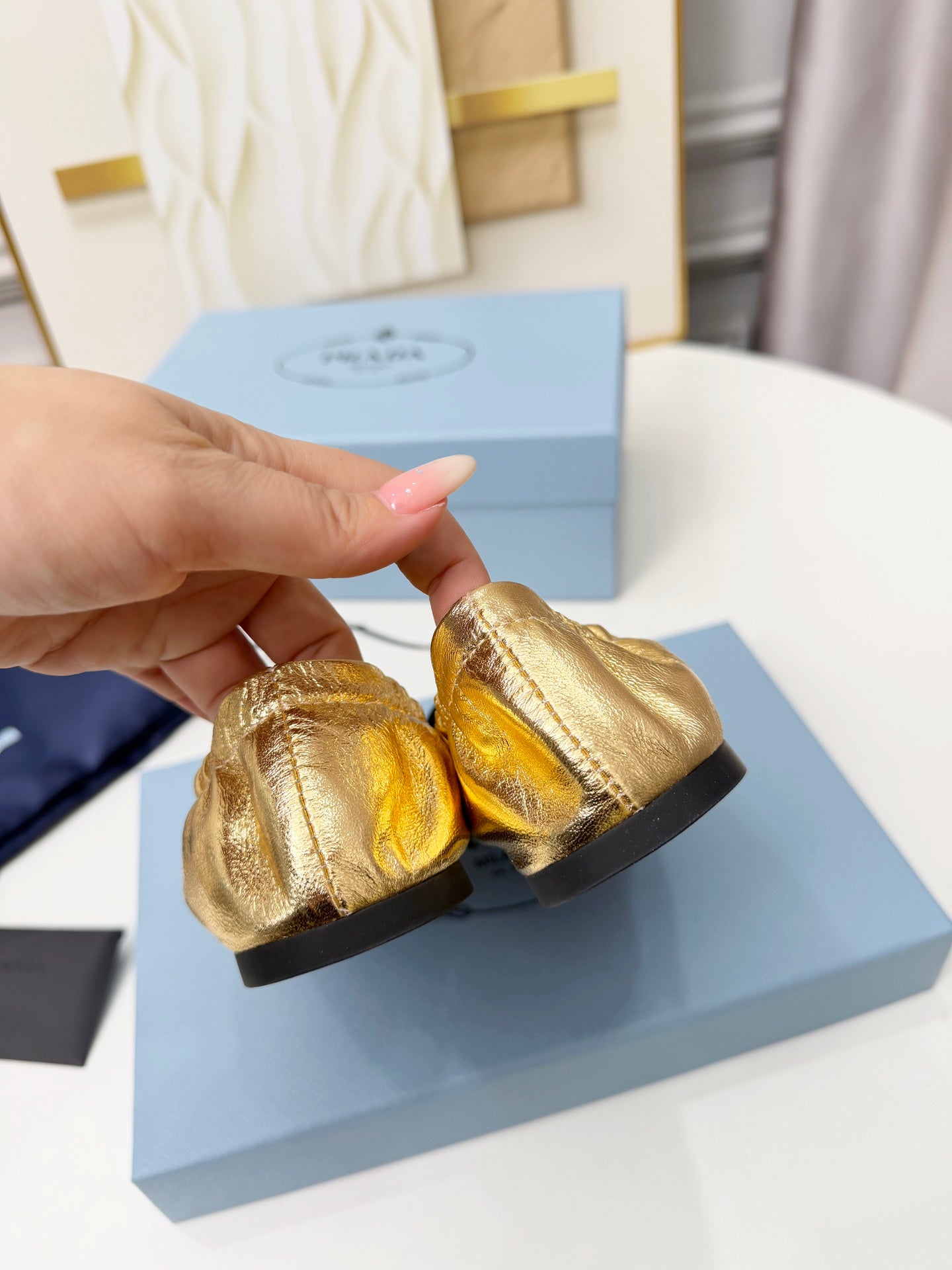 Prada 26s Bow Ballet Flats Gold Metalic Leather 624084