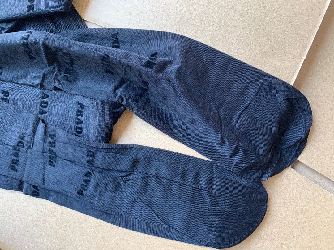 Prada haute couture version 3D letter flocked black pantyhose
