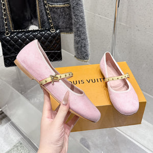 LV 26s Ballet Flats Light Pink Monogram Leather 610840