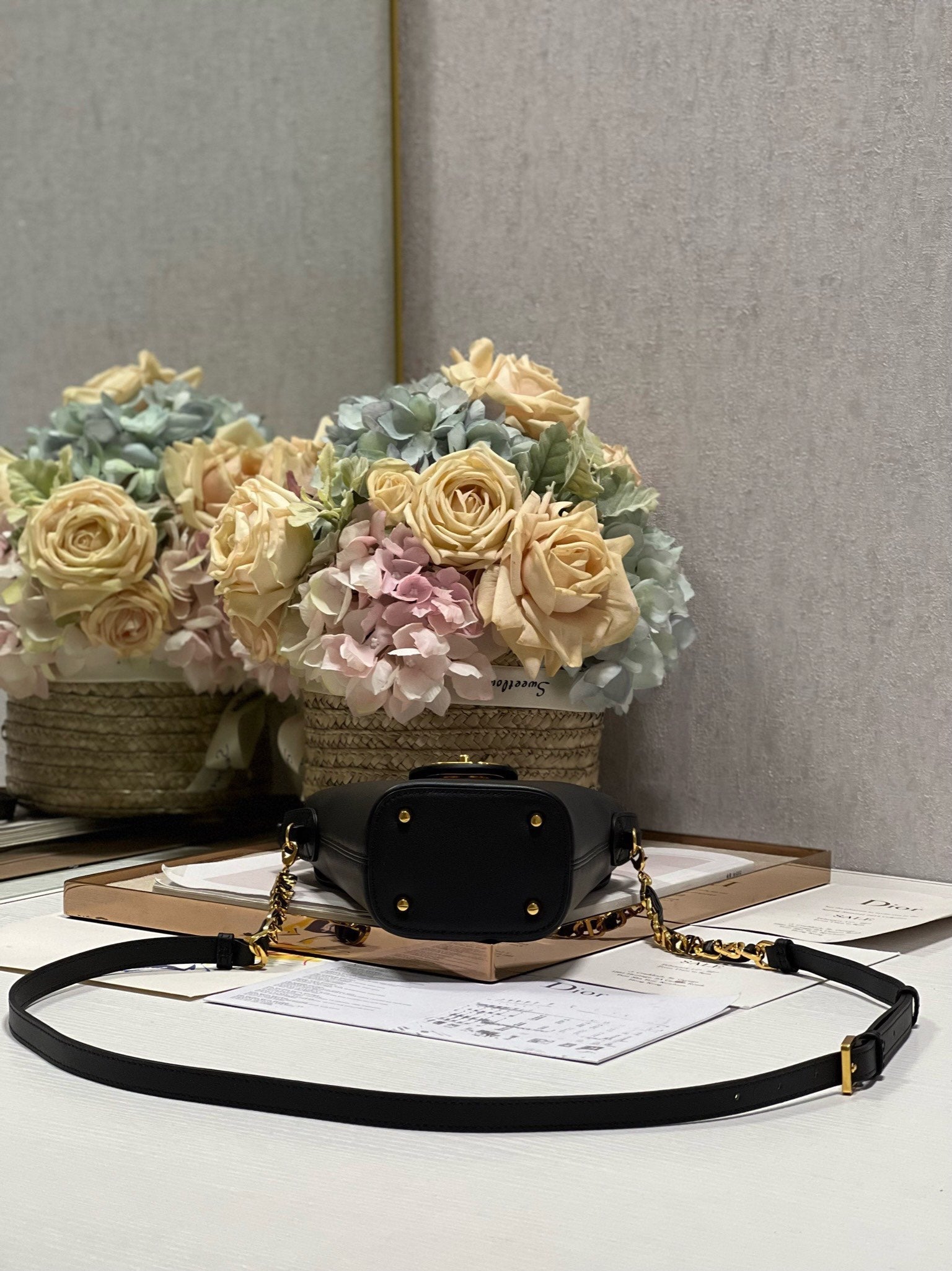 CD Montaigne Large Chain Bucket Bag Black Calfskin 336800