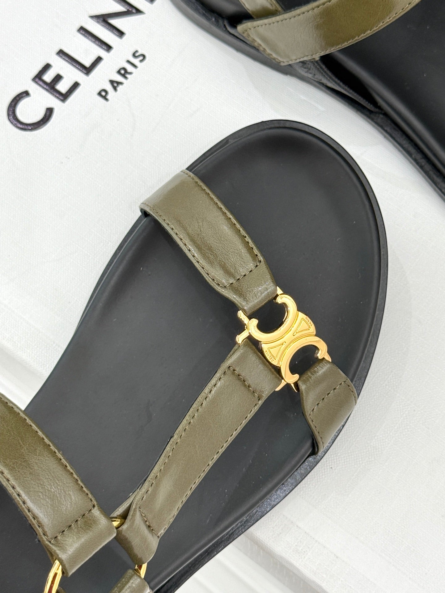 CELINE Maud Sandal Moss Green Leather 285902