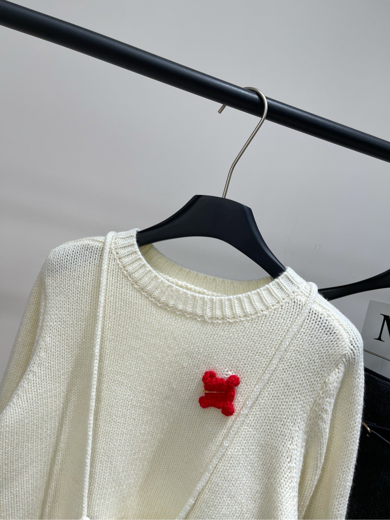 CE Beige Crew Neck Sweater with Brooch Decoration Wool Blend 320825