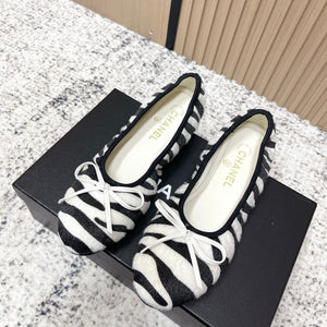 CC 26ss Ballet Flats Black White Tweed Fabric 623152