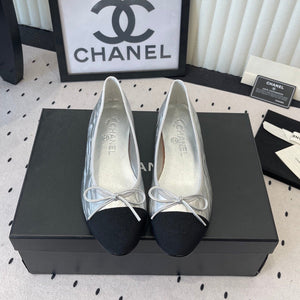 CC 26ss Ballet Flats Black Sliver Leather Fabric 623150