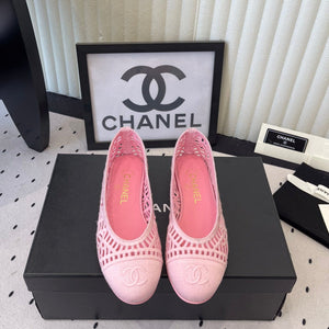 Chanel Ballet Flats Pink in Woven Raffia 611584