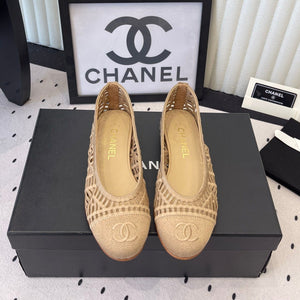 Chanel Ballet Flats Beige in Woven Raffia 611583