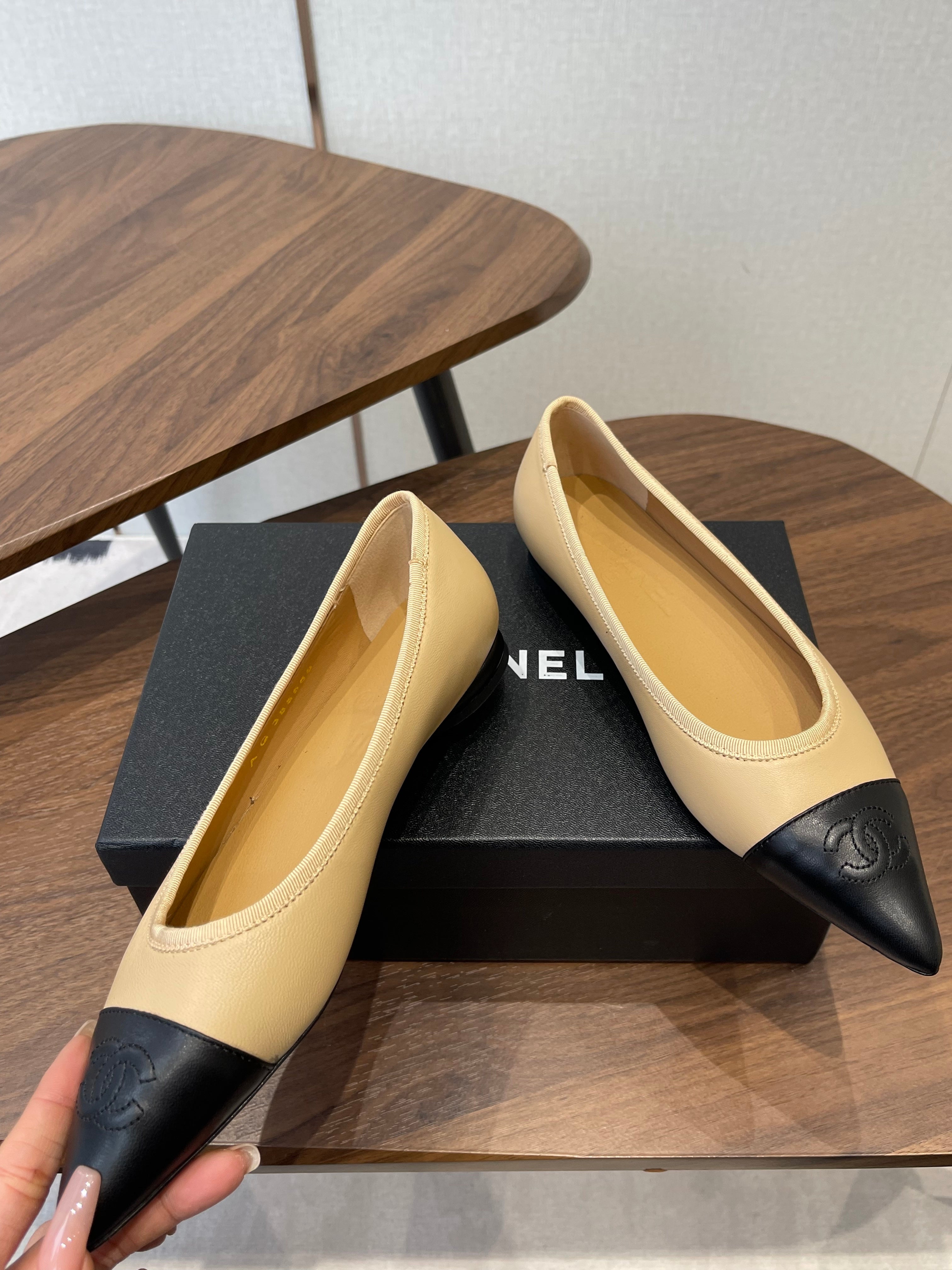 CC 26s Ballet Flats Beige Black Lambskin 624240