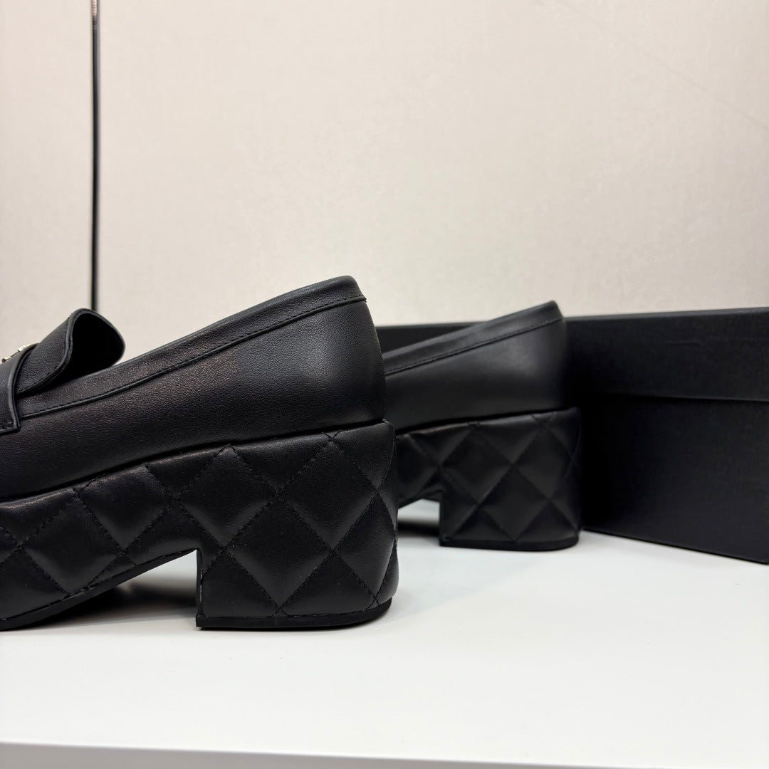 CC 25 Thick-Heeled Loafer 55mm Black Quilted Lambskin 368826