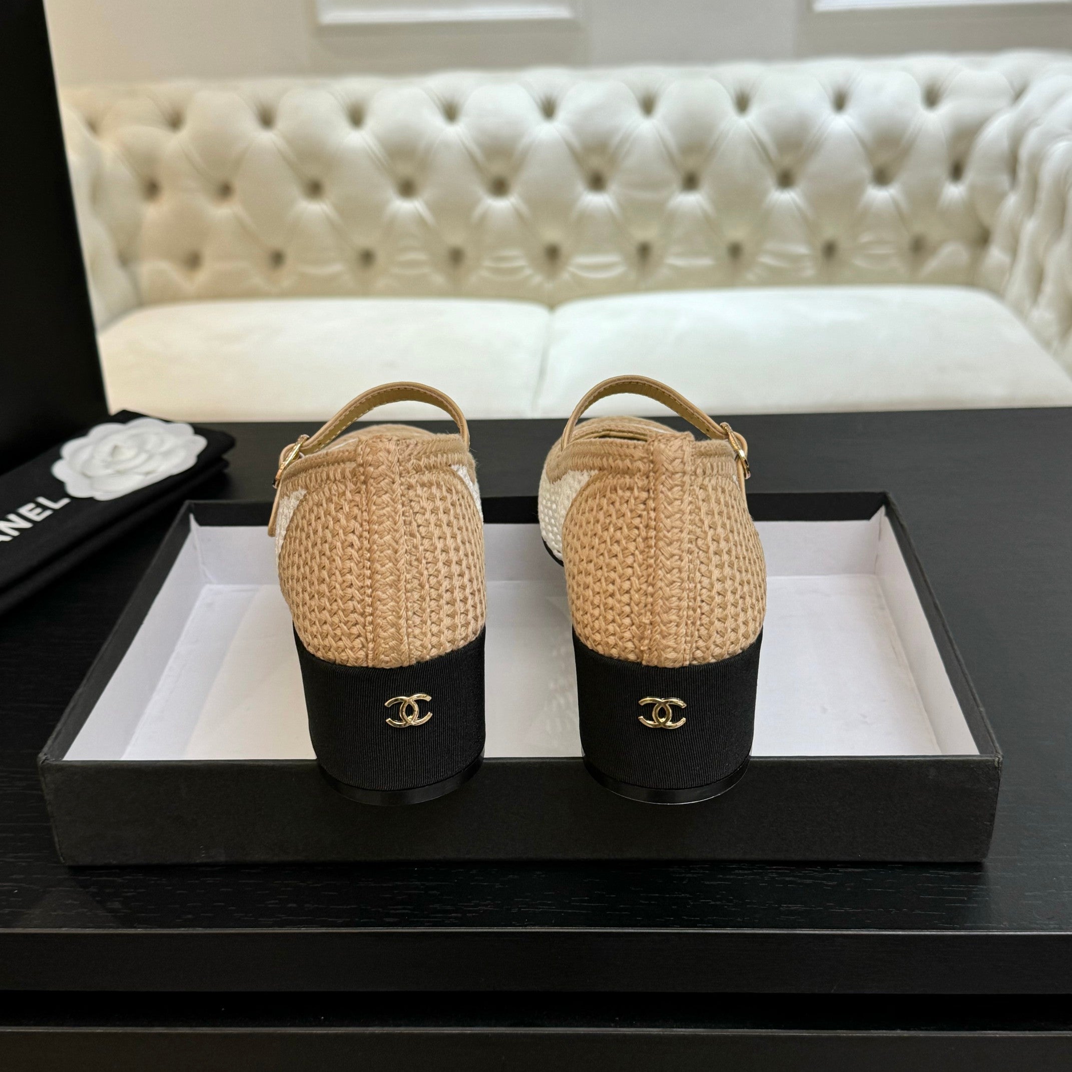 CC 25P Mary Jane 50mm Beige White Raffia 373790